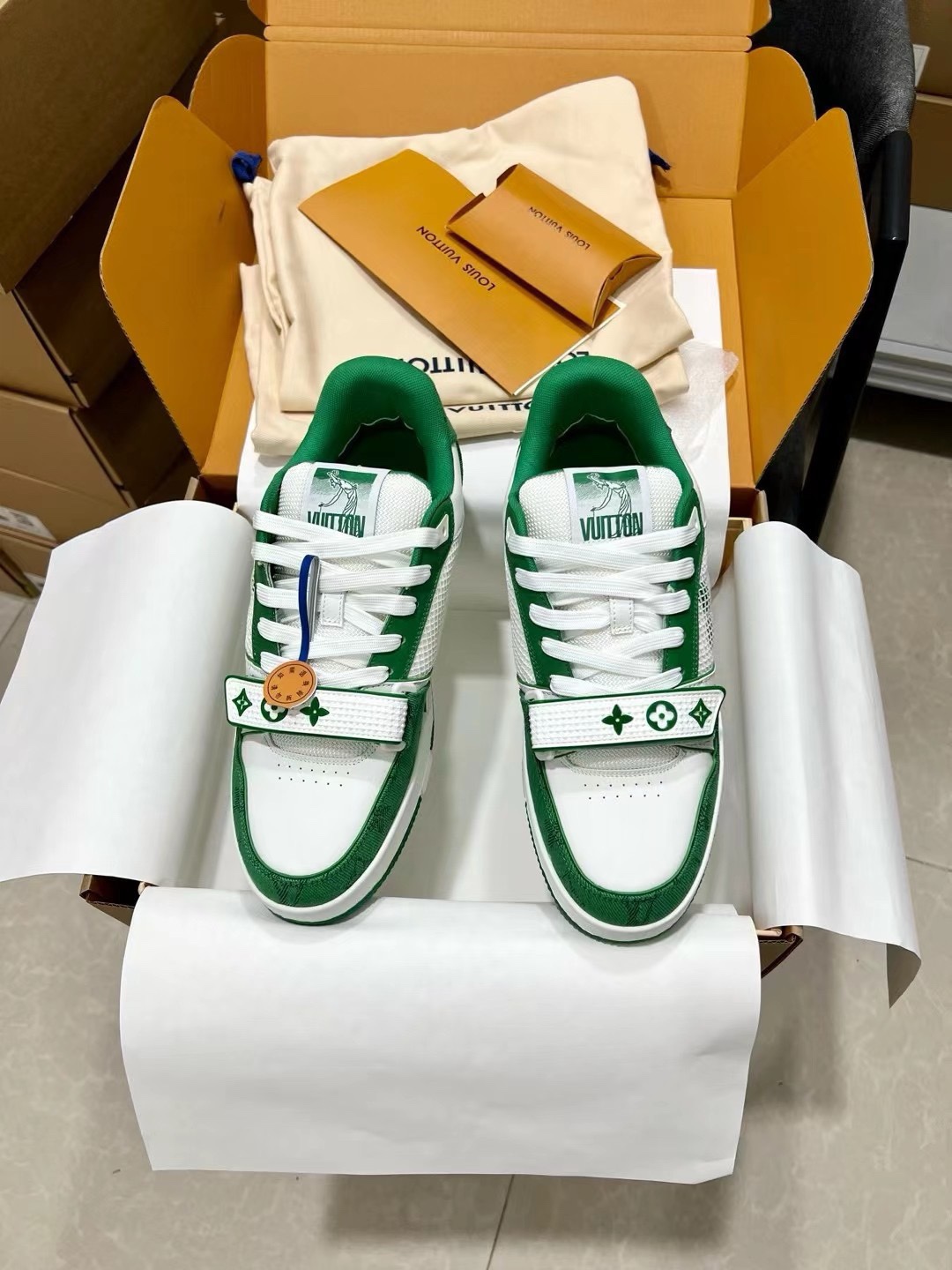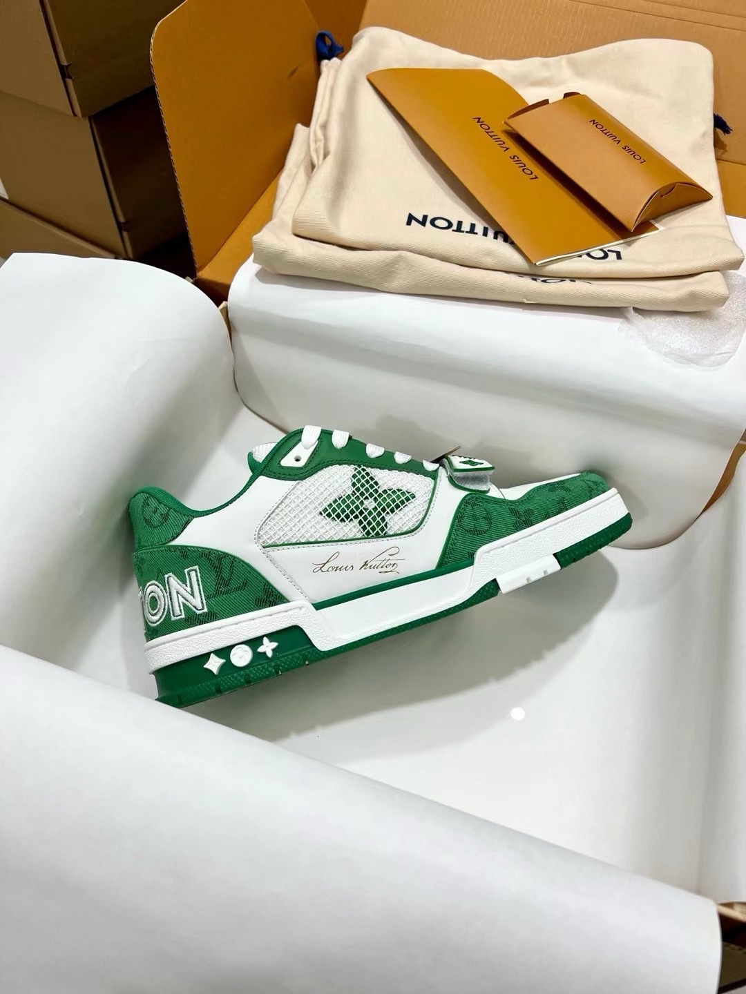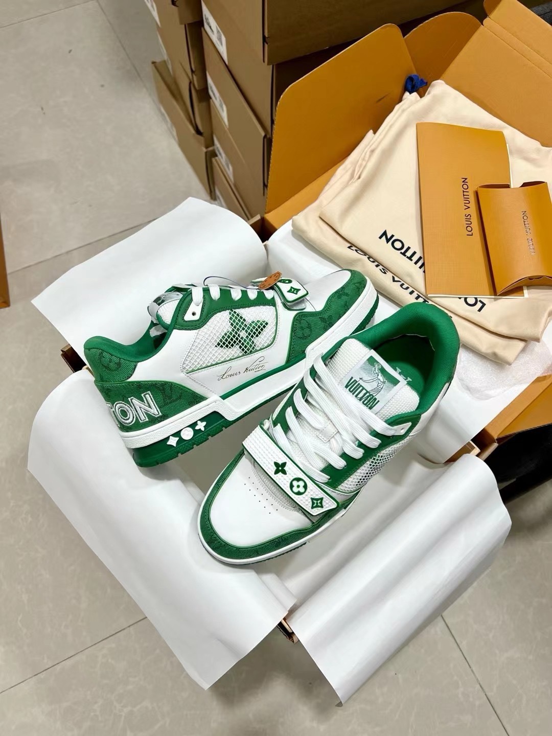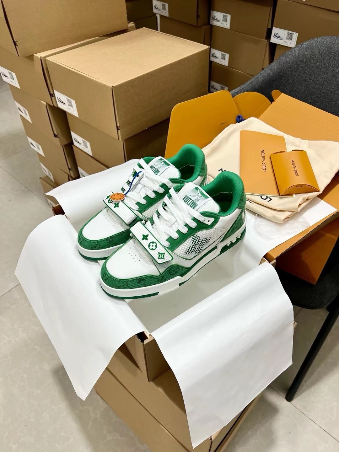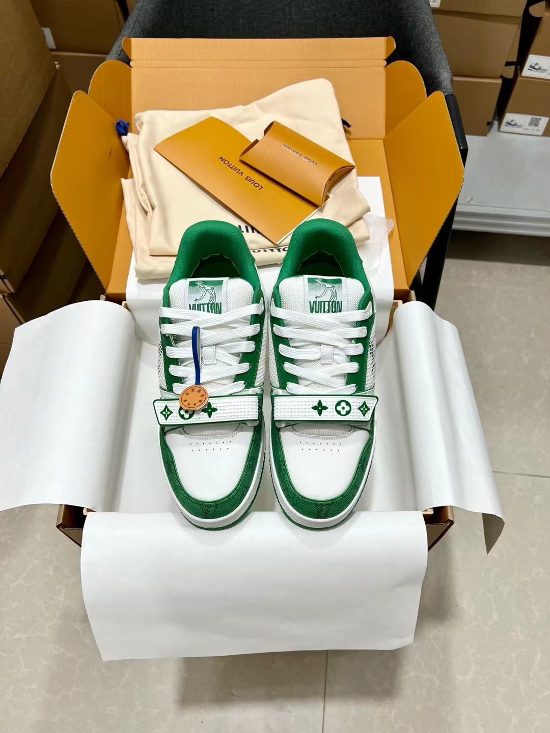 Original version custom calf leather (not the ultra-fiber leather on the market, everyone should distinguish!) Symmetrical monogram pattern, all accessories and materials are customized 1:1 according to the original version. Even the color matching of the shoelaces is 1:1 custom made. The original version has a consistent private mold T sole. Many intricate small designs can only be seen and done well if you have the original version. The excellence lies in the details! Original version consistent chip tag, sensing directly enters the LV official website.