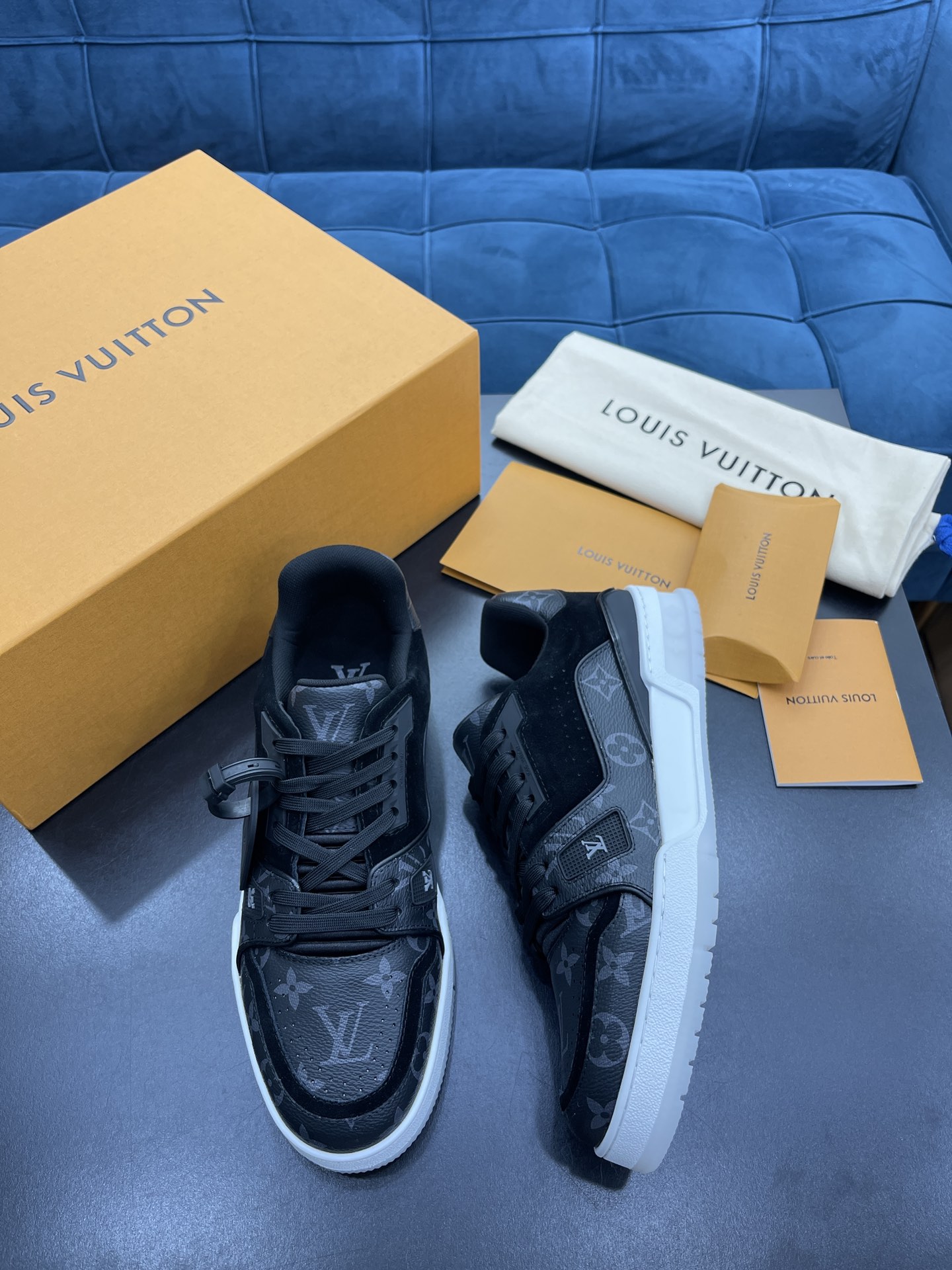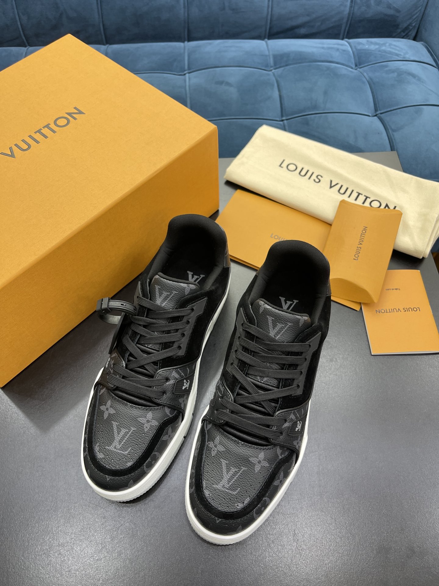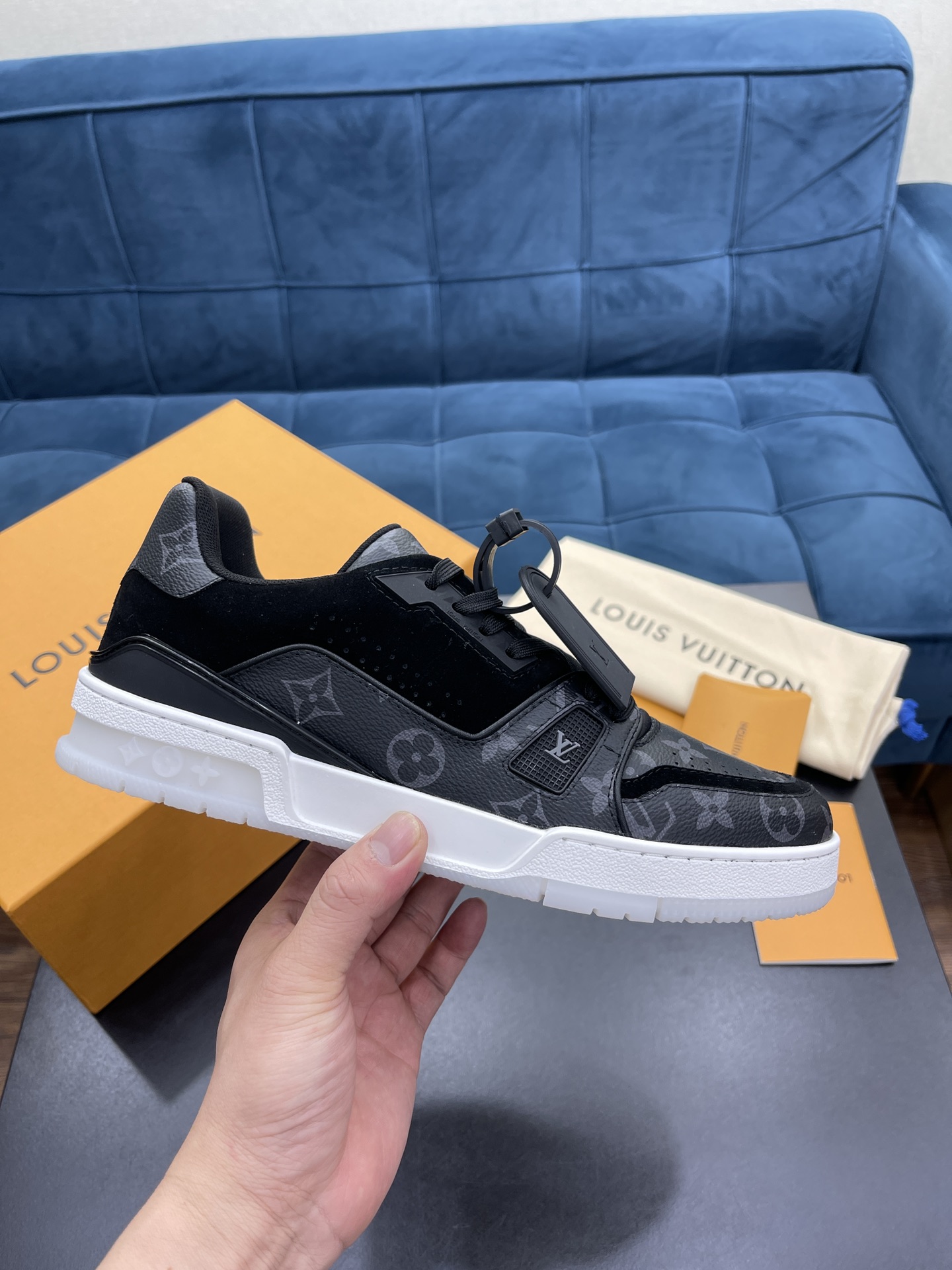 L 🆕New Men's TRAINER Sneakers, made with original canvas featuring the classic Louis Monogram embossing. Presents a low-top design derived from retro basketball shoes, with Monogram flowers blooming on the innovative injection-molded outsole. Pure hand-lasting process, high-precision replication! Size: 38-45