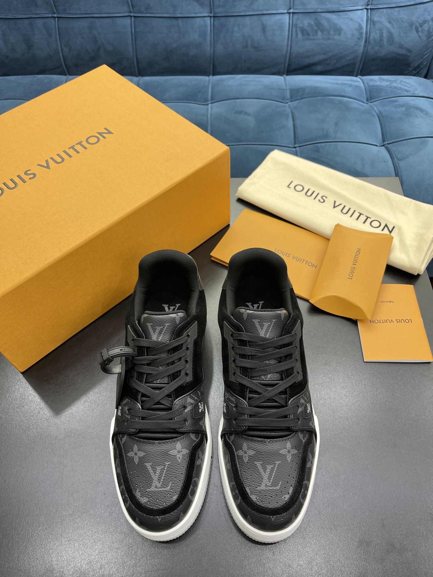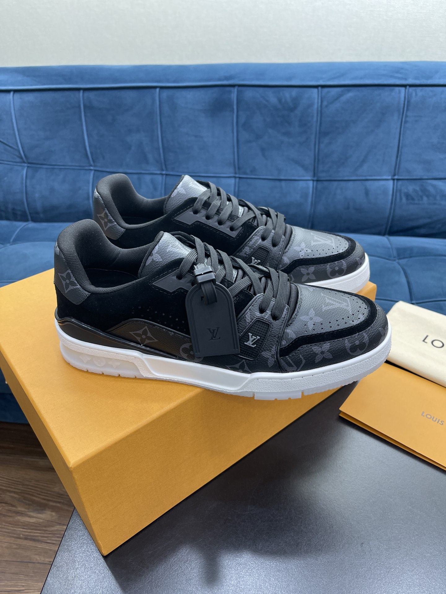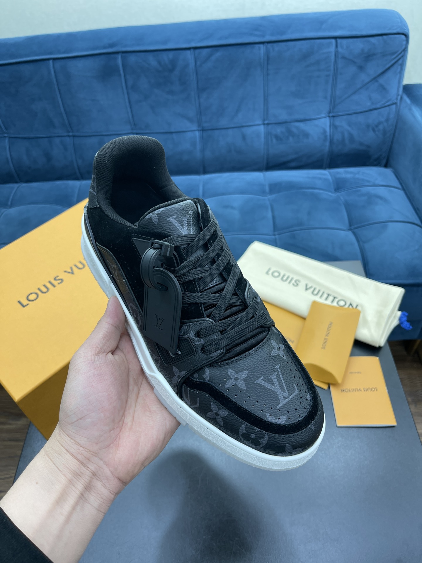 L 🆕New Men's TRAINER Sneakers, made with original canvas featuring the classic Louis Monogram embossing. Presents a low-top design derived from retro basketball shoes, with Monogram flowers blooming on the innovative injection-molded outsole. Pure hand-lasting process, high-precision replication! Size: 38-45