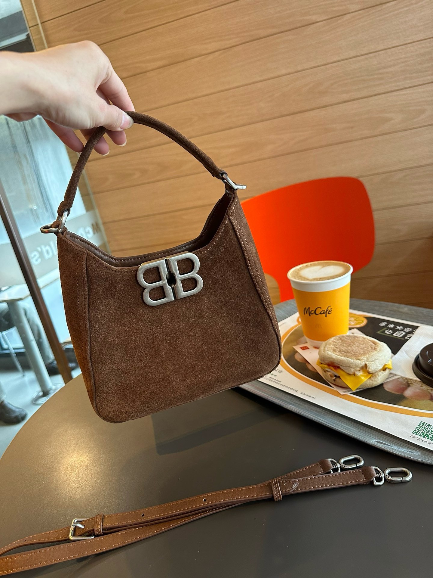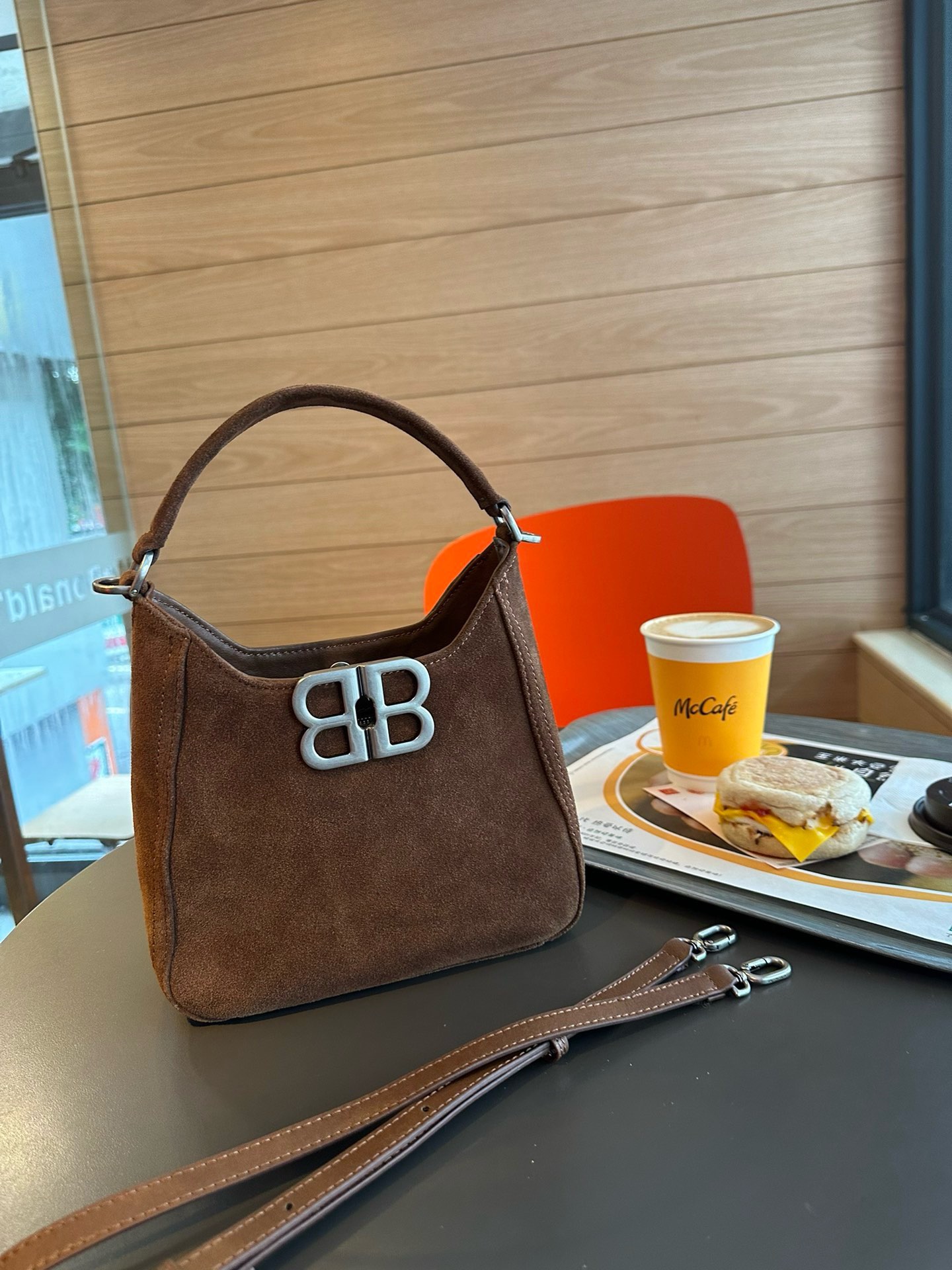 Balenciaga suede leather hobo bag, autumn-winter vibe