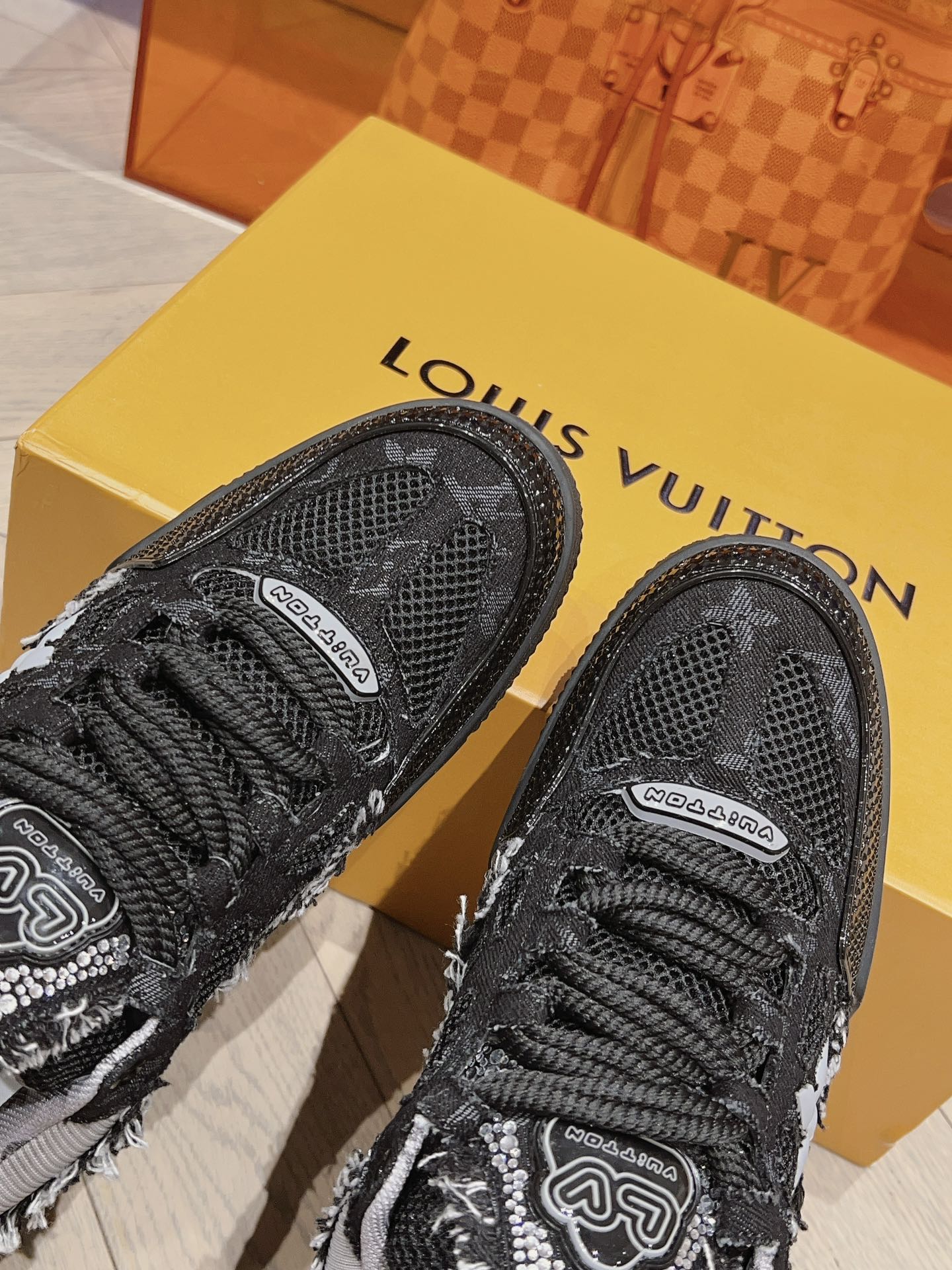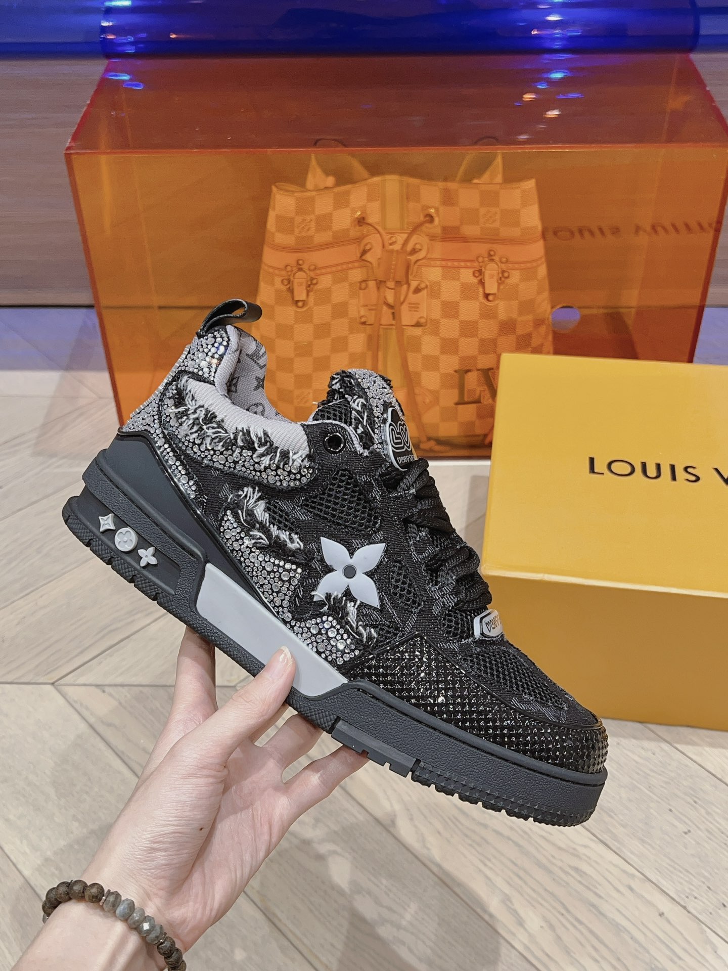 Continuing the design of LV's iconic elements, Monogram flowers adorn the rubber-edged outsole.