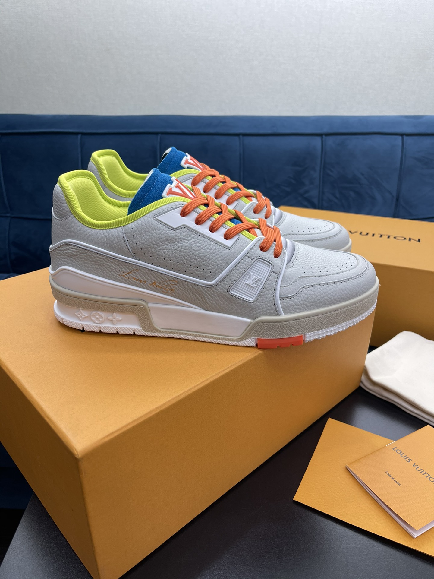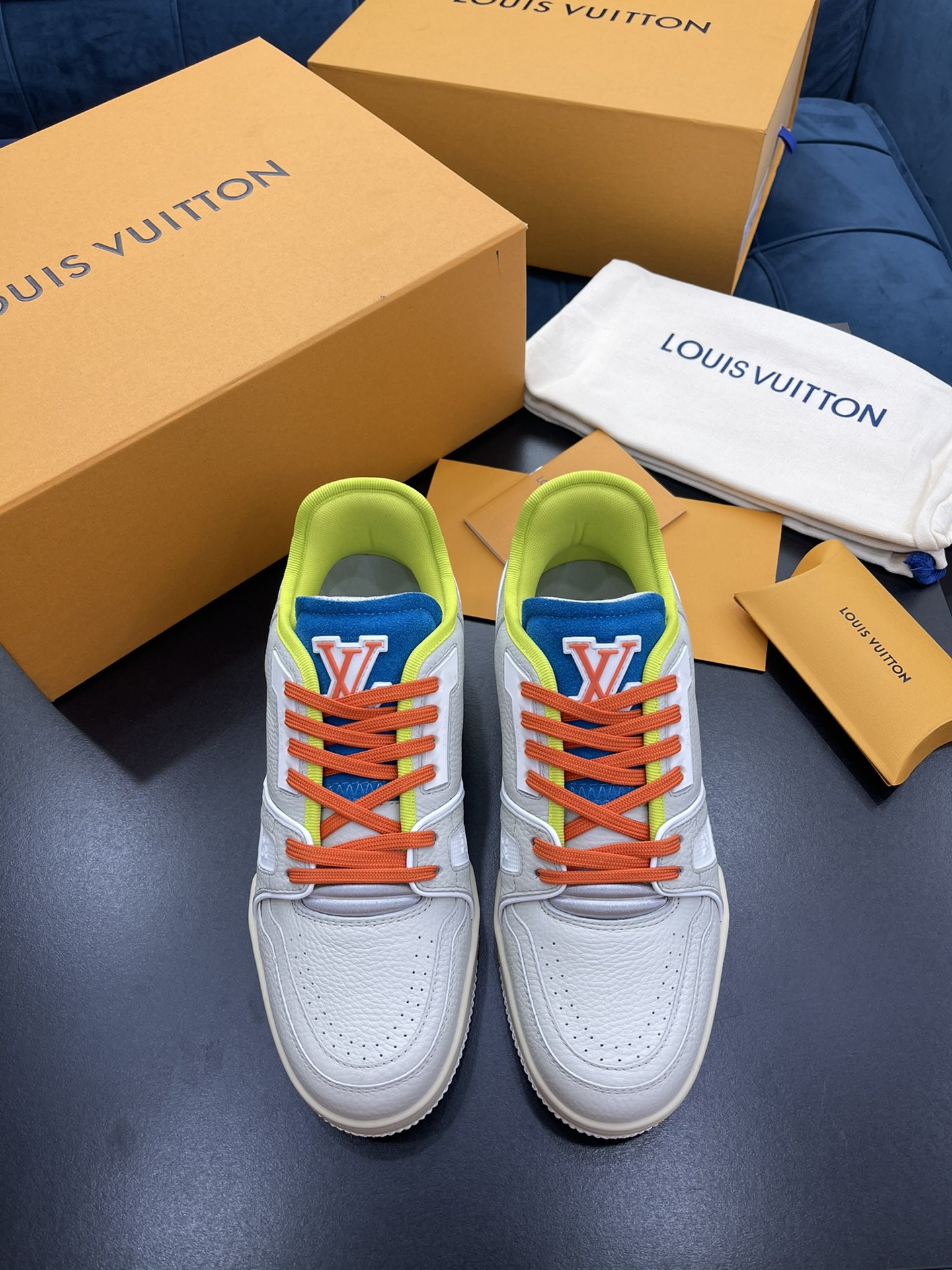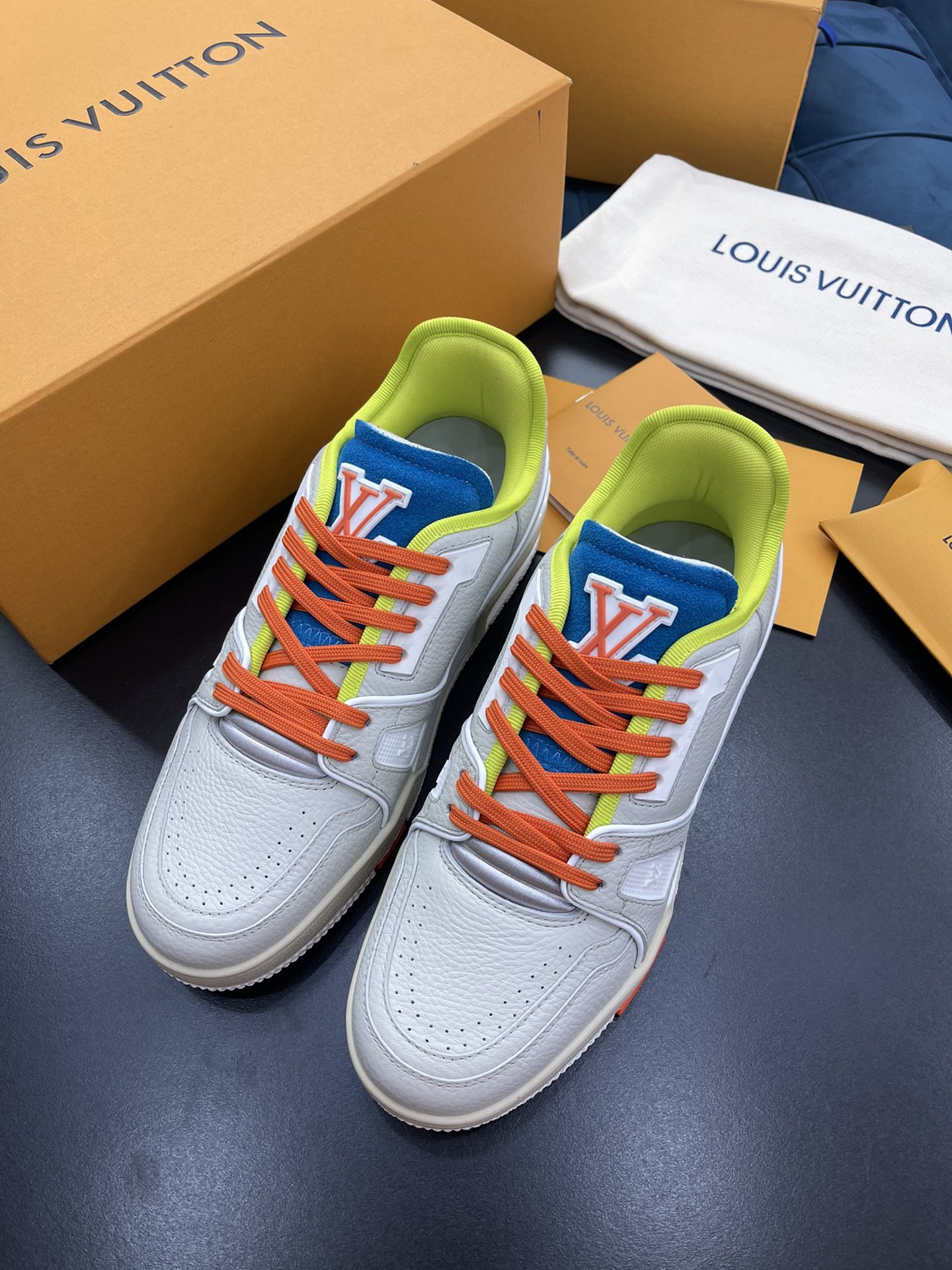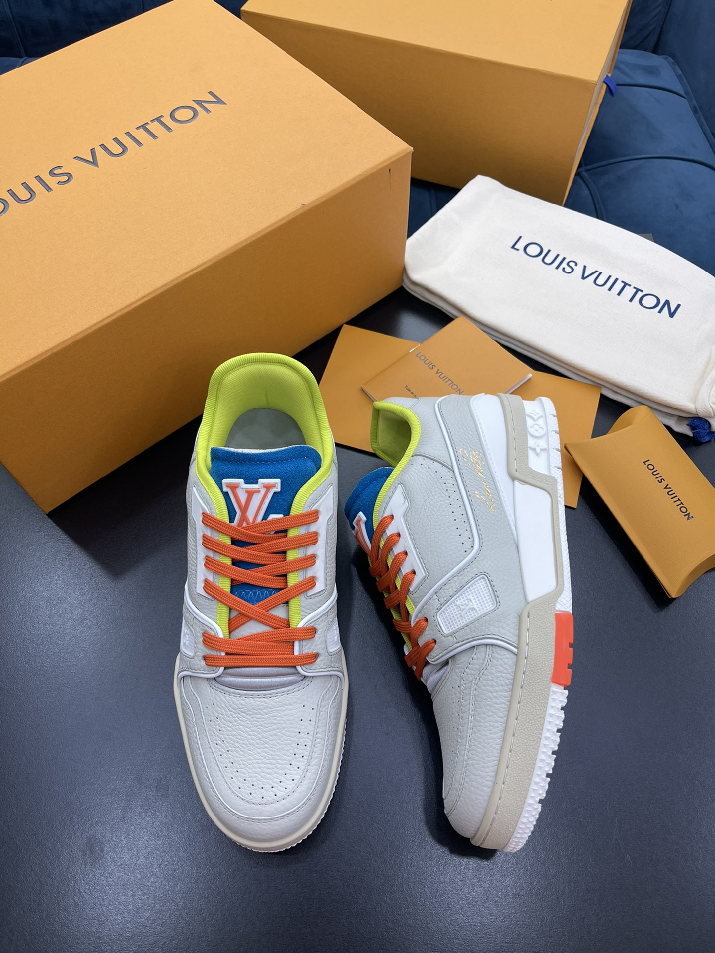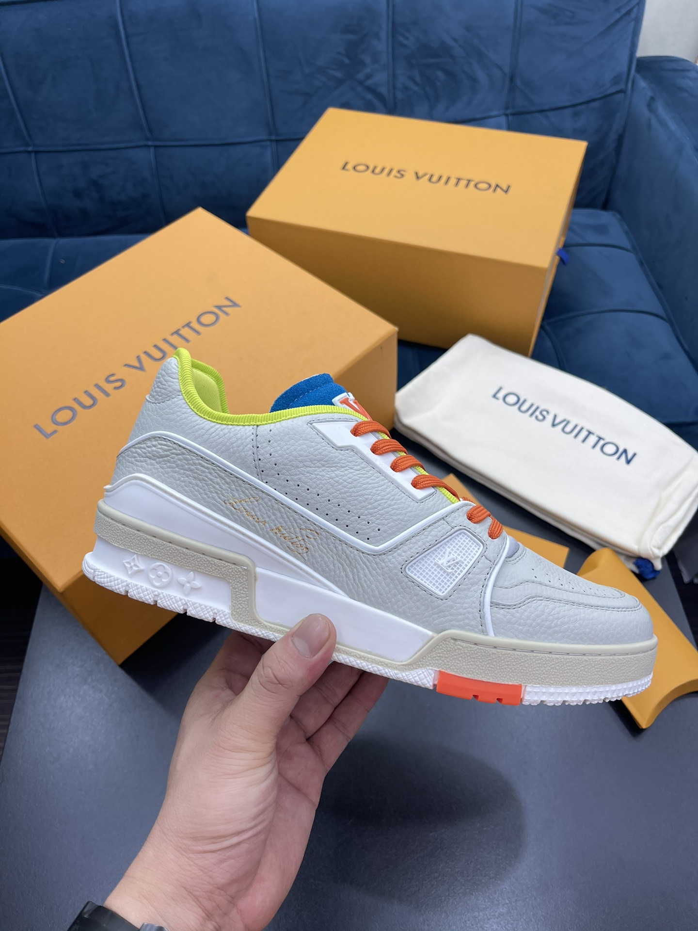 L 2021 New Men's TRAINER Sneakers, crafted from soft black grained calfskin with the classic Louis Monogram embossing. Features a low-top design inspired by retro basketball shoes, with Monogram flowers blooming on the innovative injected rubber outsole. Pure hand-lasting and tree-setting craftsmanship, highly accurate replication! Size: 38-45