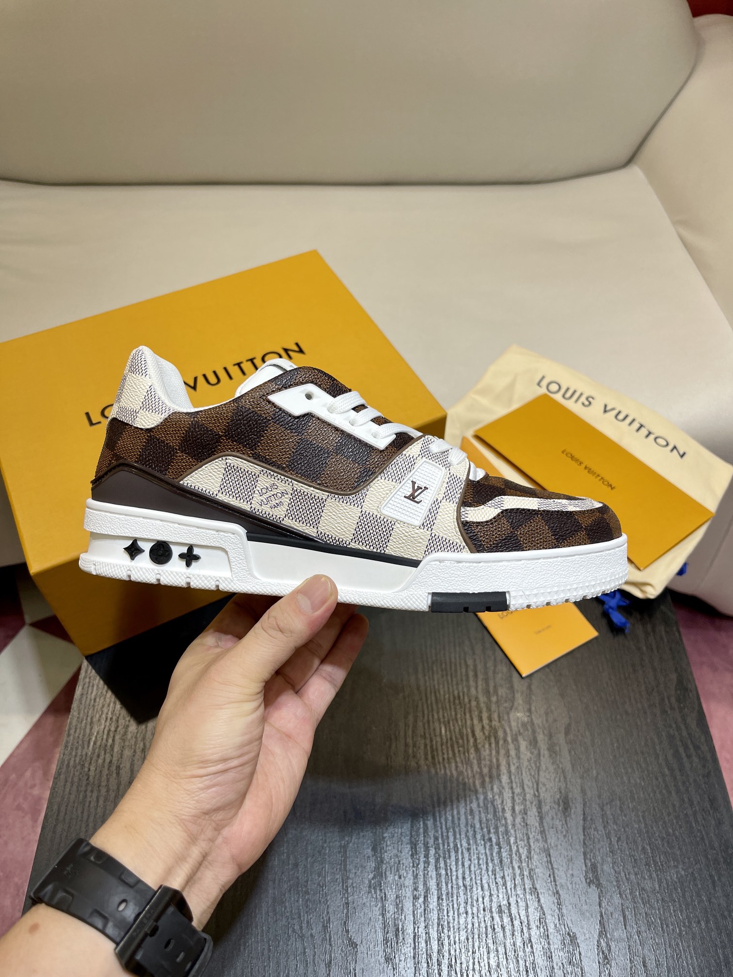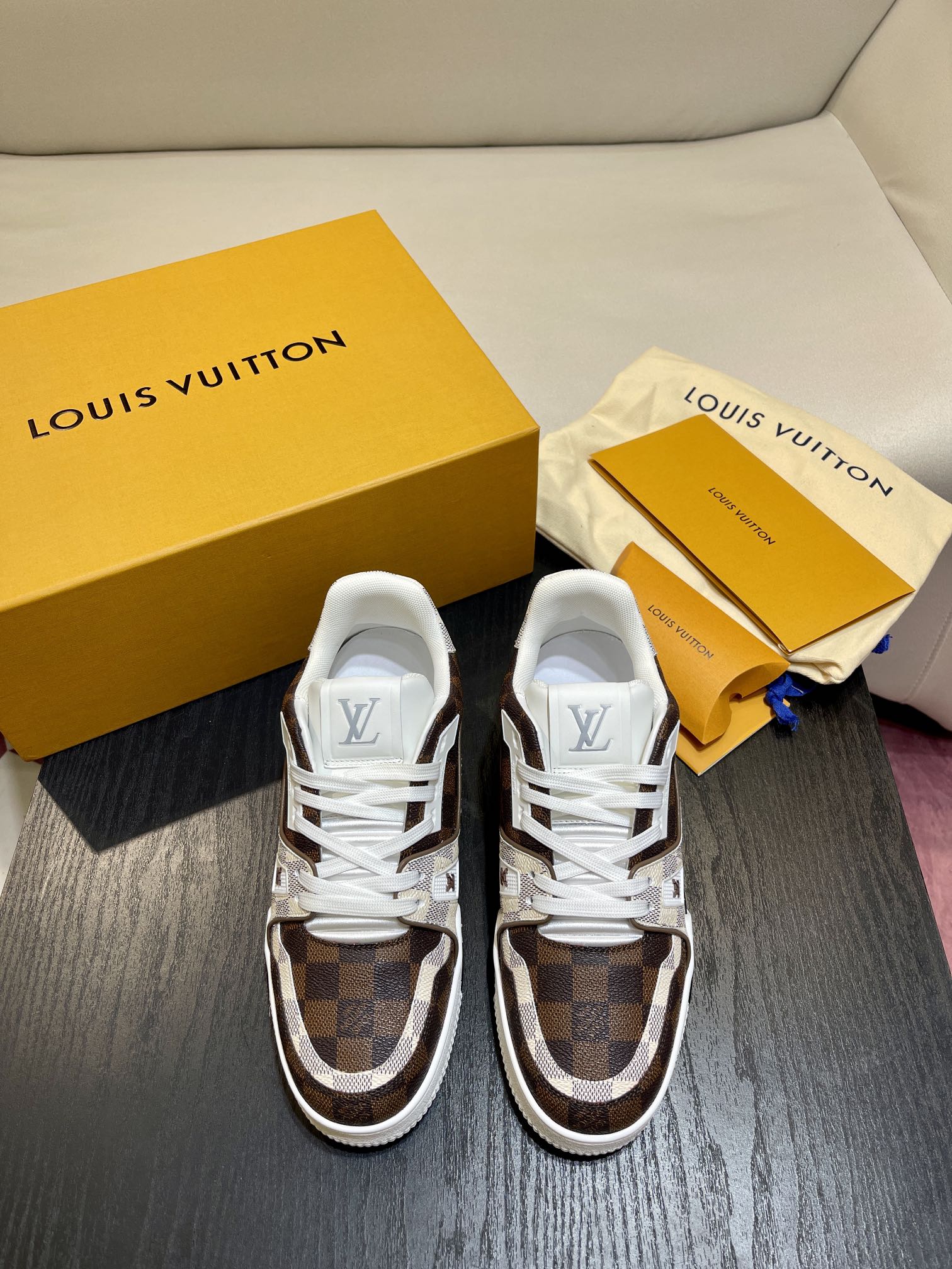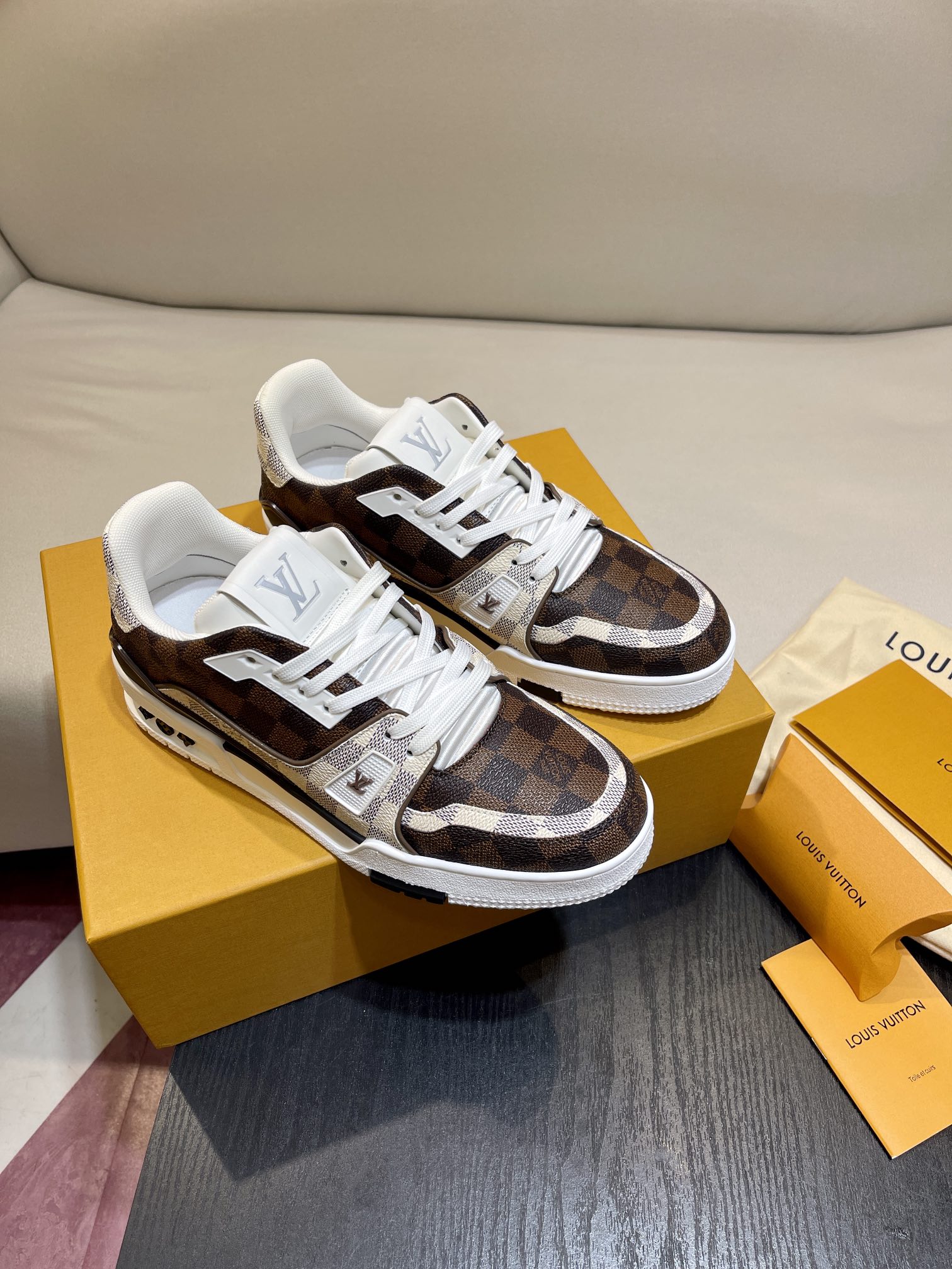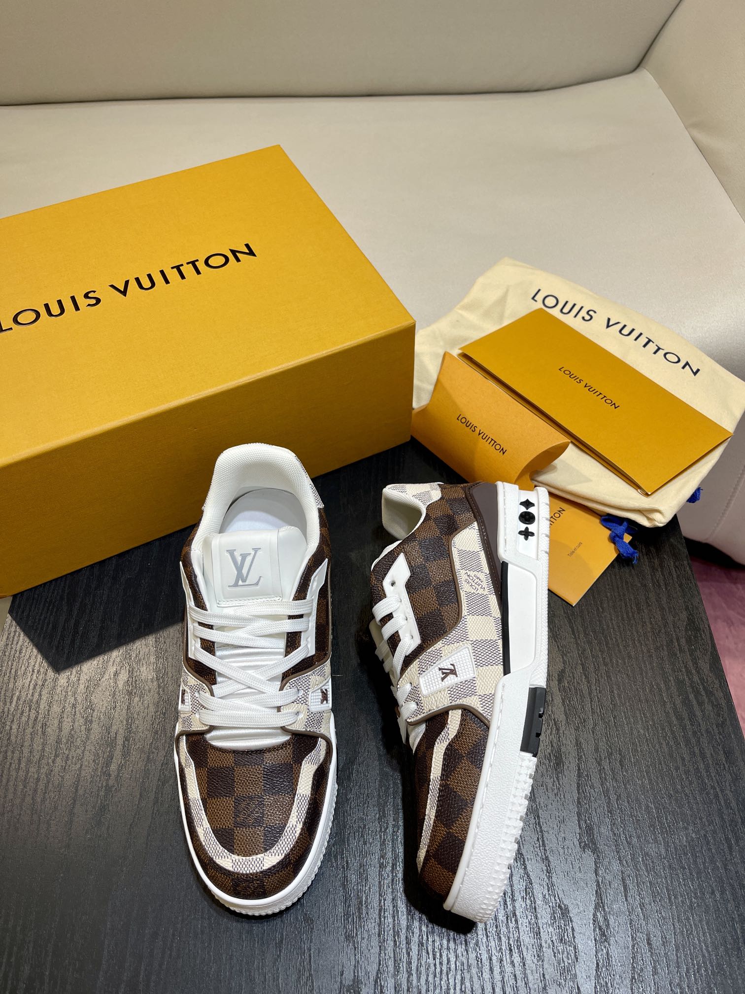 Top version LV 2022 new product TRAINER sneakers, made with original fabric and classic Louis Monogram embossing. Features a low-top design inspired by retro basketball shoes, with Monogram flowers blooming on the innovative injection rubber outsole. Pure handcrafted lasting process, highly accurate reproduction!
