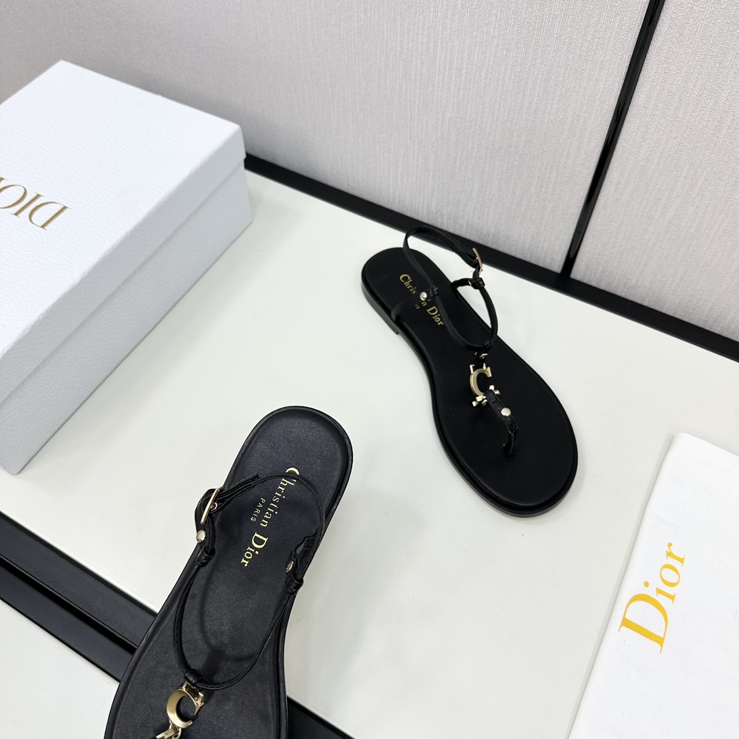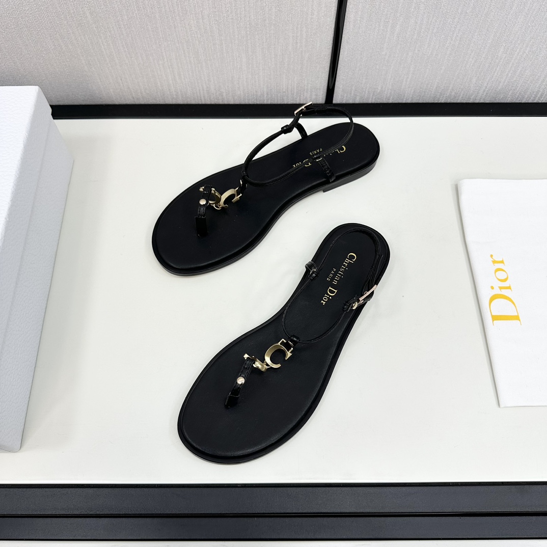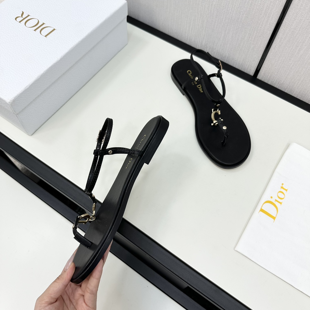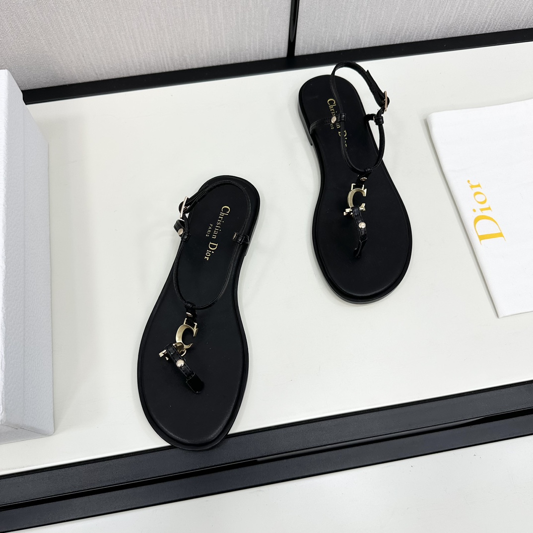 Dior DIOR 2024 Spring/Summer New Haute Couture Collection C'est Flat Round Toe Women's Shoes Celebrity Same Style CD Letter Logo Metal Buckle Flip Flop Sandals Top High-End Version