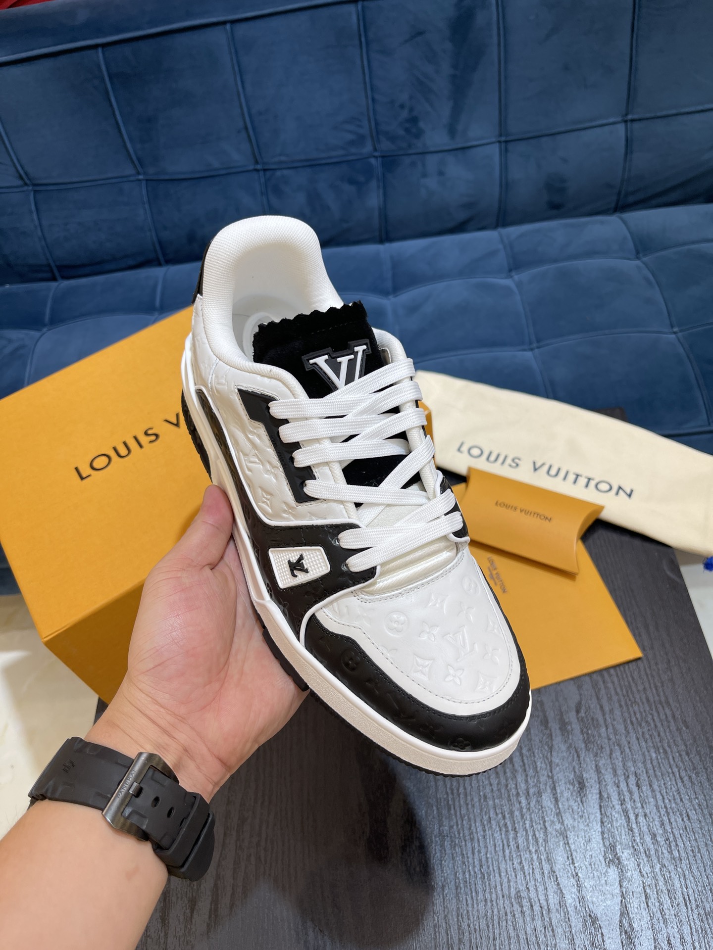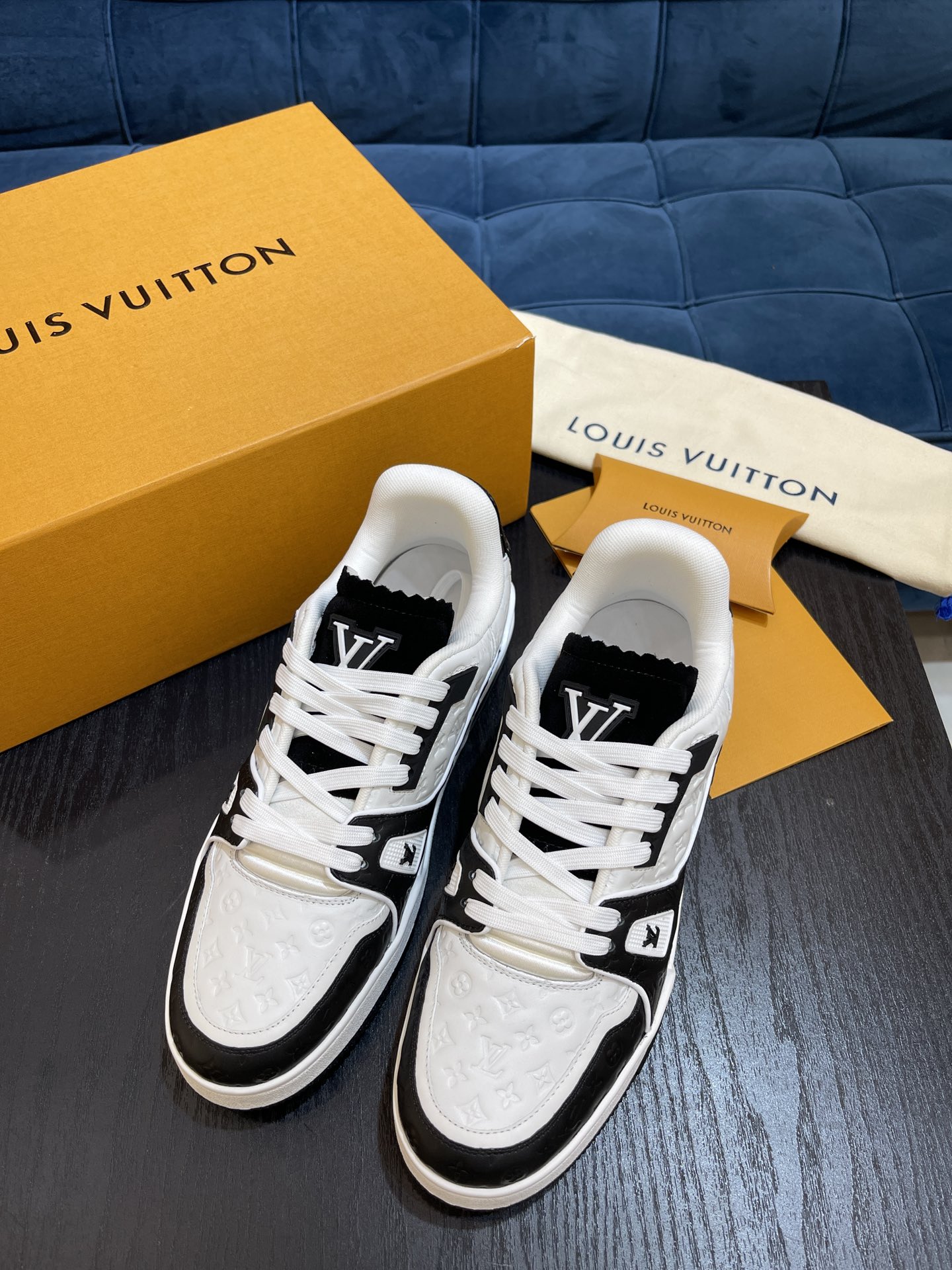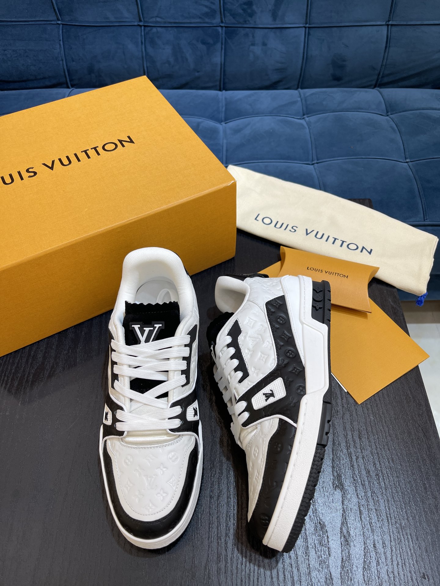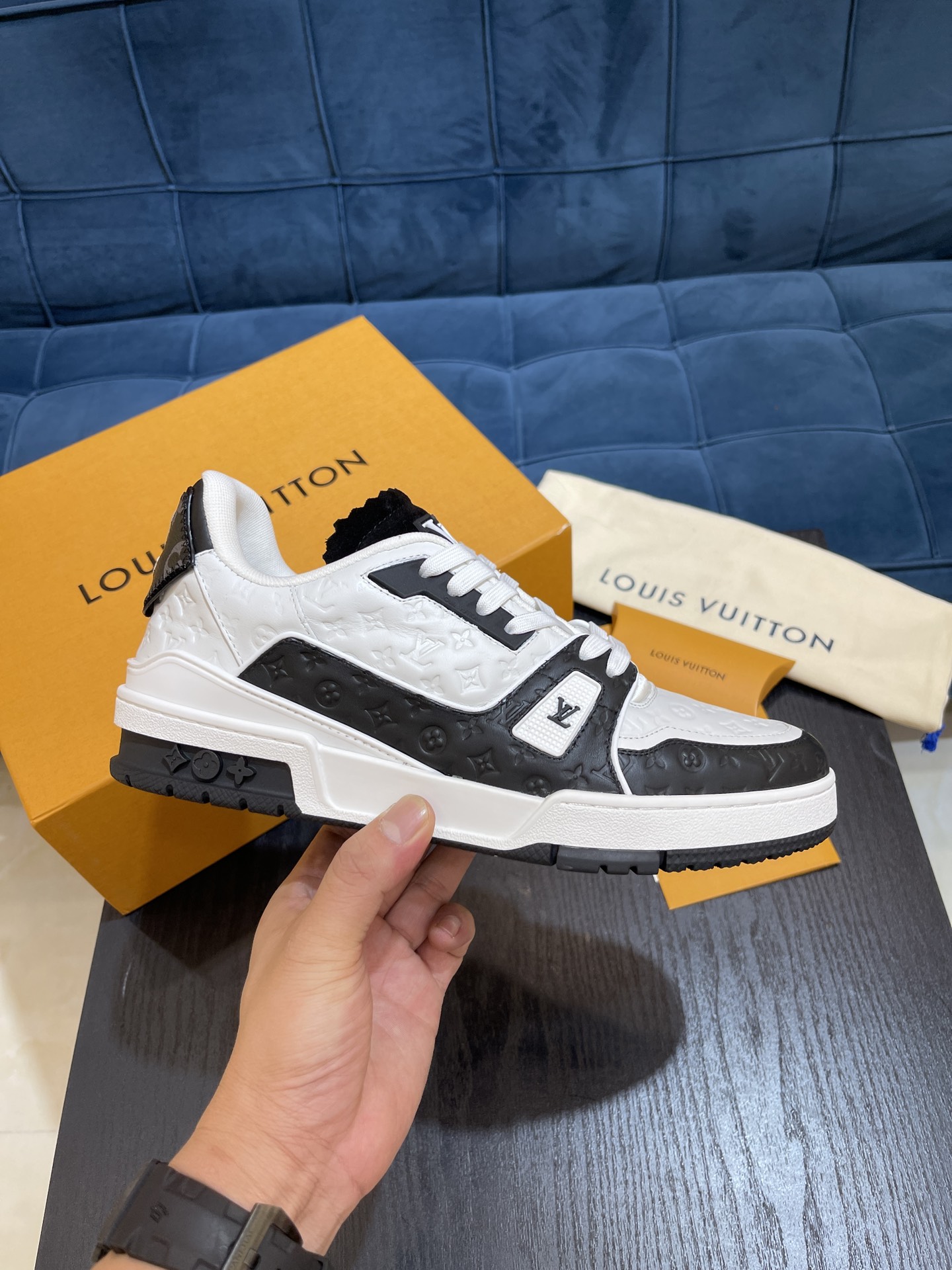 L 2022 New Product Men's TRAINER Sneakers, using the original fabric surface with Louis classic Monogram embossing. Featuring a low-top design inspired by retro basketball shoes, with Monogram flowers blooming on the innovative injection rubber outsole. Pure handcrafted pulling and last mounting process, highly accurate reproduction! Size: 38-45