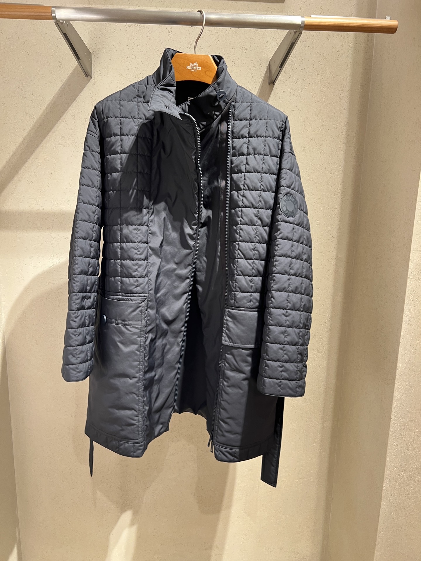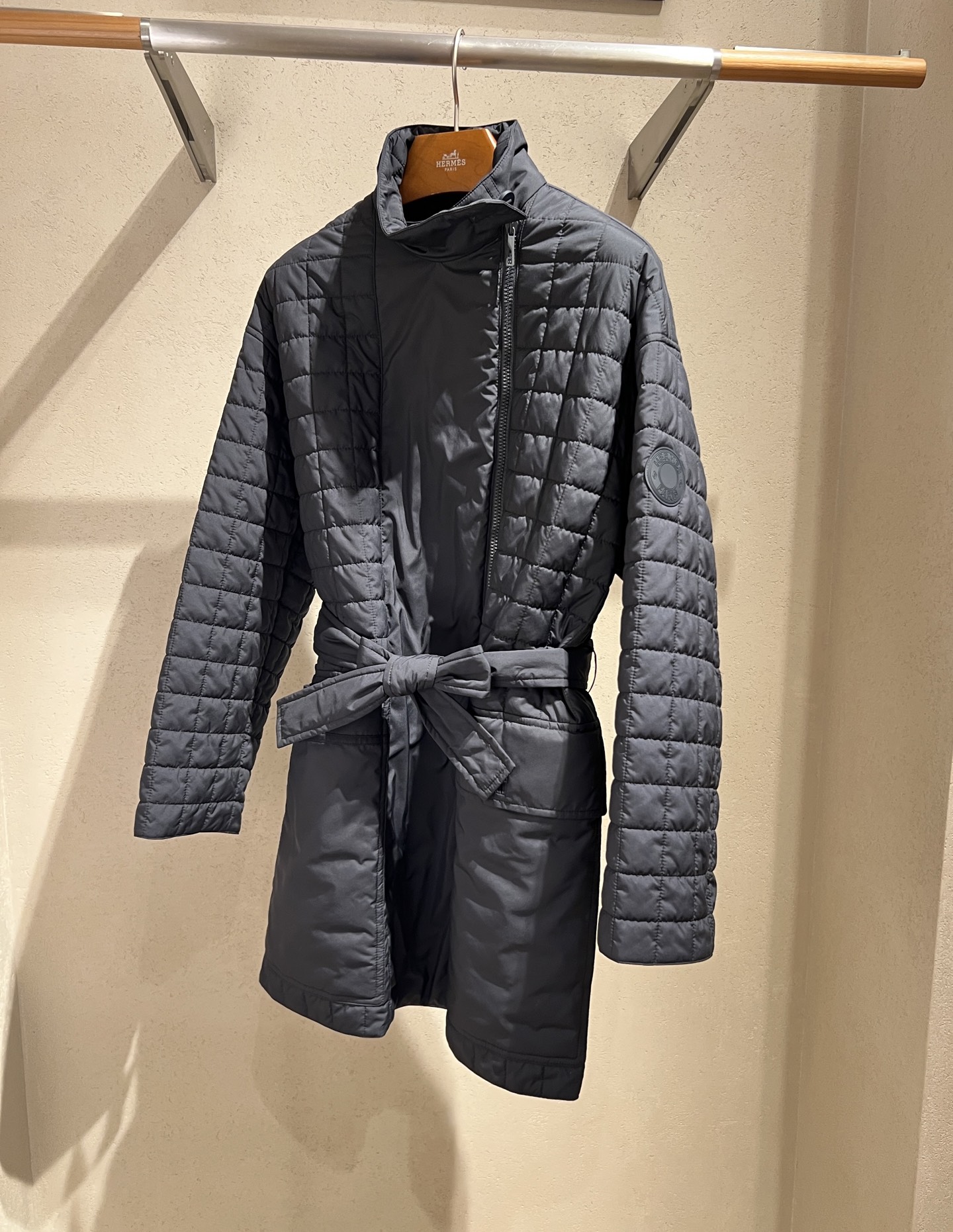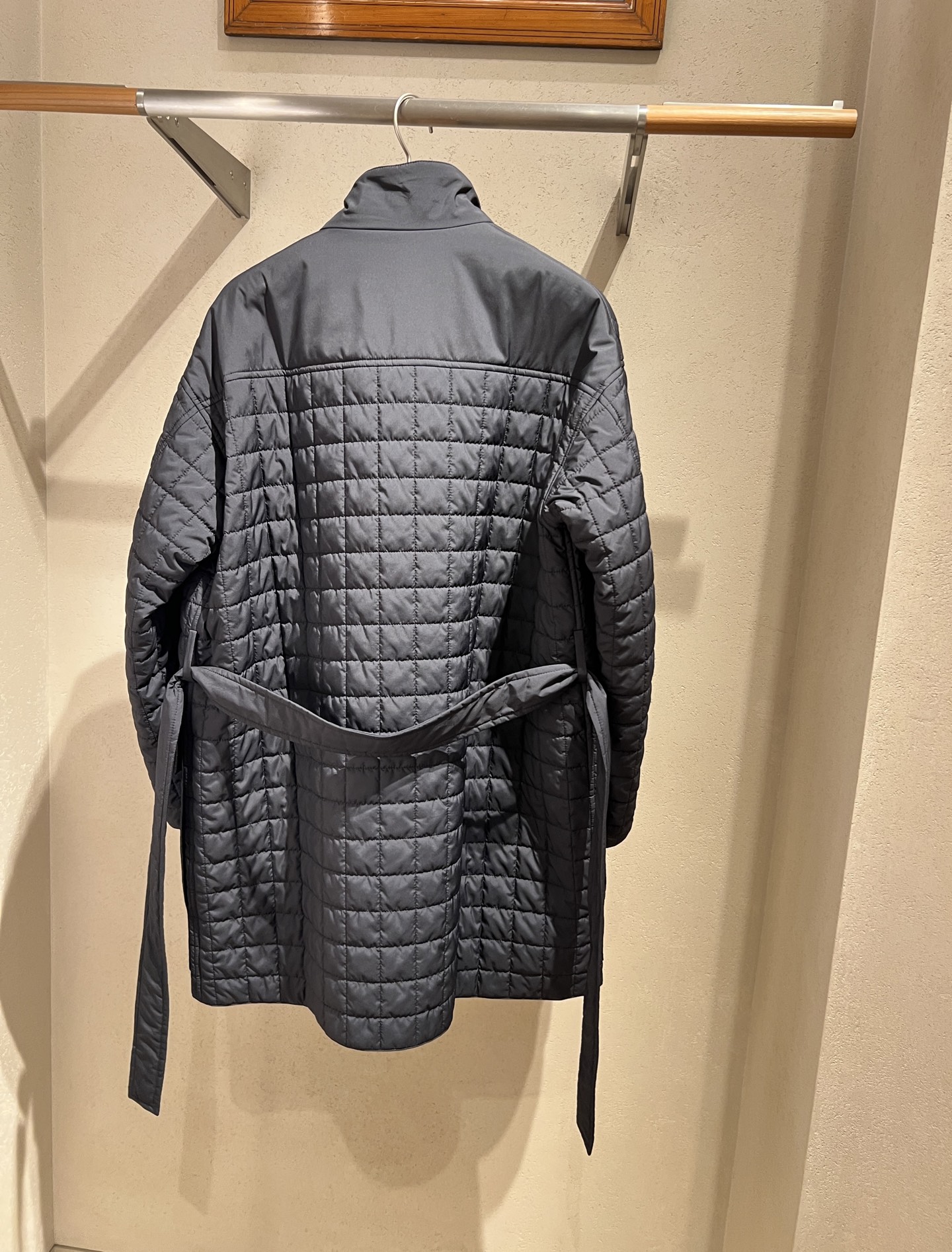 Quilted plaid cotton jacket, evenly spaced filling for balanced warmth, stand-up collar design adds a touch of elegance, straight cut silhouette suits all body types, waist belt for a fitted look that is both warm and stylish.