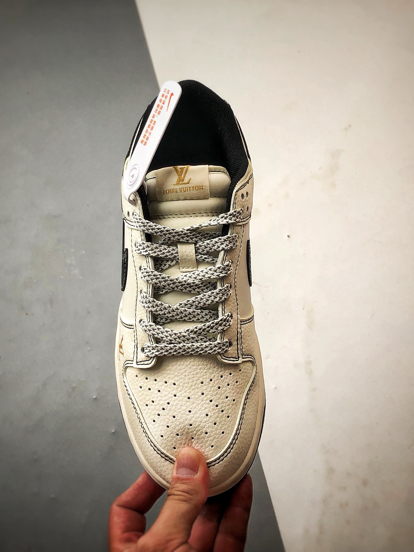 LV Reflective White and Black Low-Top Casual Sports Sneakers