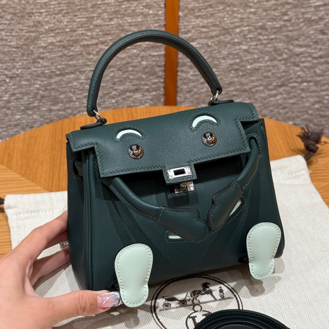 Millennium doll bag, emerald/mint green, plain leather, imported original French cowhide, silver clasp, high-end fully handcrafted exclusive customization.