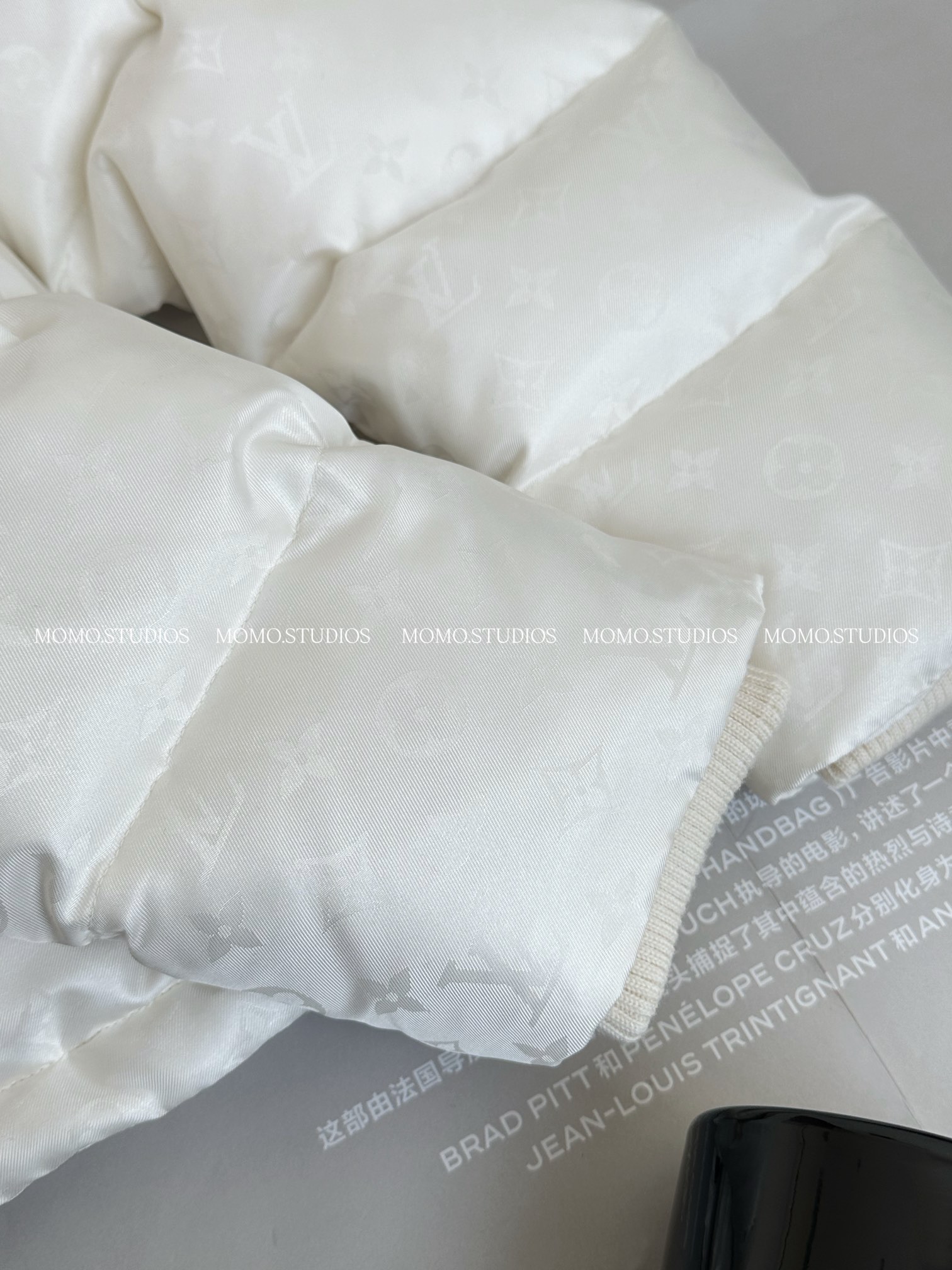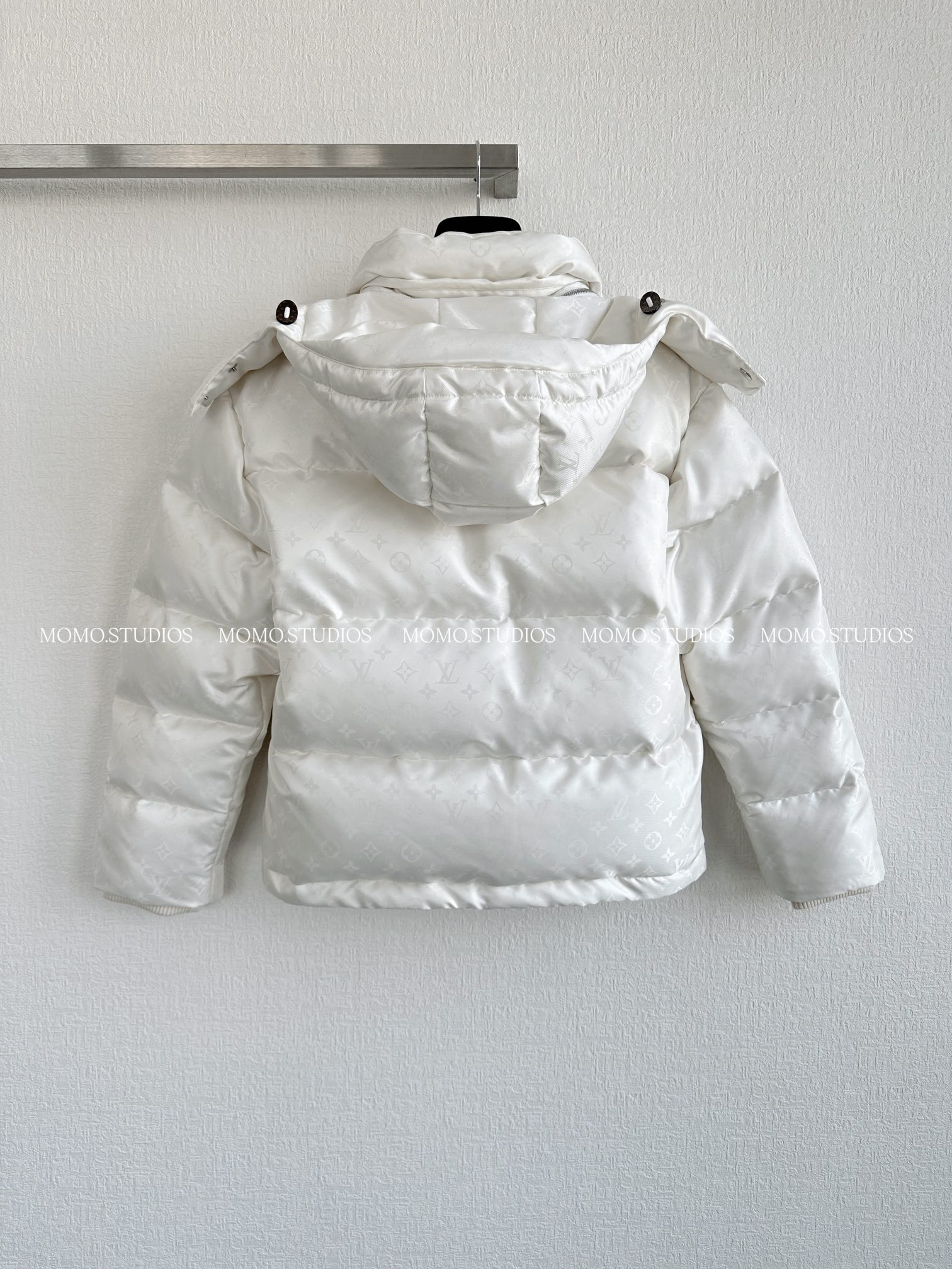 MOMO | Popular down jacket with logo pattern. Colors available. Sizes: S, M, L.