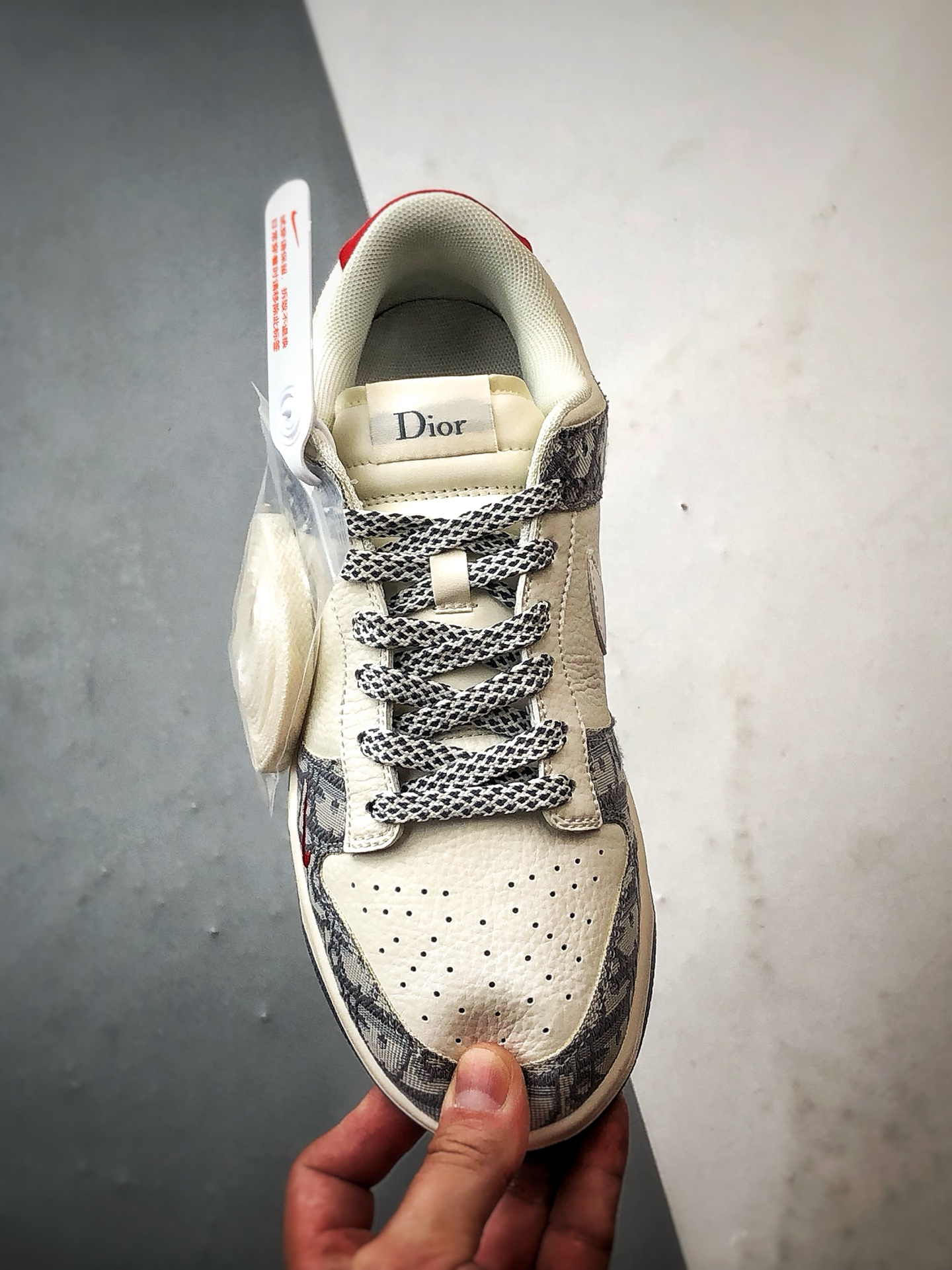 Dior Beige Gray Printed Woven Fabric Low-Top Casual Sports Sneakers