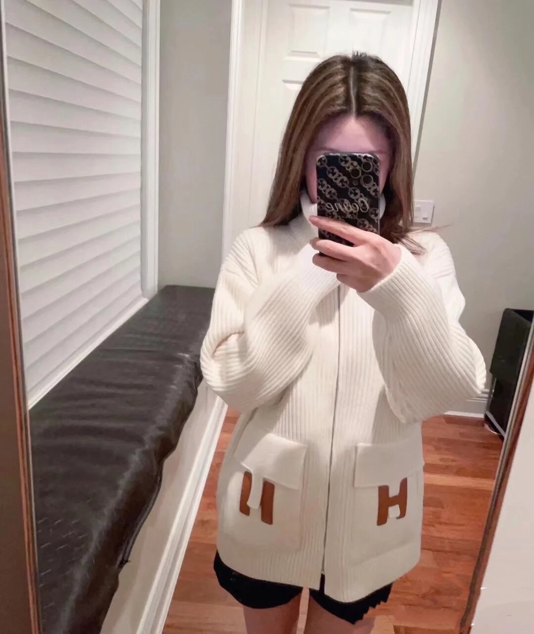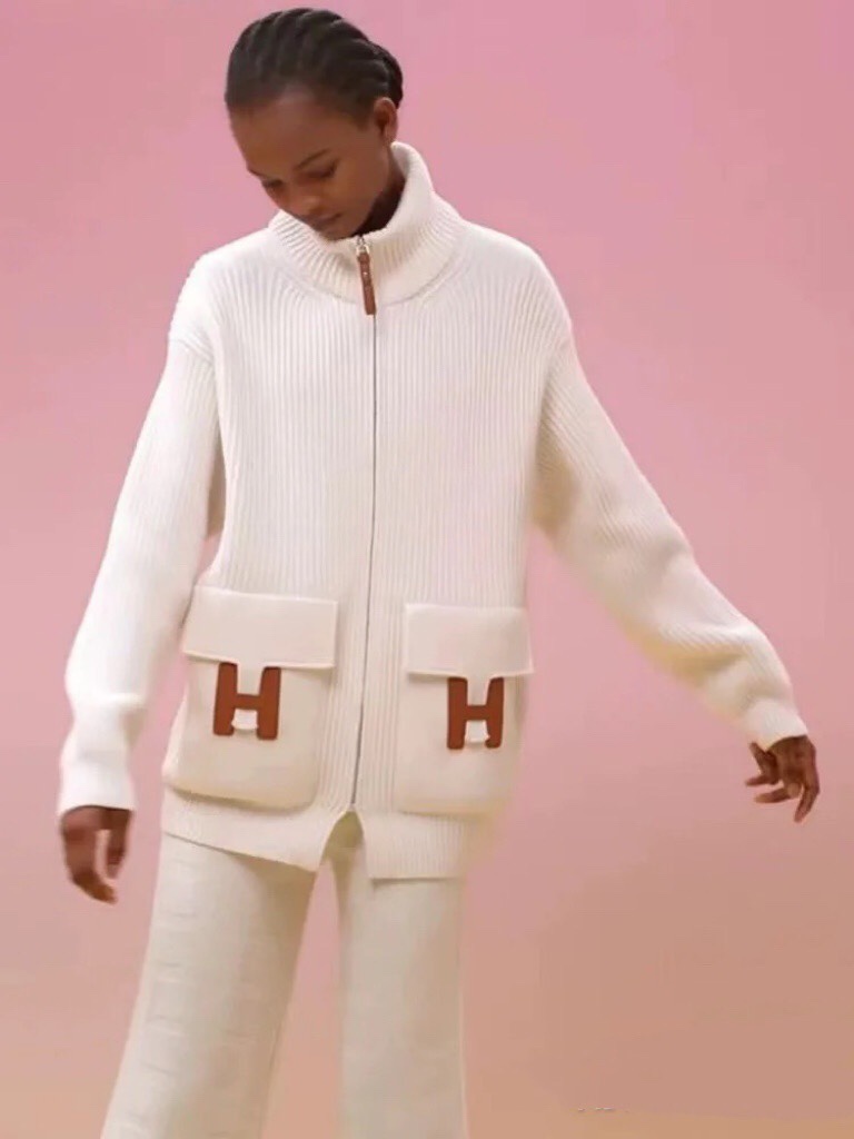 Cream color leather-trimmed cardigan coat, made from imported Italian 60-count superfine wool blend, using Japanese Shima machine authentic 7-gauge knitting technique. The texture is delicate, soft, and plush, comparable to cashmere, thick and warm. Large pocket with leather trim design, very distinctive, eye-catching and attention-grabbing. The silhouette is slightly loose, with an advanced color scheme, versatile and elegant. Looks even better on than in real life, a must-have for quality enthusiasts! Available in three sizes: 36/38/40