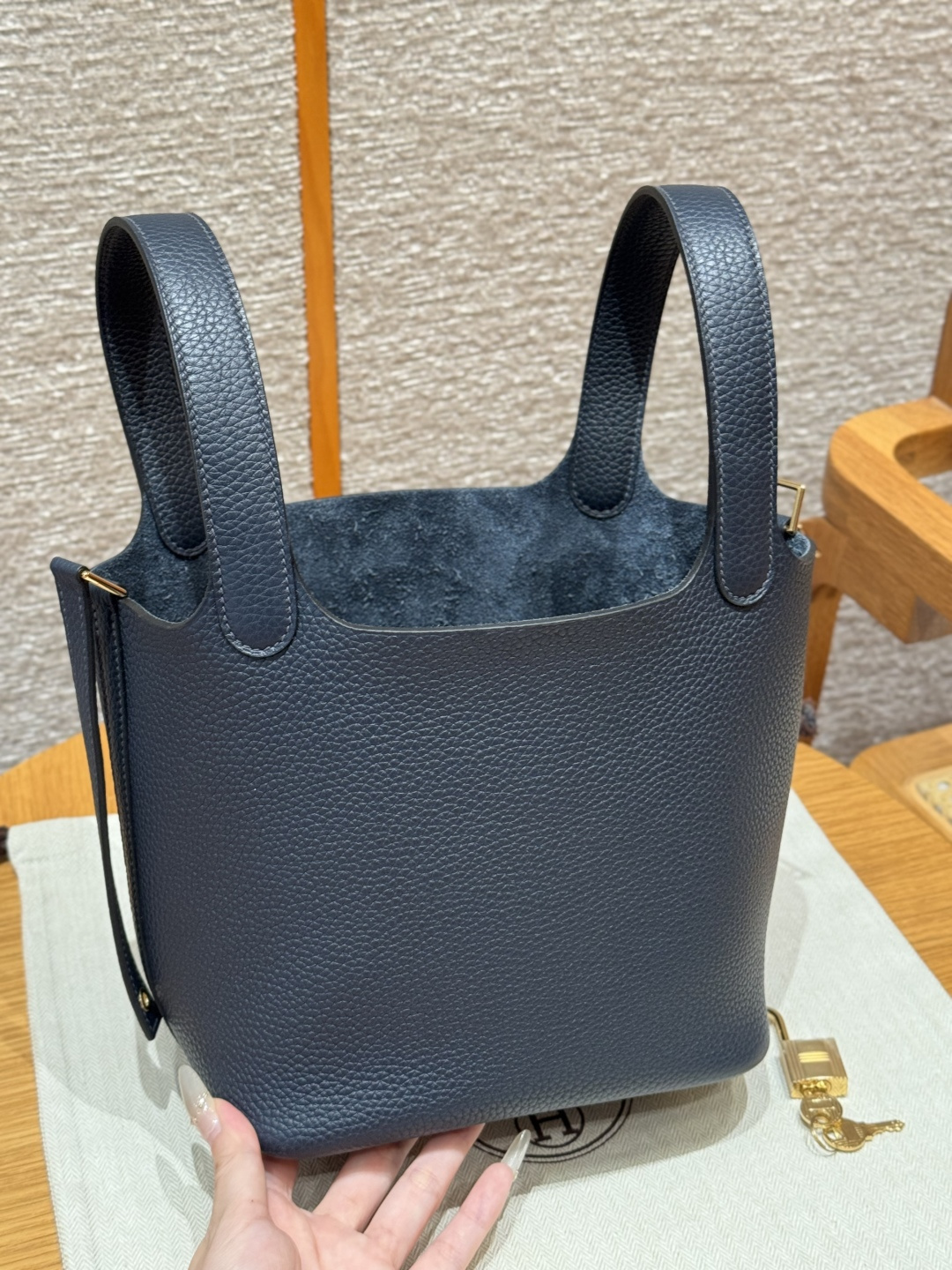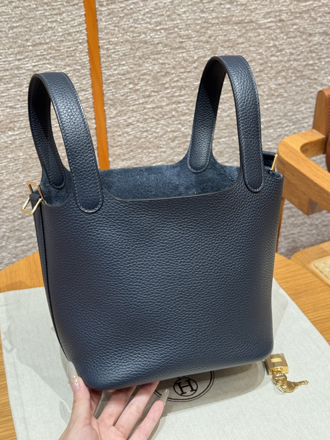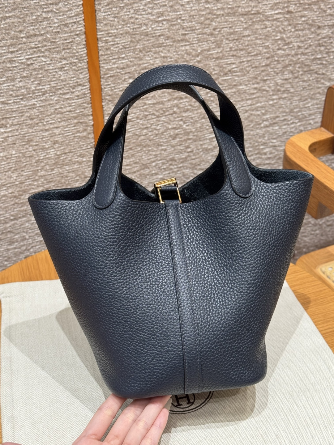 18cm Picotin, Midnight Blue, Clemence leather, imported original French cowhide, gold clasp, high-end fully handcrafted exclusive customization.