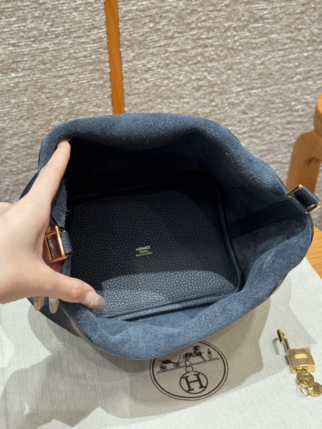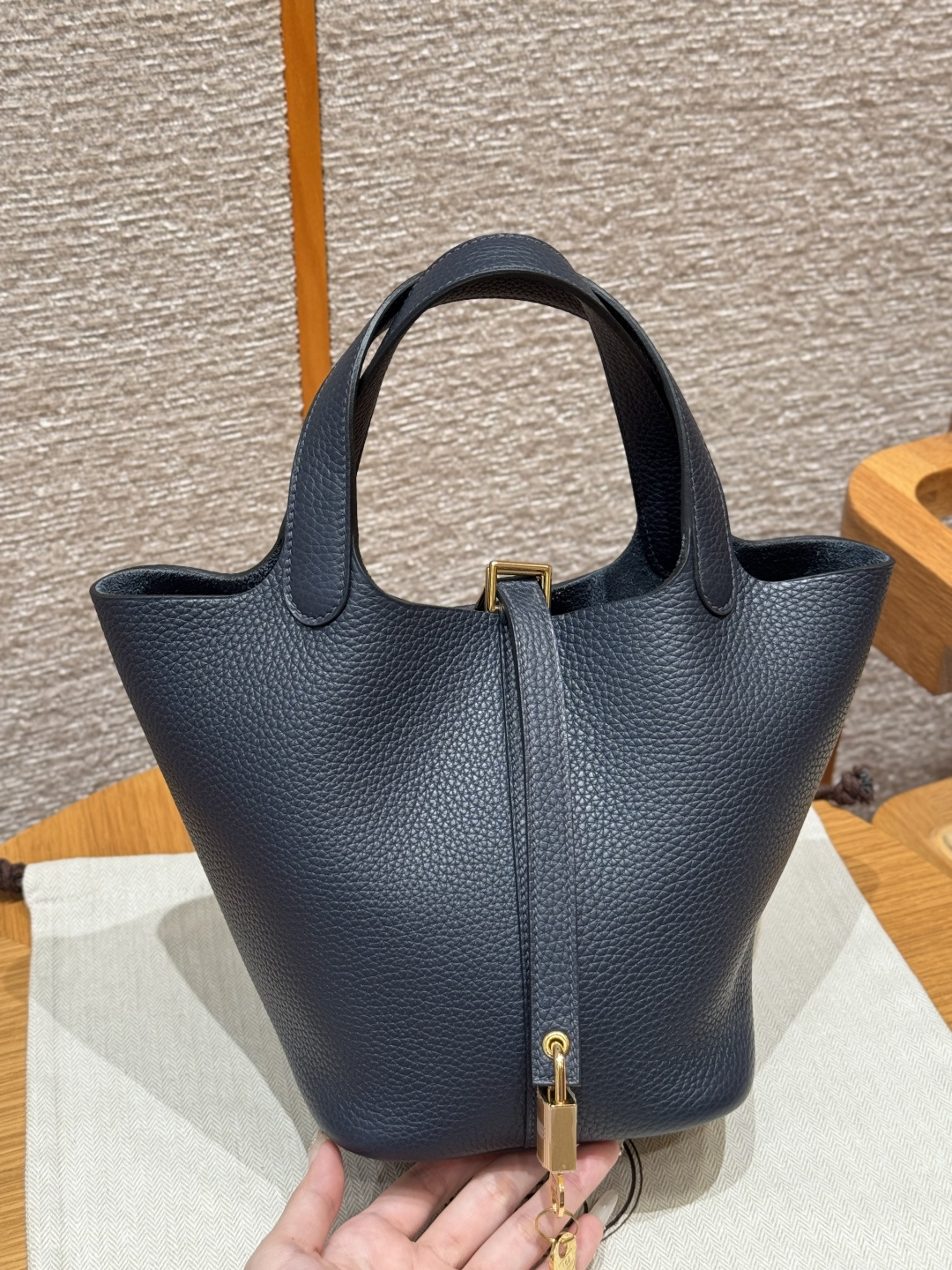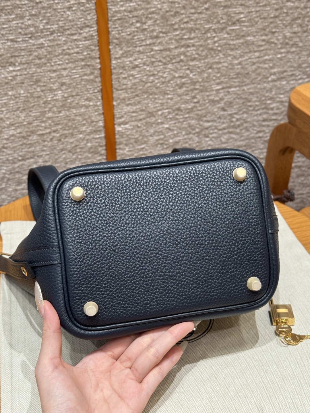 18cm Picotin, Midnight Blue, Clemence leather, imported original French cowhide, gold clasp, high-end fully handcrafted exclusive customization.