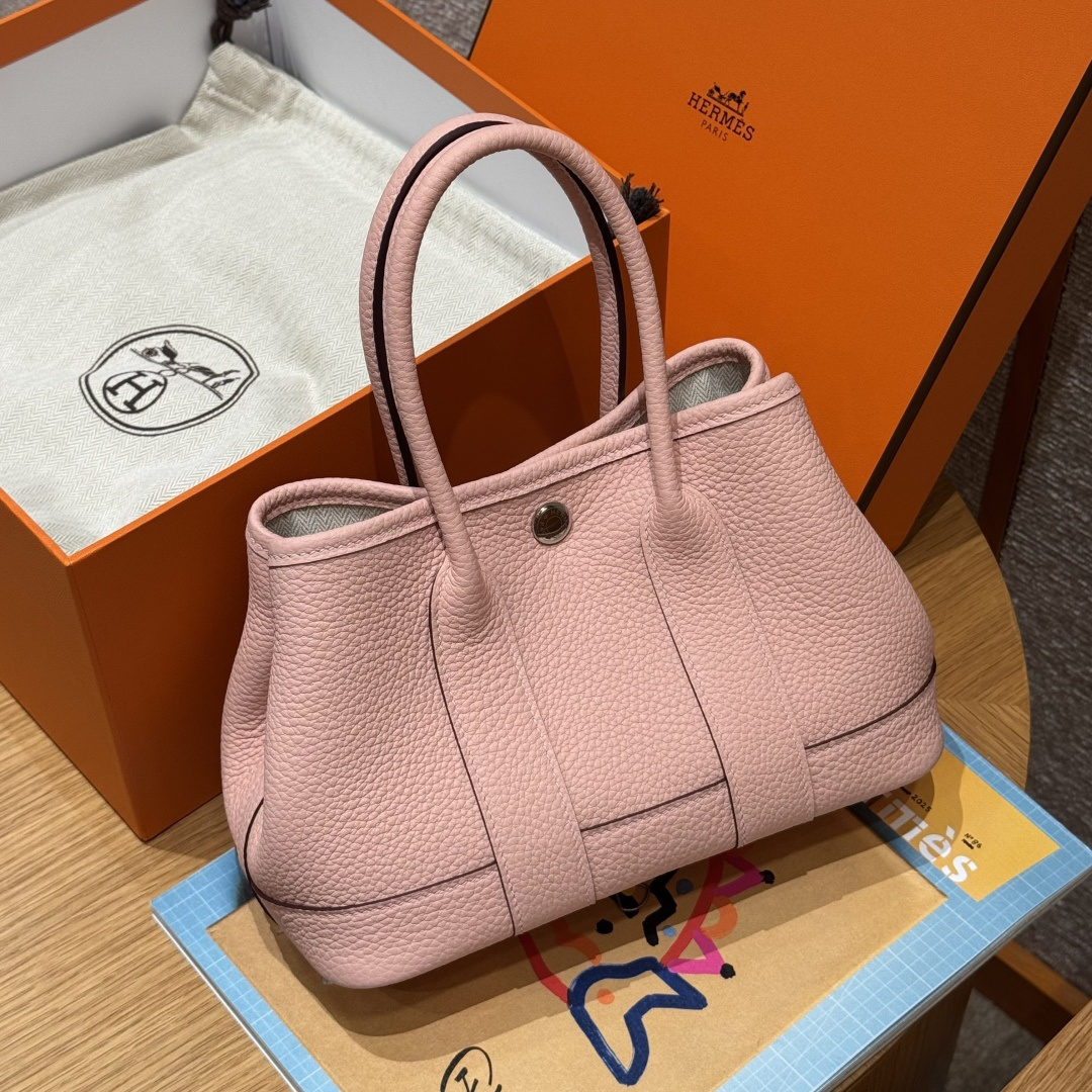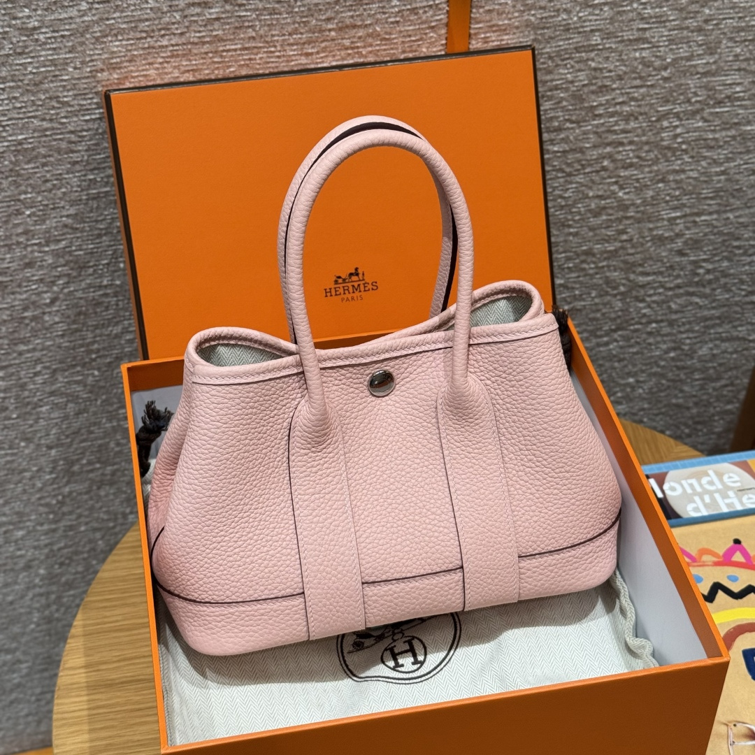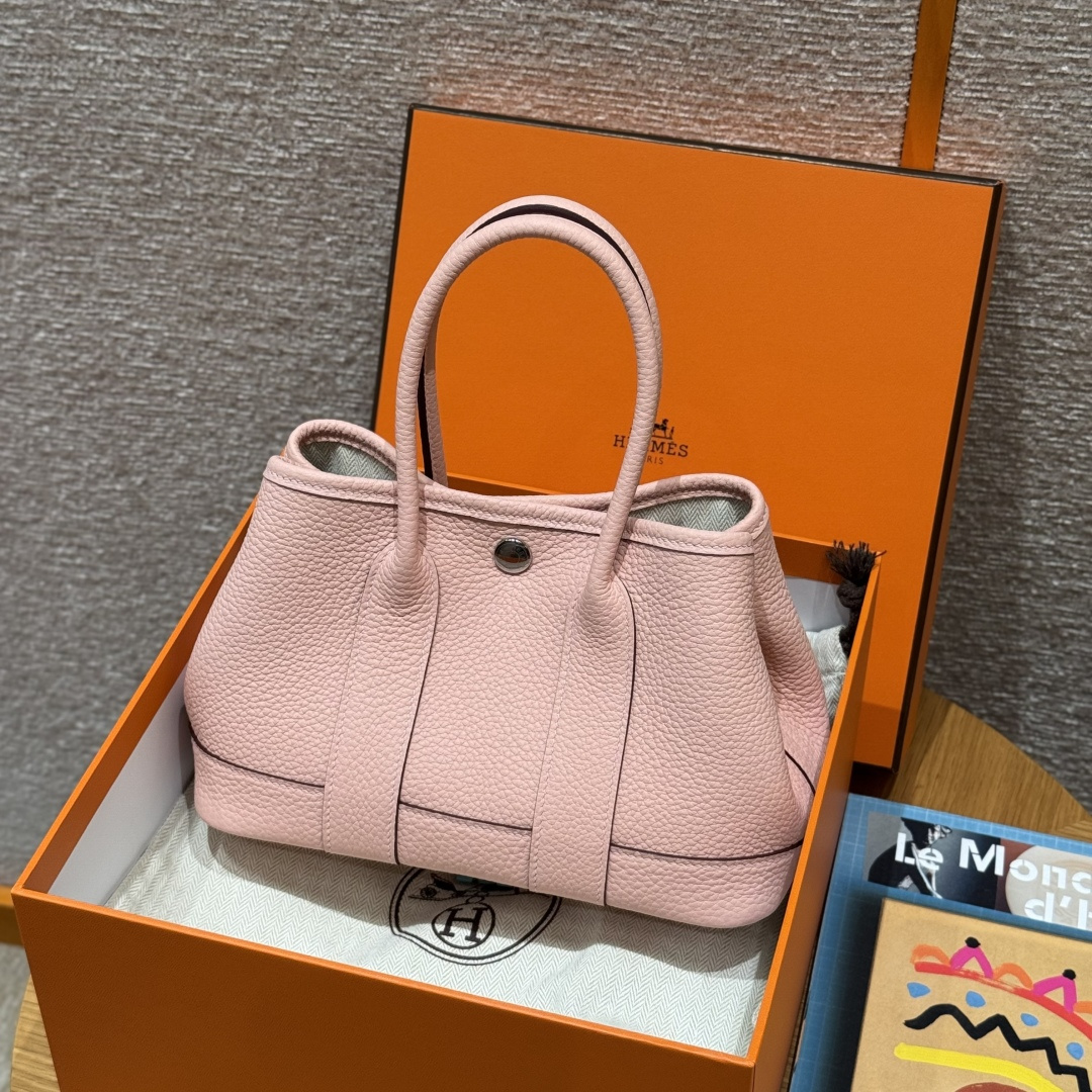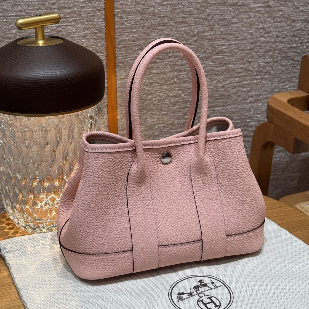 Garden bag 23cm, 3Q pink, Negonda leather, original French imported cowhide, silver clasp, fully hand-stitched high-end custom-made.