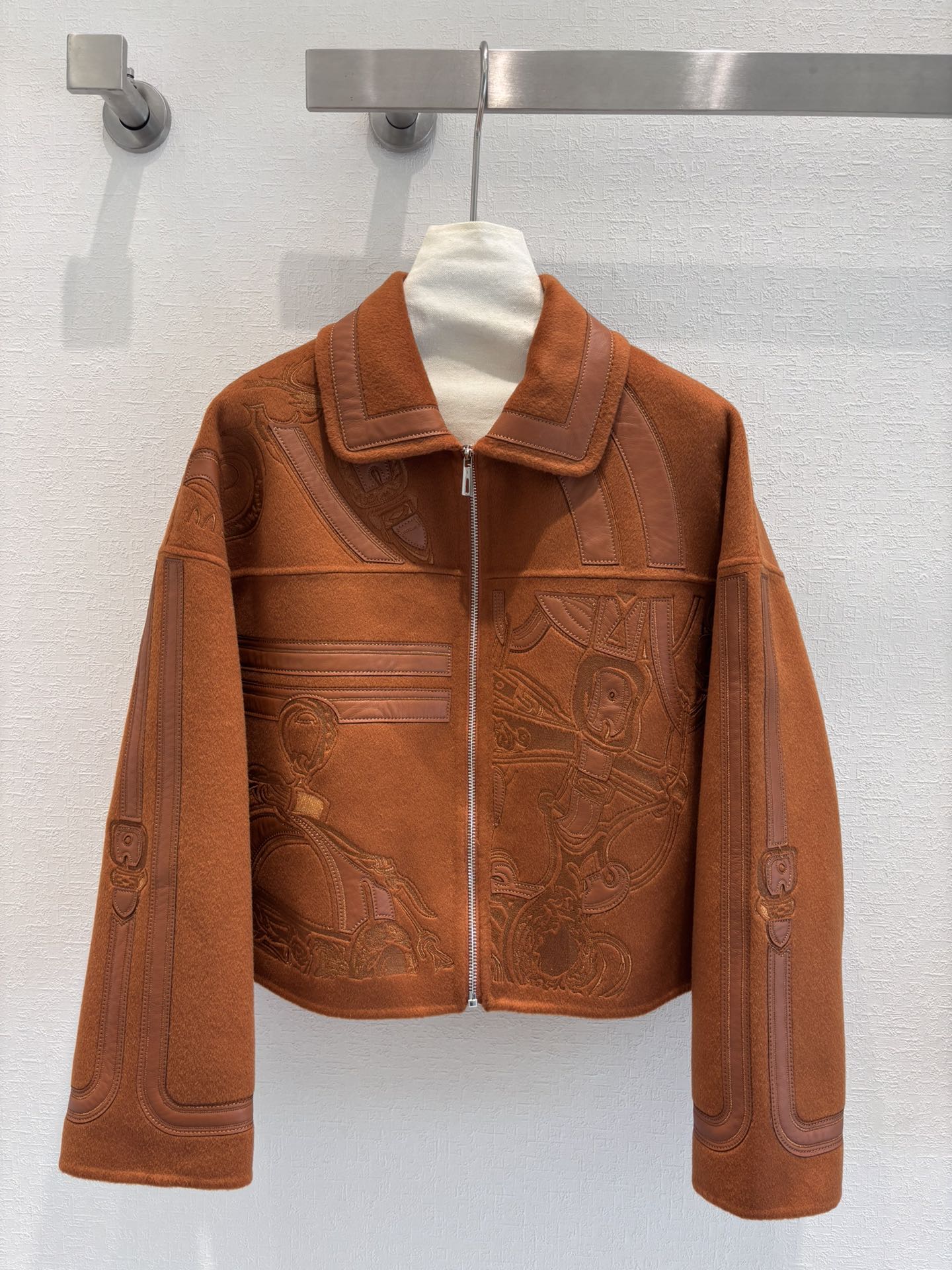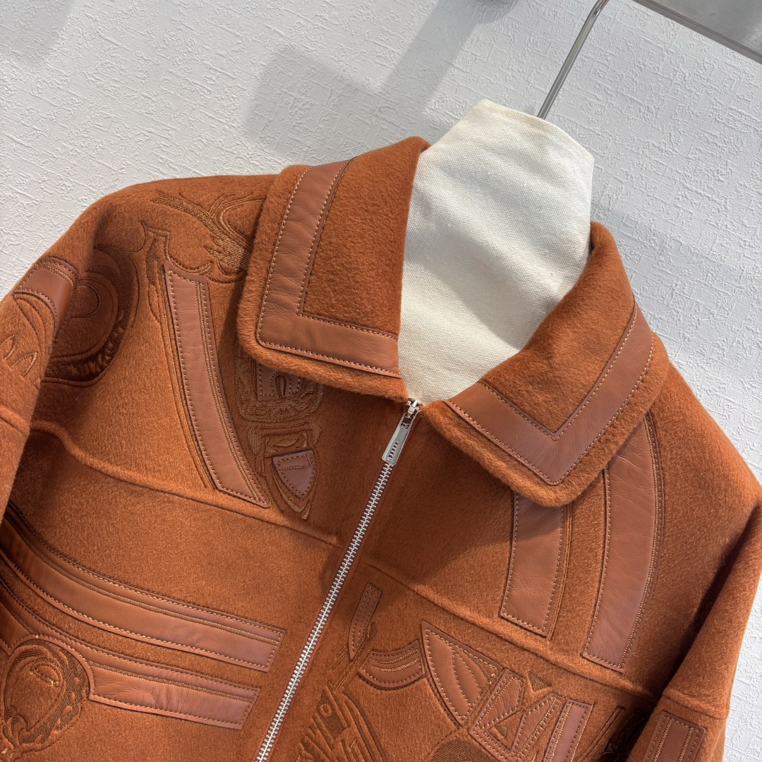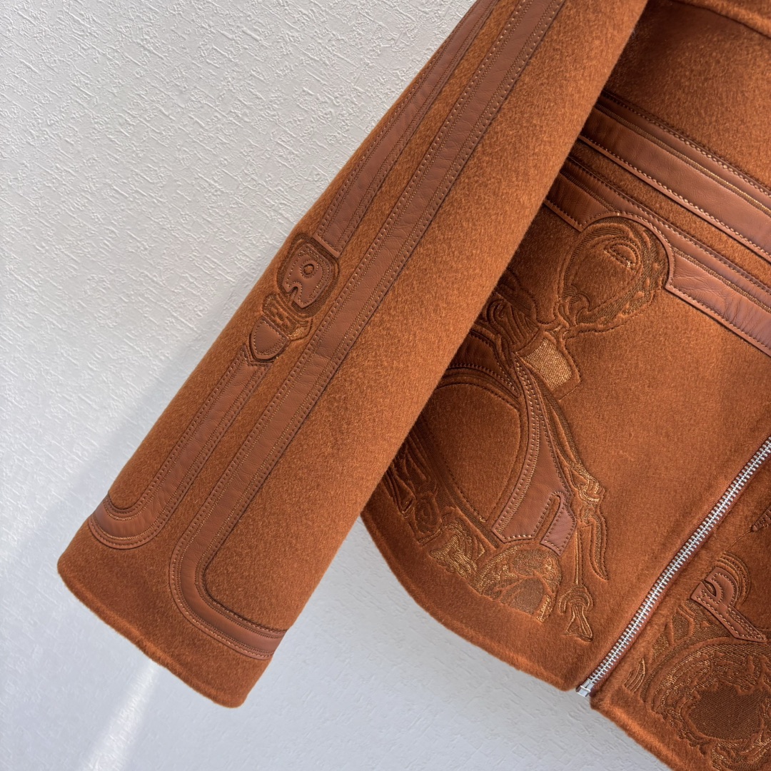 Hes | Autumn and winter new product, pure handmade heavy craftsmanship double-sided cashmere jacket! A must-have coat for the beautiful and wealthy! Original version purchased for replica mold-opening embroidery craftsmanship, custom original calfskin embroidery and leather patch craftsmanship with unbeatable texture 😍 Elegant dropped shoulder sleeve design, handsome and elegant, gentle temperament! Original imported hardware accessories, imported cashmere fabric with a structured and stylish texture, versatile figure-flattering silhouette that looks tall and slim! Perfect workmanship and quality visible in the details!