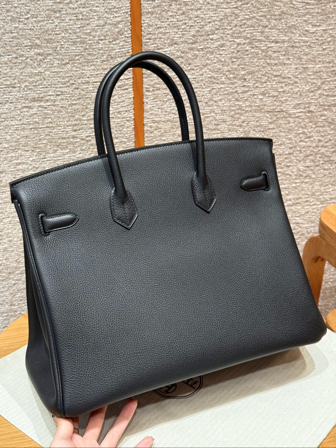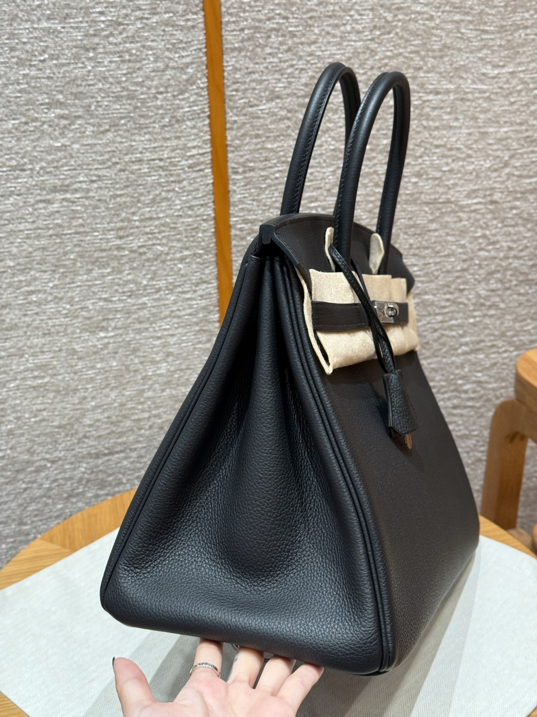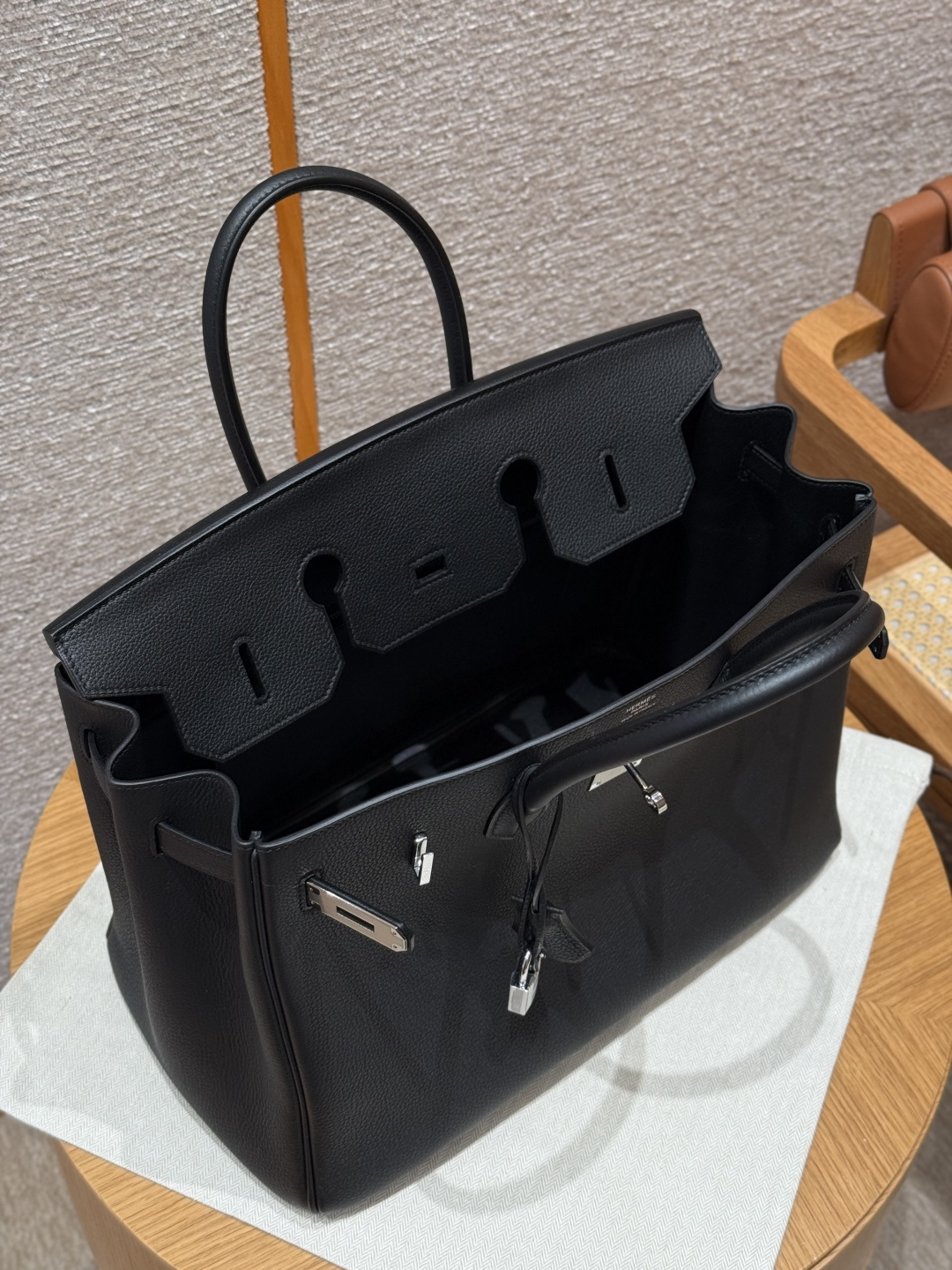 Platinum 35cm, black, French imported cowhide, silver clasp, high-end fully handcrafted exclusive customization.