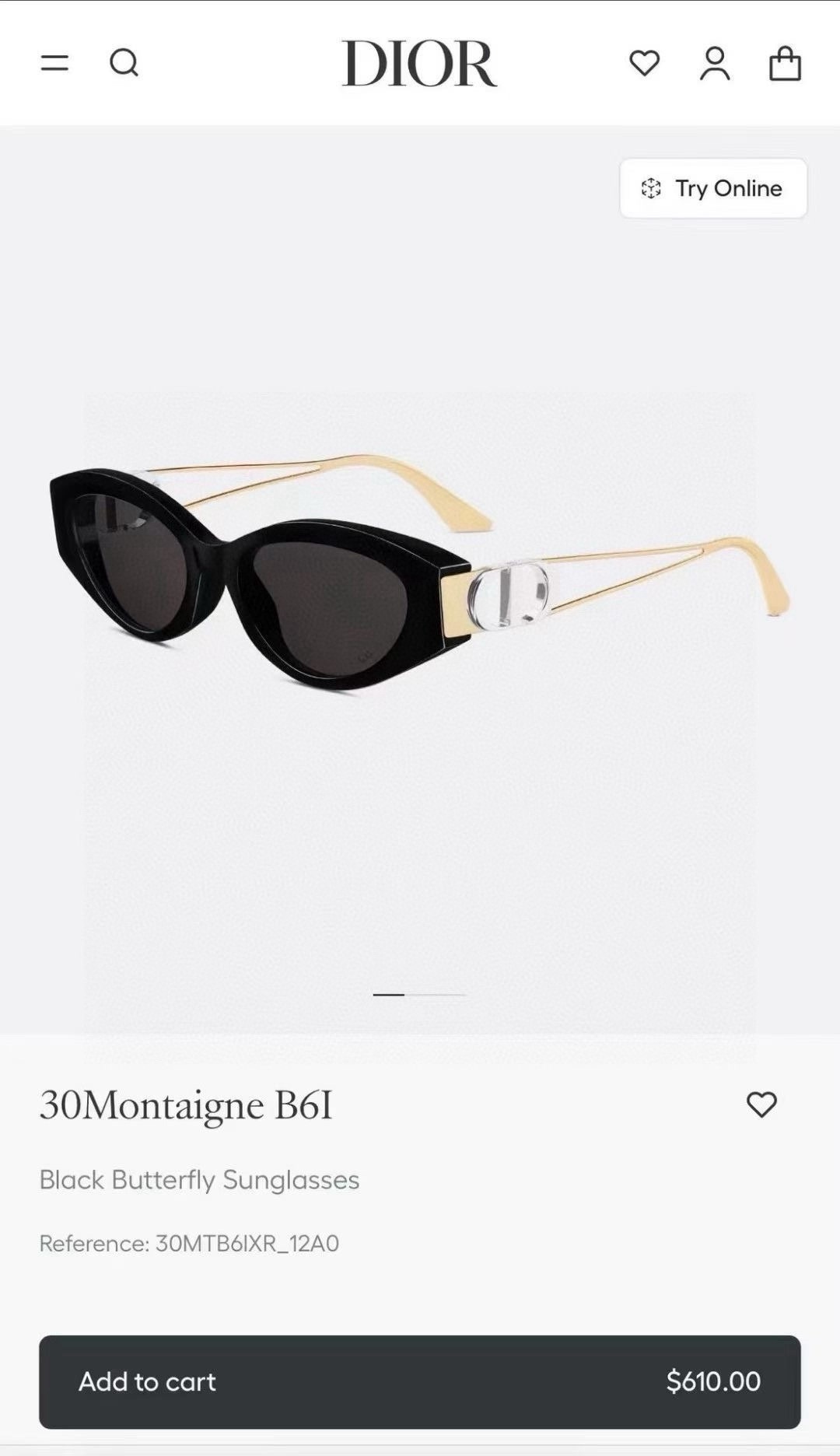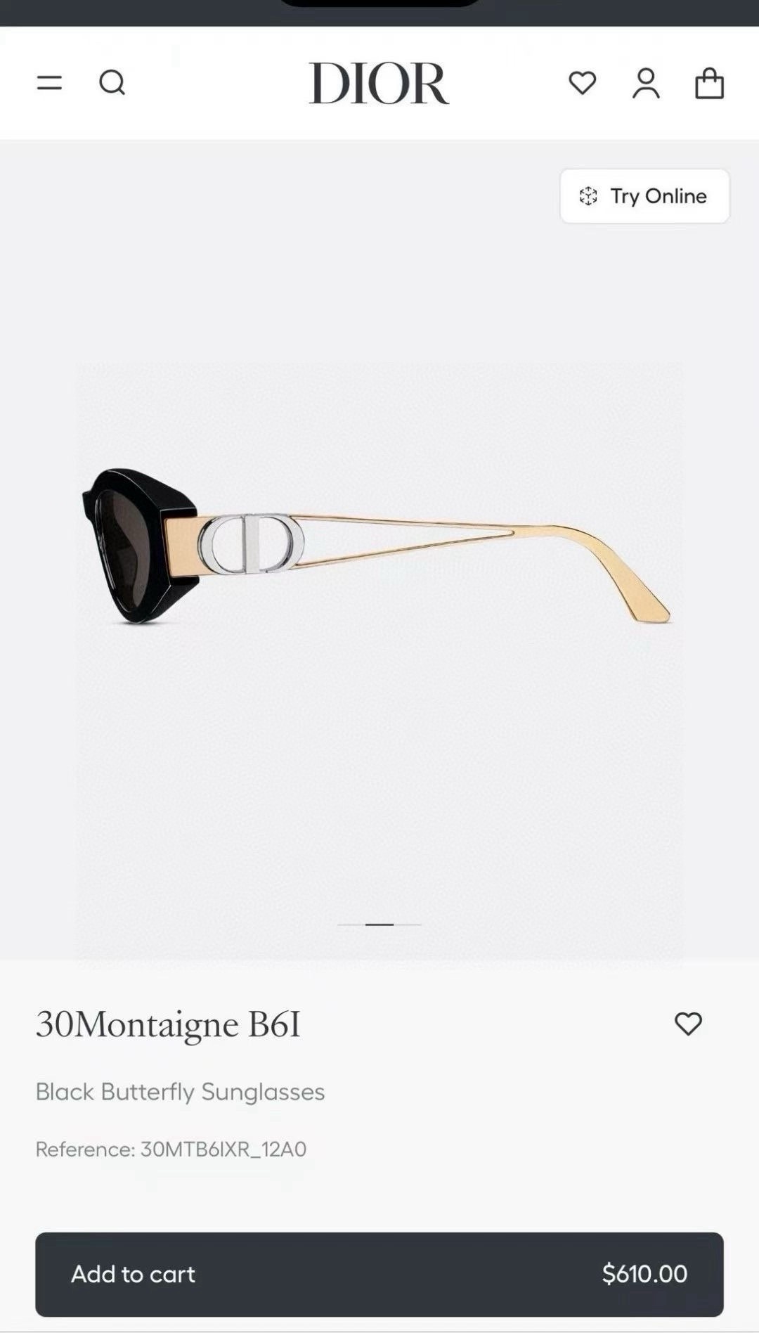 Official website image DIOR These sunglasses exude urban elegance, enhancing the style of the collection. The black acetate frame is paired with metal temples featuring a gold finish, adorned with a practical silver-finished metal CD hinge. The gray lenses add sophistication, lending a haute couture touch to any look.