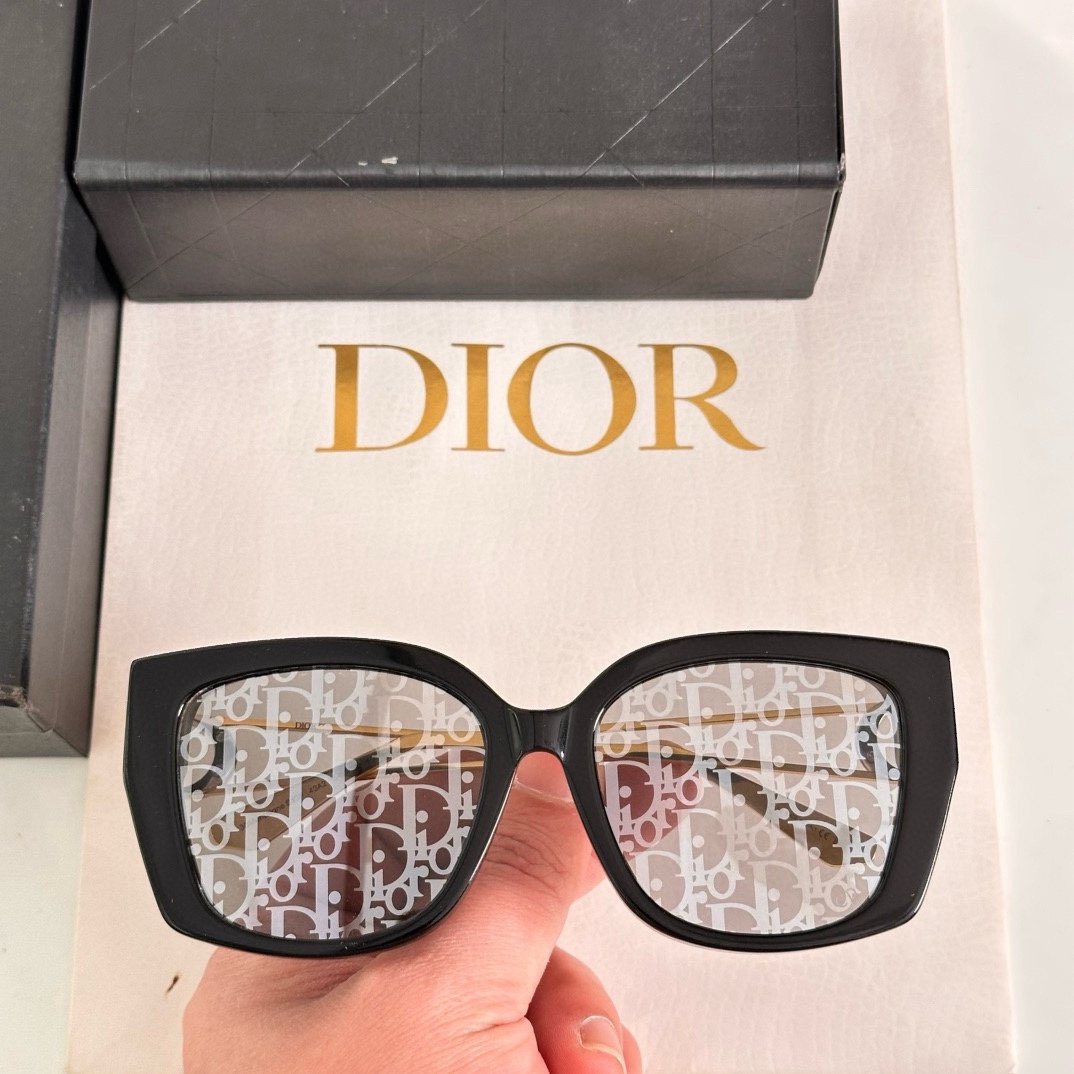 ‼️DIOR sunglasses feature a square design, exuding urban elegance and enhancing the series' style. The black acetate frame is paired with gold-finished metal temples, adorned with practical silver-finished metal CD hinges. The gray lenses add sophistication, elevating various looks with haute couture flair.