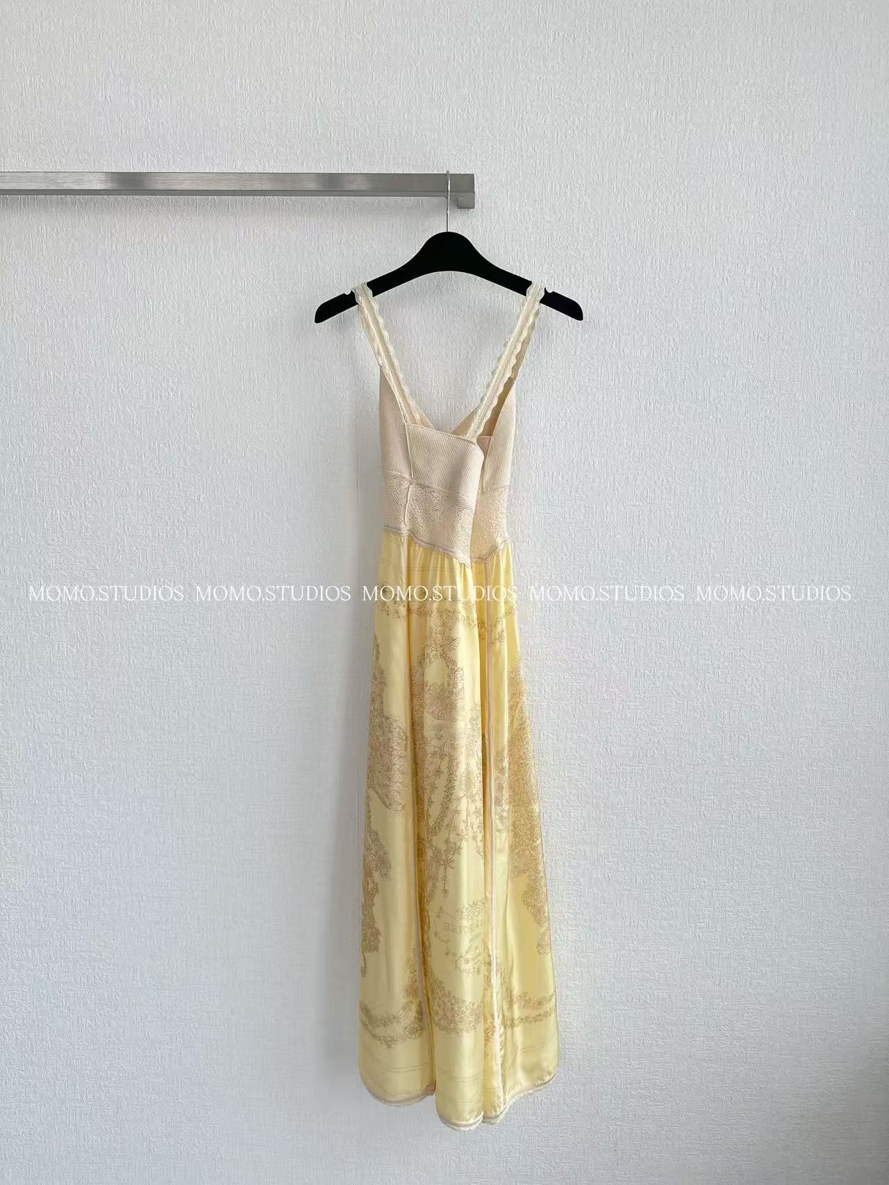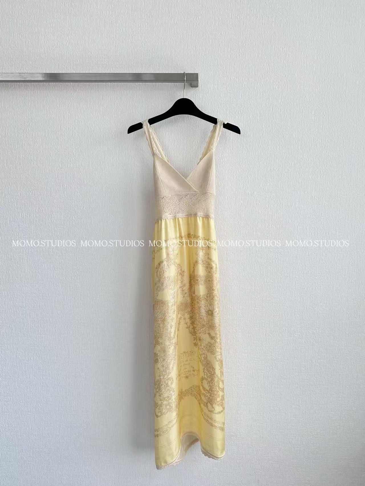 Hermès 25 Mesh Print Silk Twill V-Neck Slip Dress