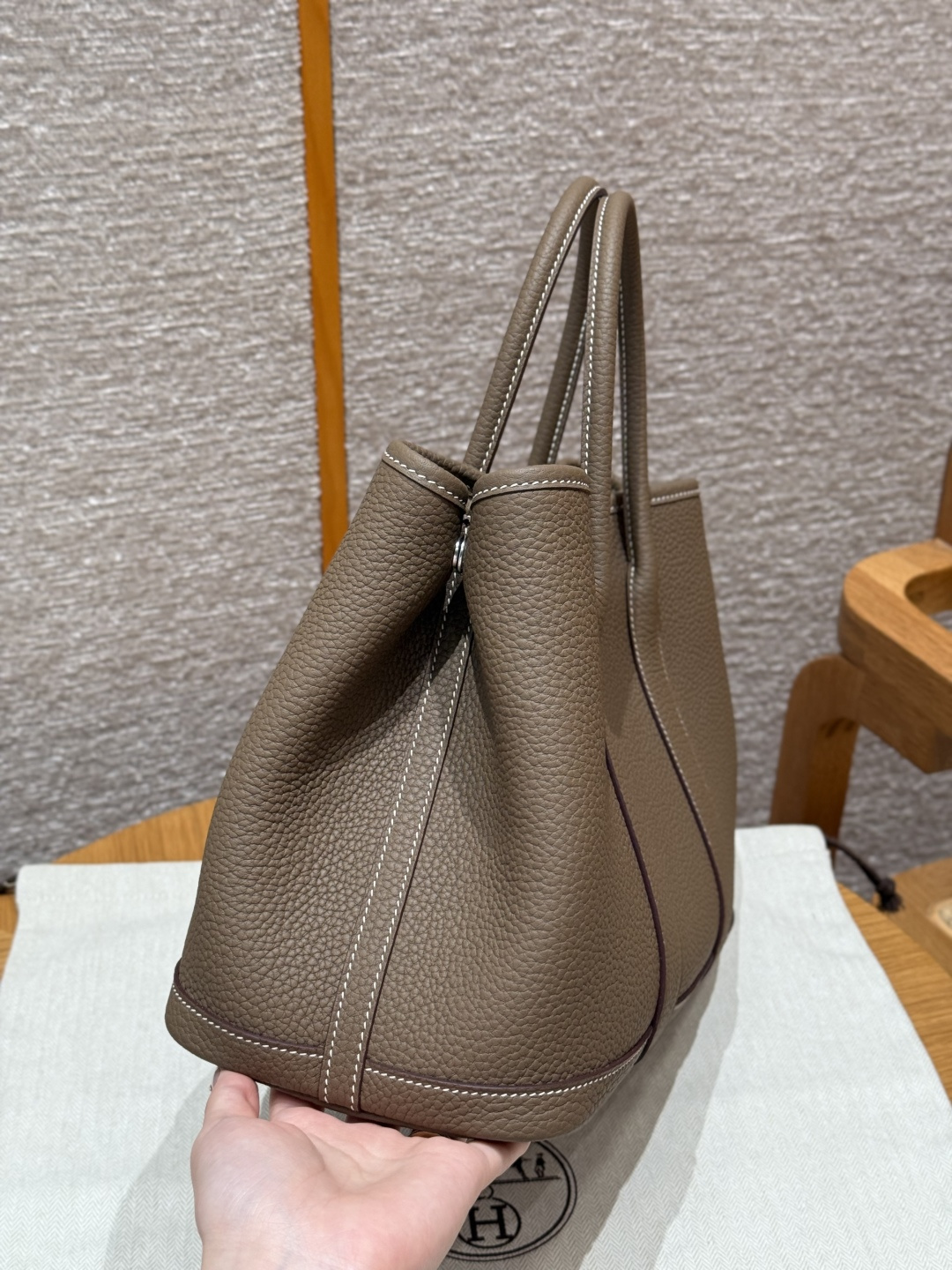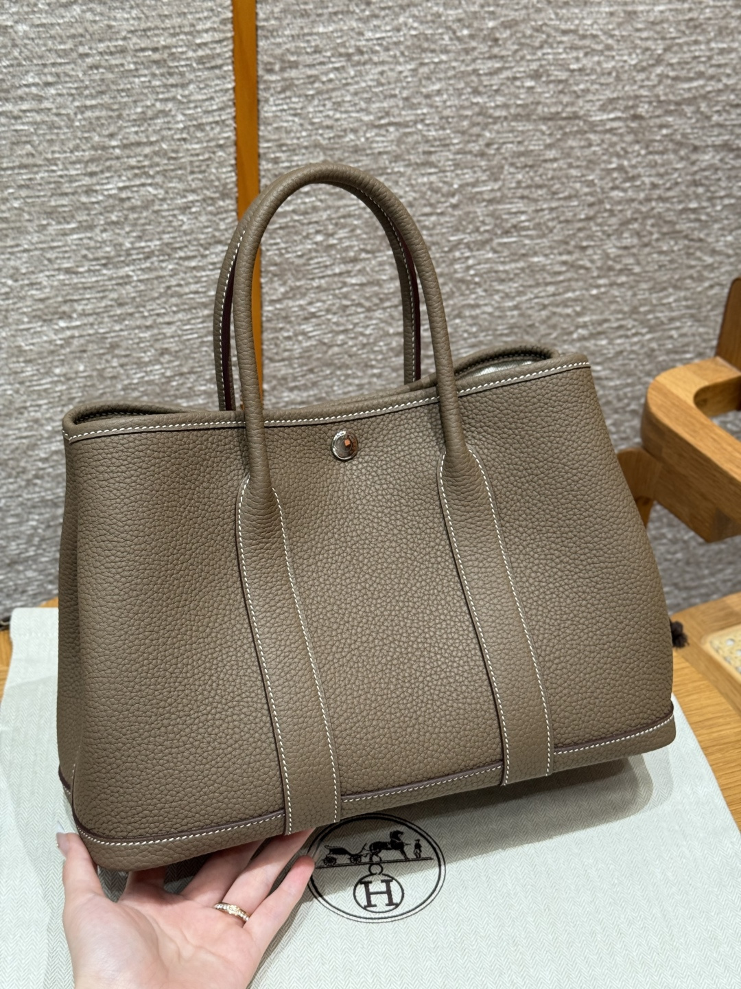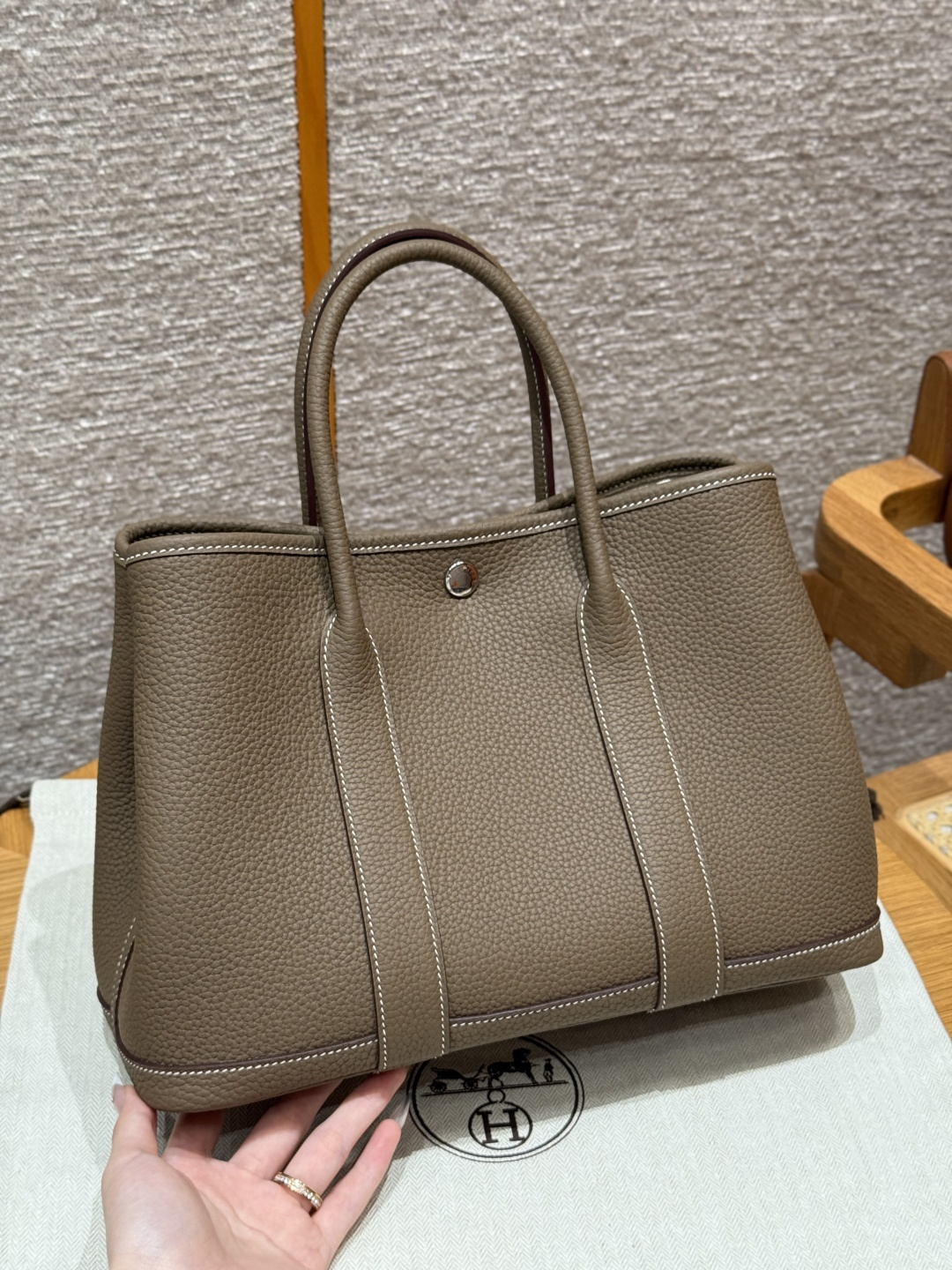 Garden bag 30cm, elephant gray, Ntogo leather, original French imported cowhide, silver buckle, fully hand-stitched high-end custom.