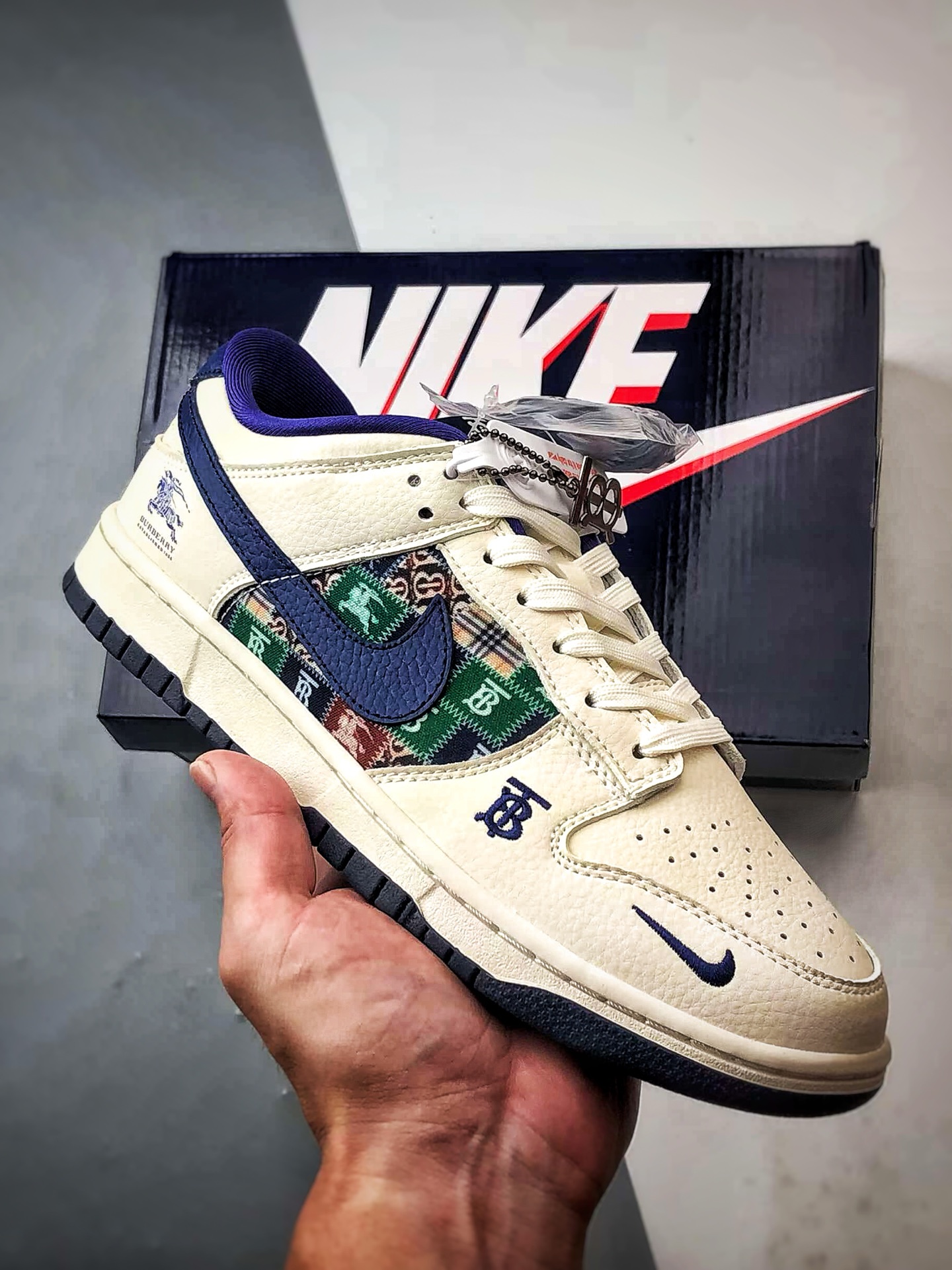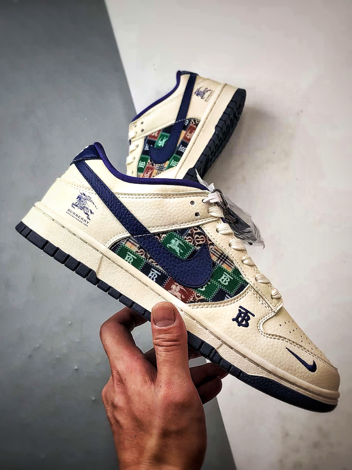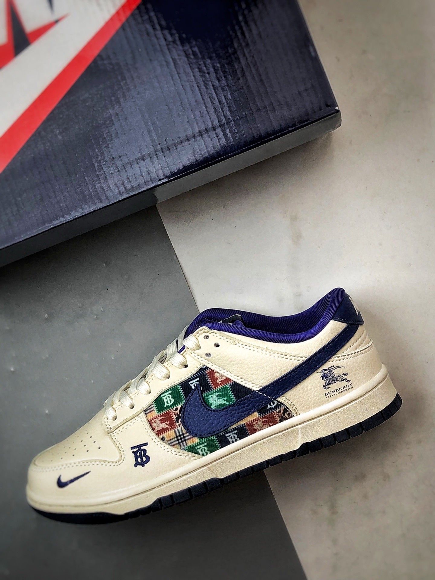Burberry White and Blue Retro Patchwork Low-Top Casual Sports Sneakers