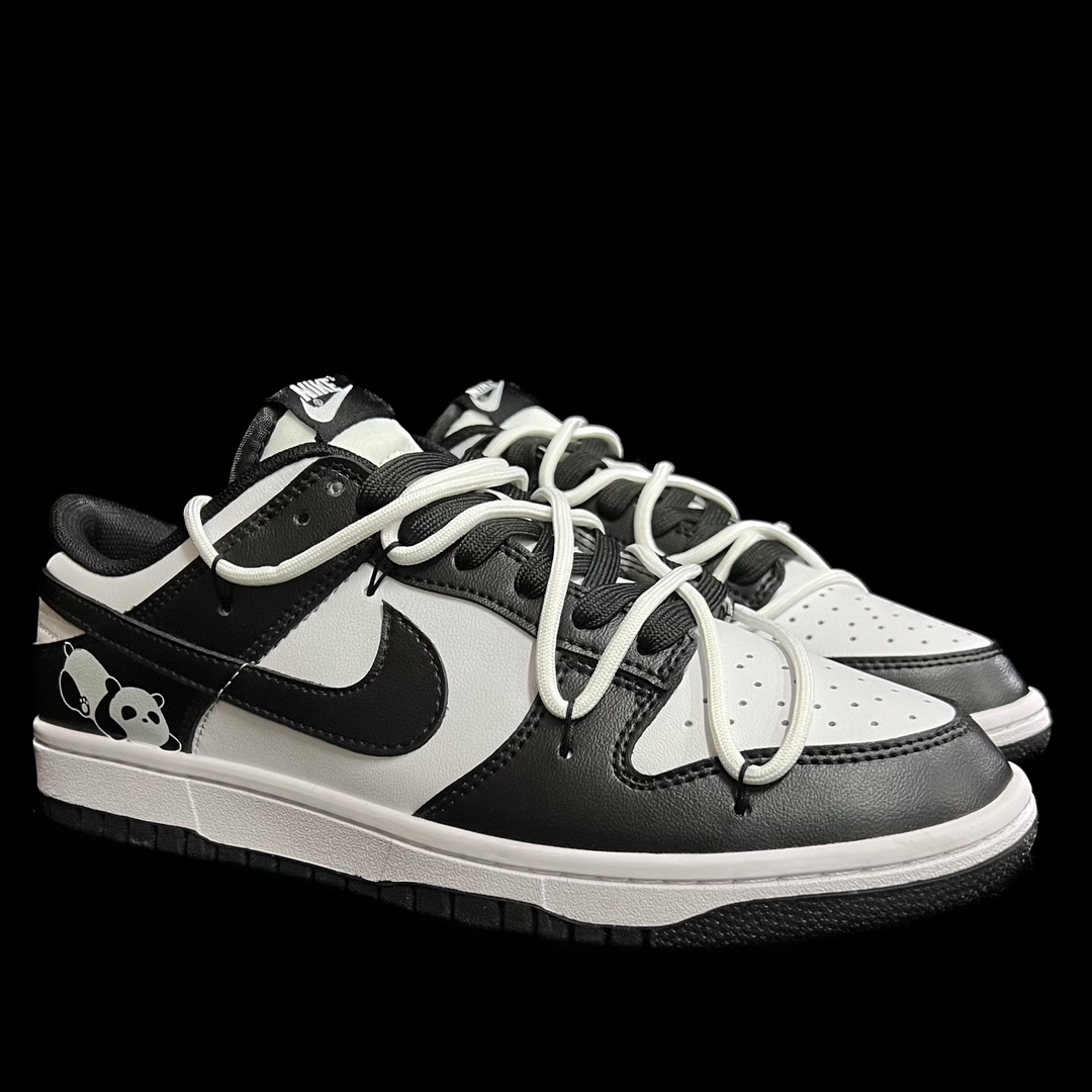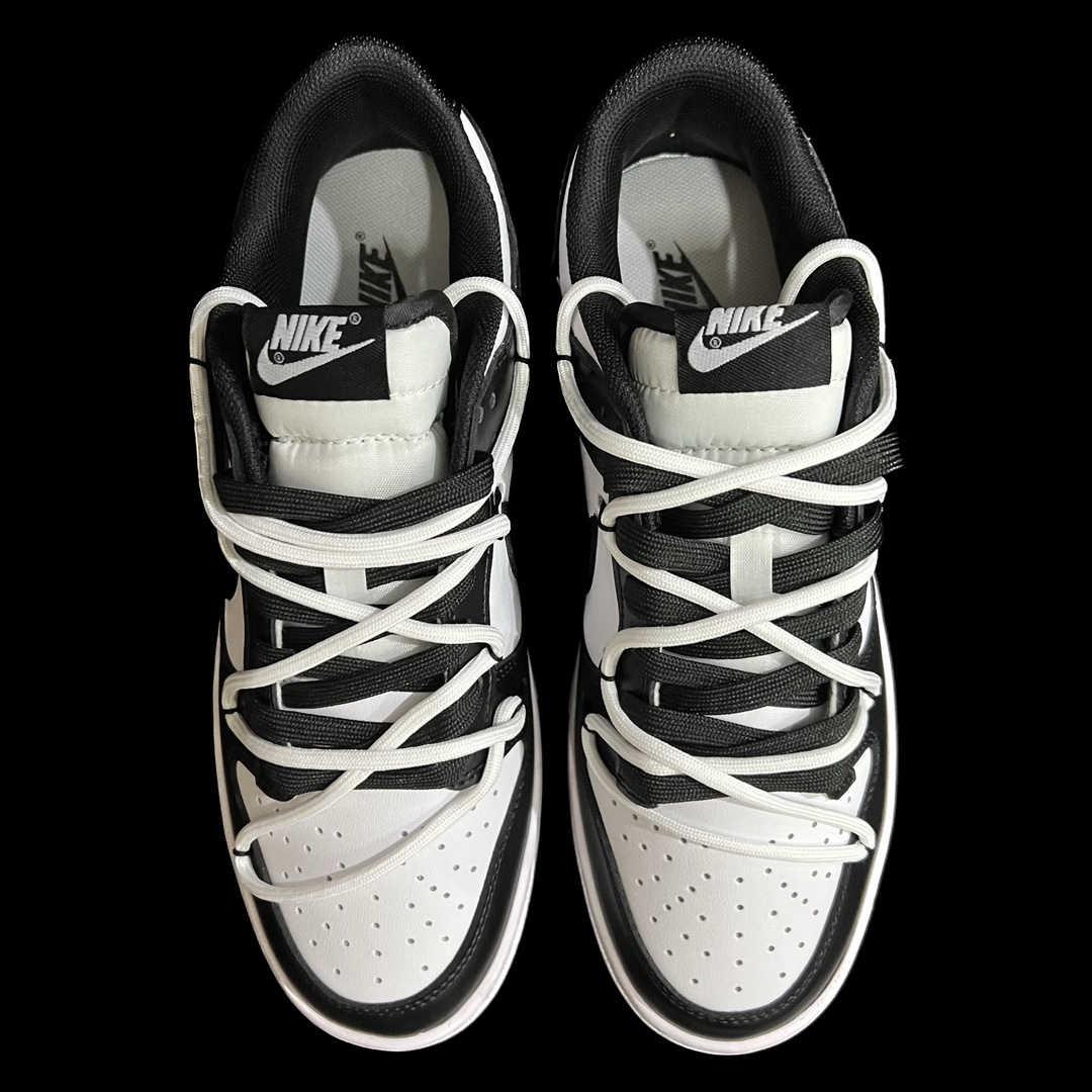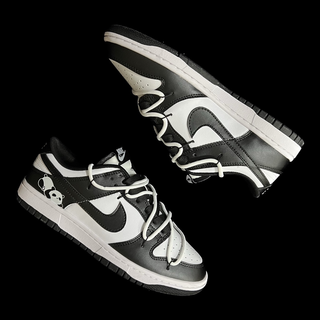 This shoe features an overall black and white color scheme with a panda pattern on the upper, giving it a trendy feel. It is accentuated with dual deconstructed laces, offering rich texture. Suitable for year-round outings, perfect for street wear.