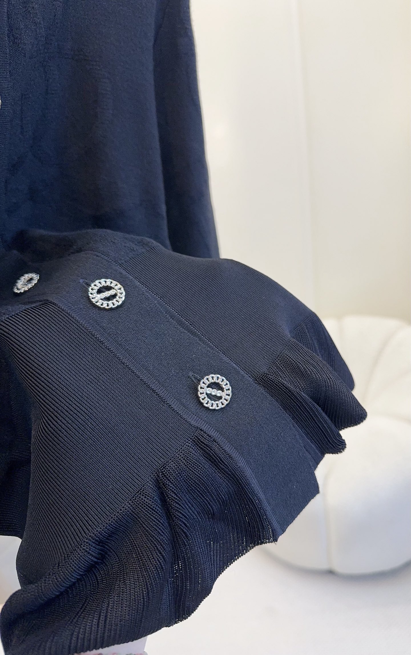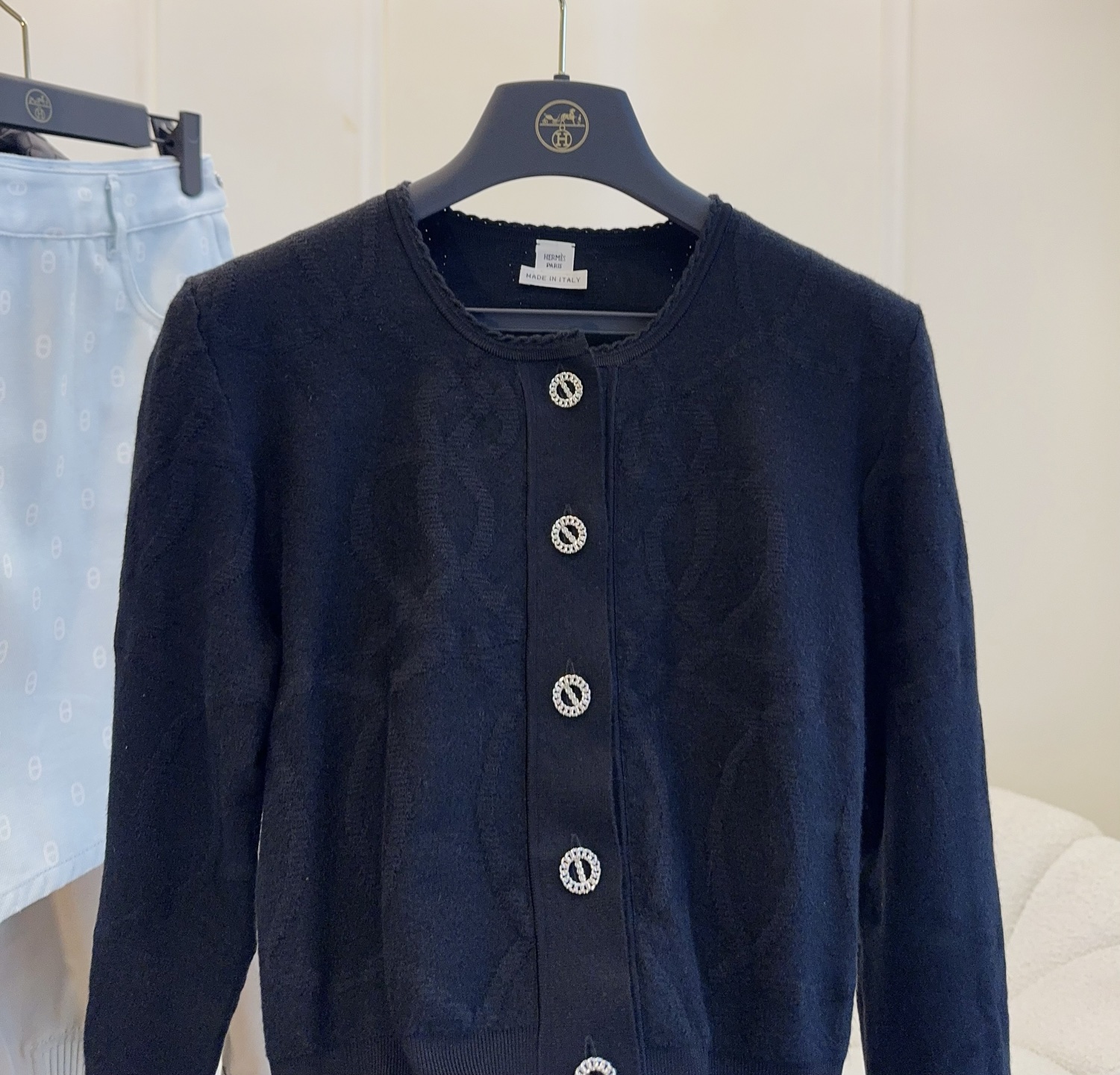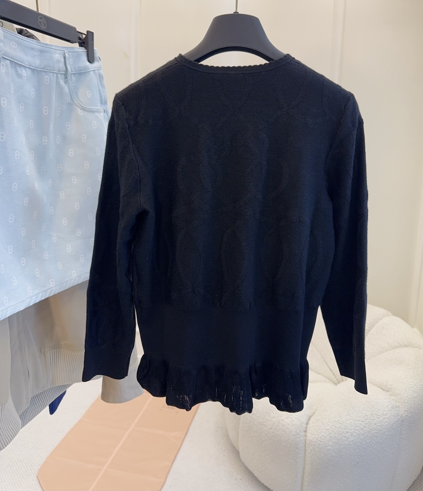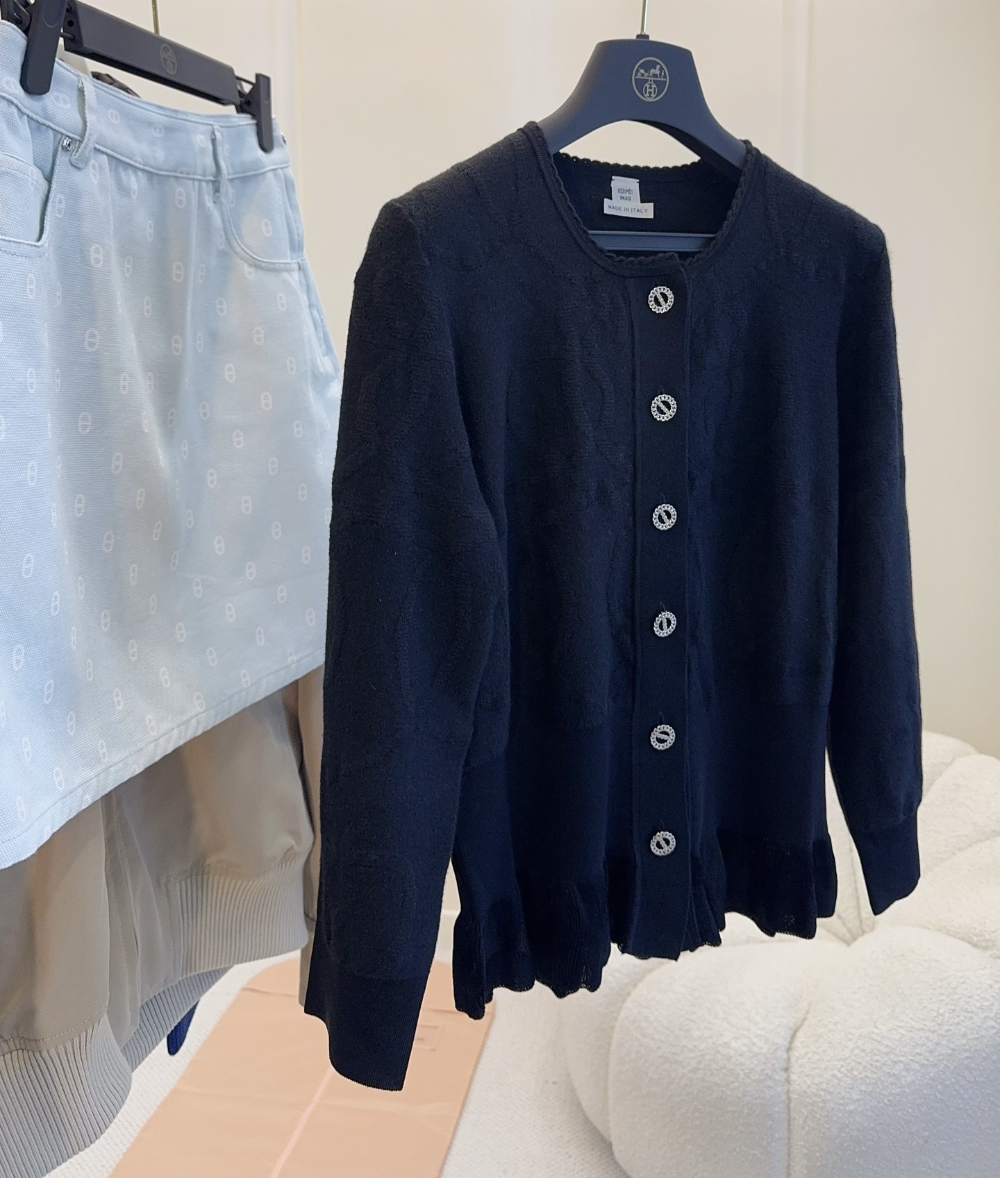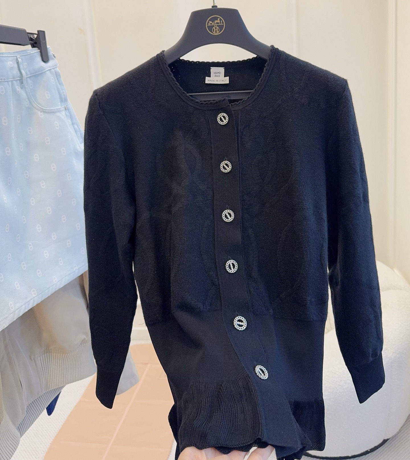 🆕🆕Hermes 2025 early latest style lotus leaf hem knitted cardigan, custom-dyed yarn, black super slimming, 3D jacquard craftsmanship, high-quality texture, fitted hem with lotus leaf edge, both elegant and playful, paired with a pair of jeans for a very classy look!