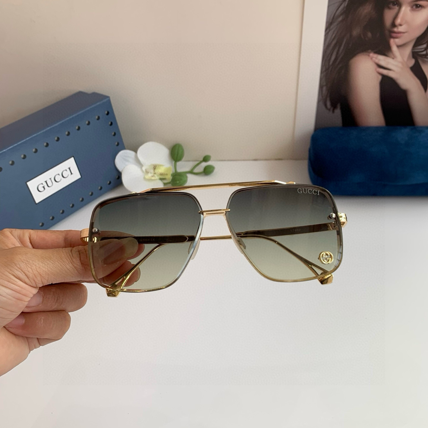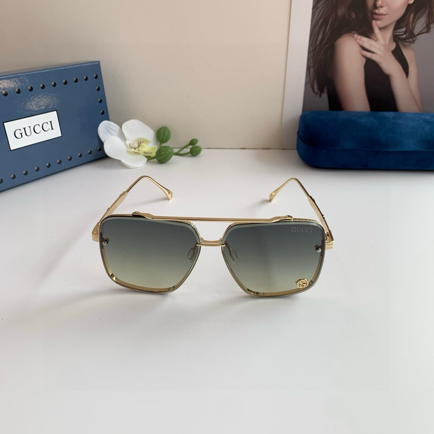 Gucci 2025 high-version new metal double-beam sunglasses unisex square-frame glasses shading UV protection sunglasses