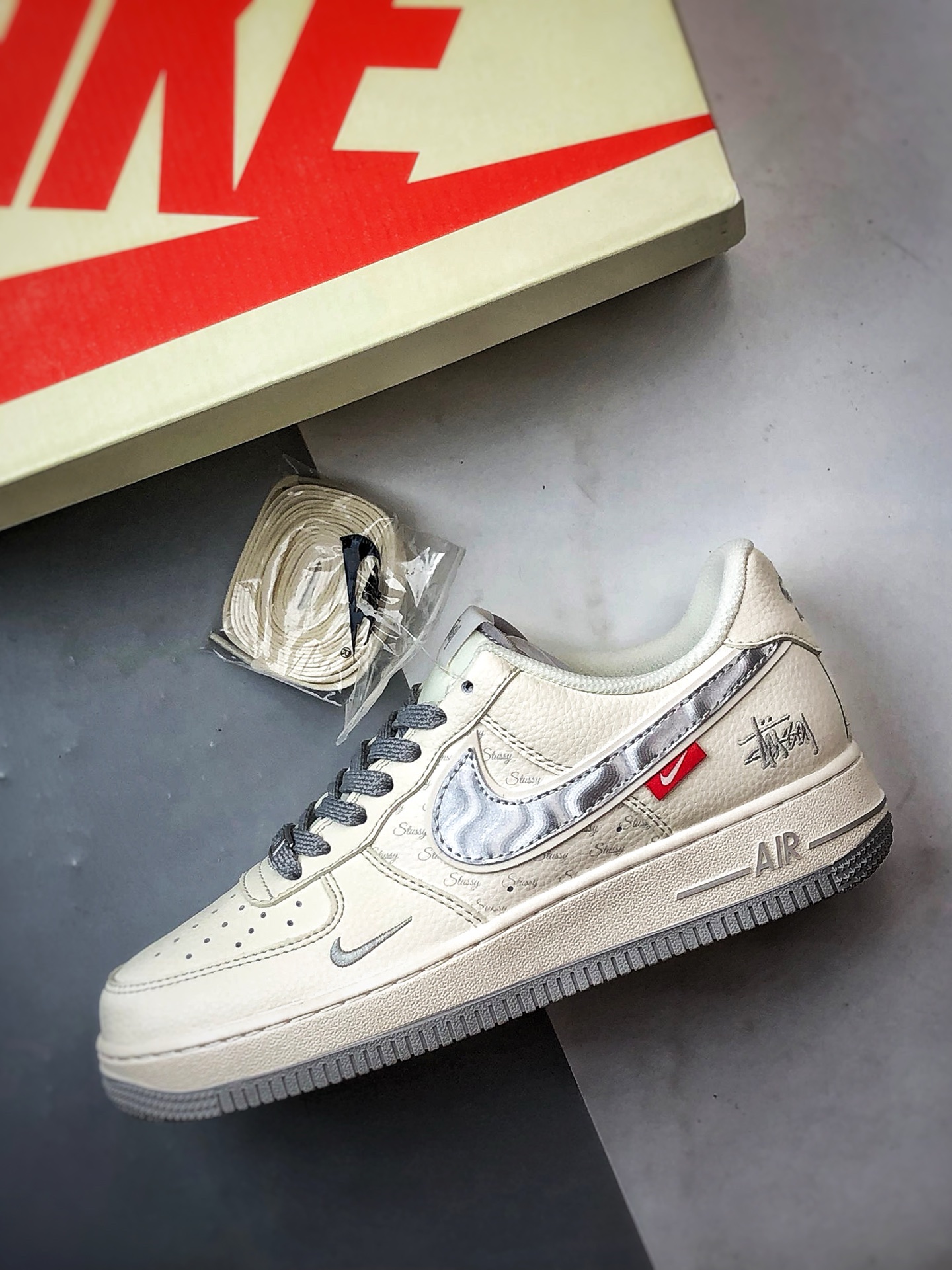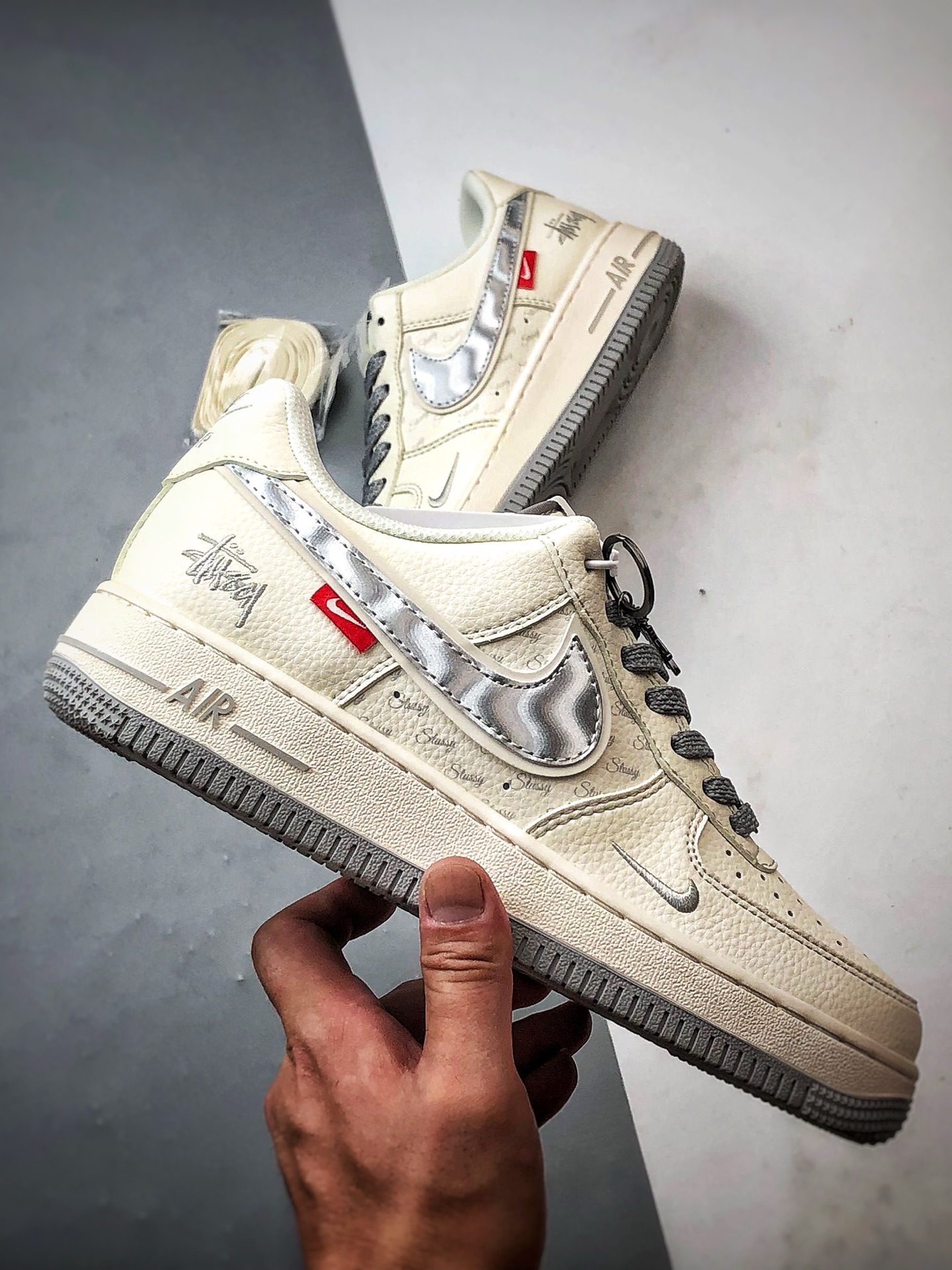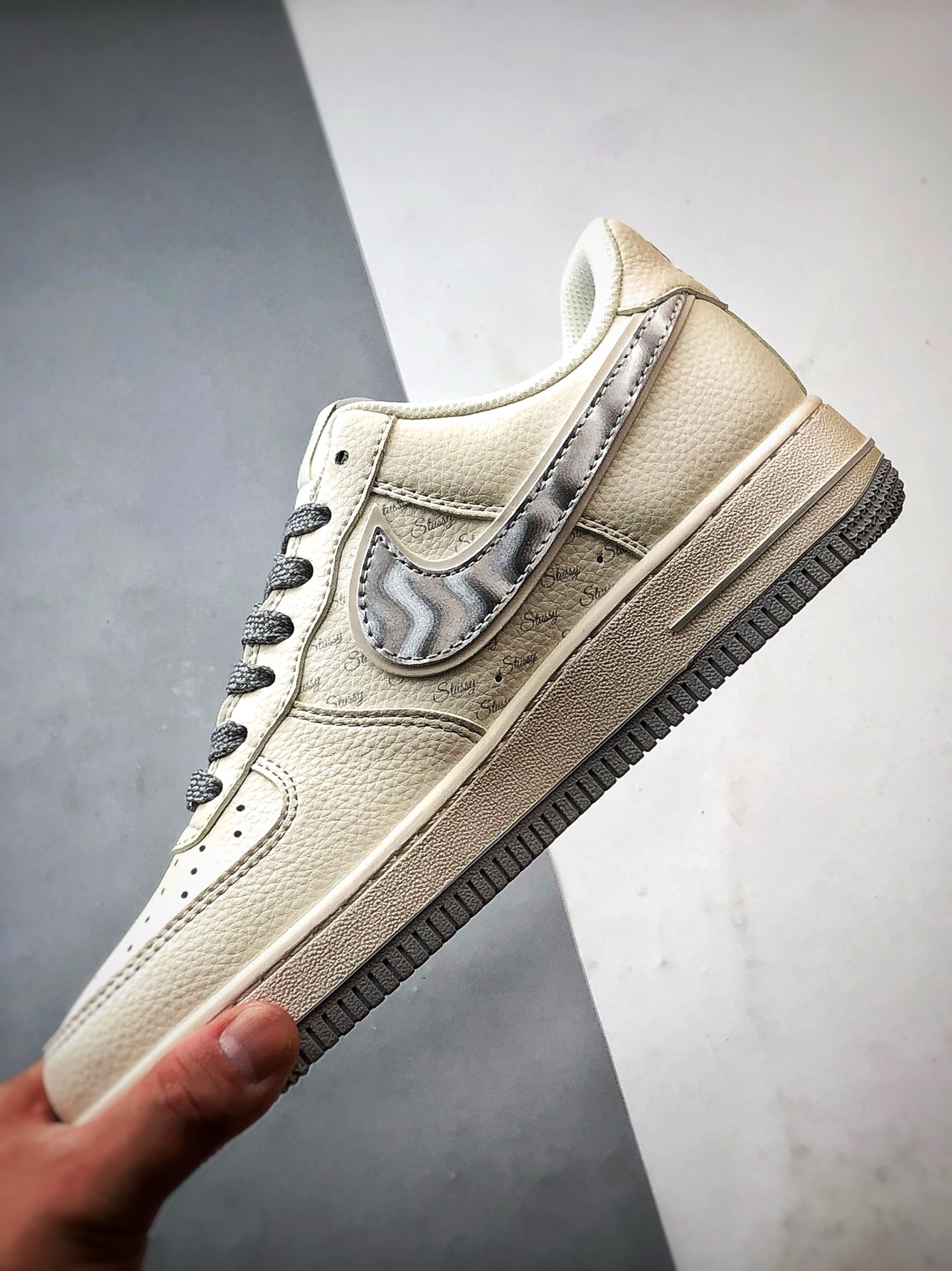 Stussy x Air Force 1 Low White Gray Silver Hook