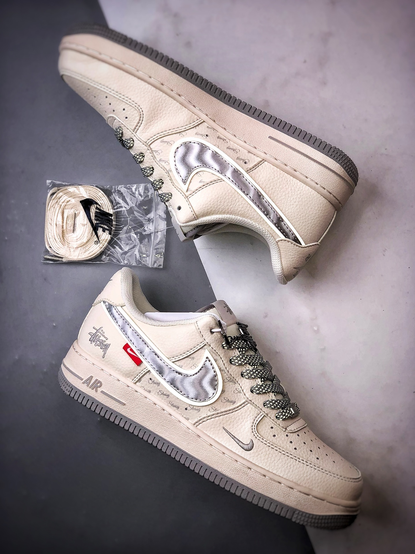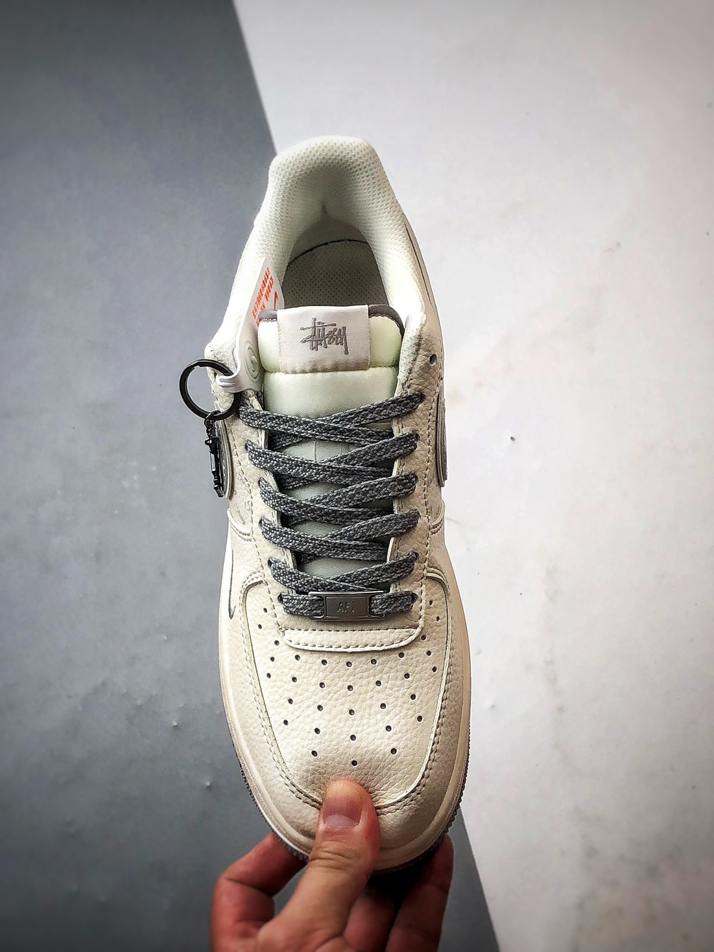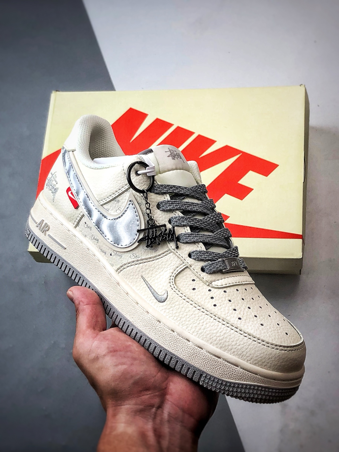 Stussy x Air Force 1 Low White Gray Silver Hook