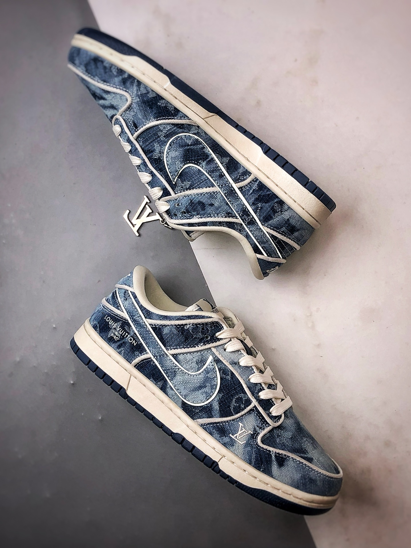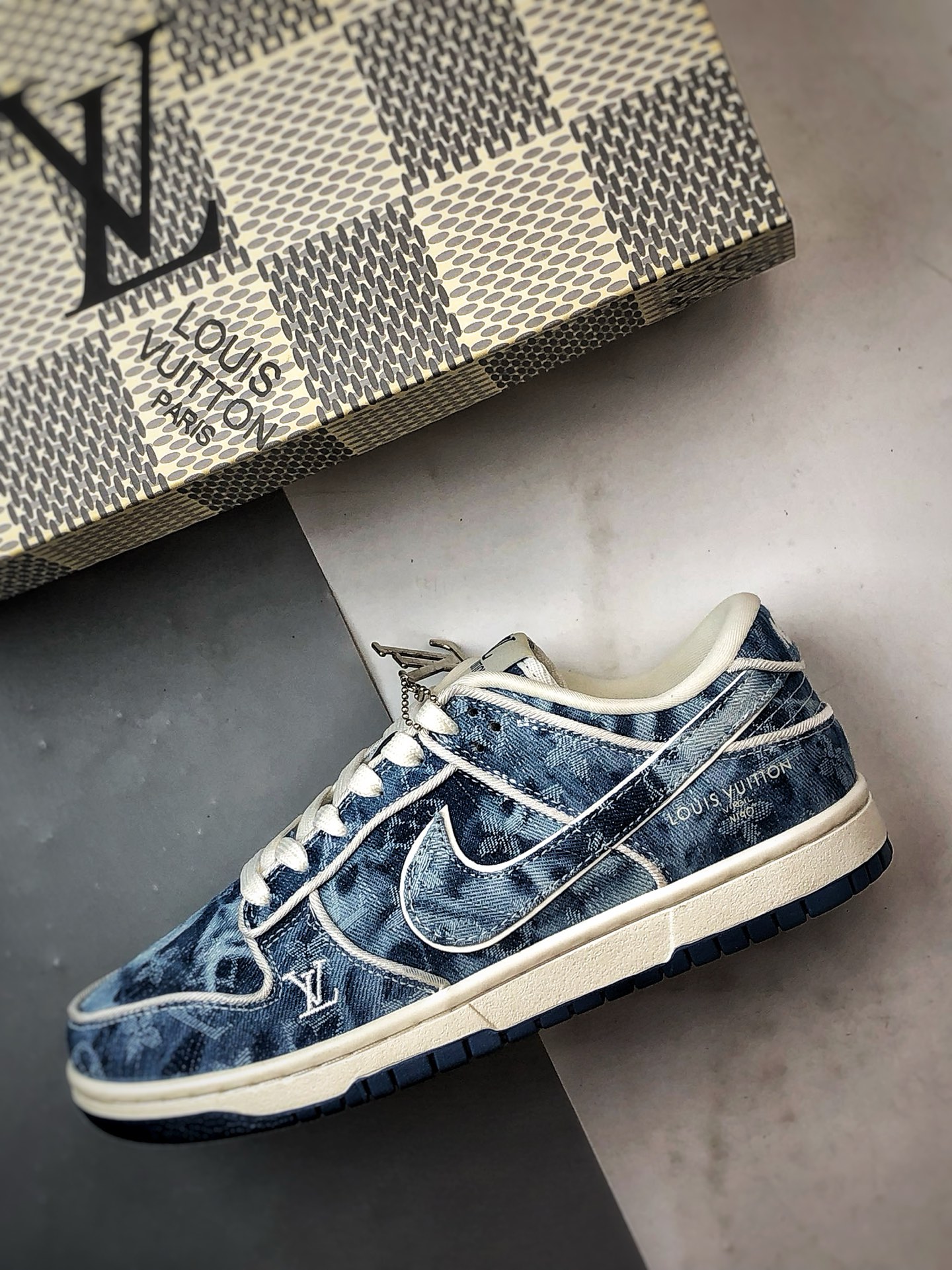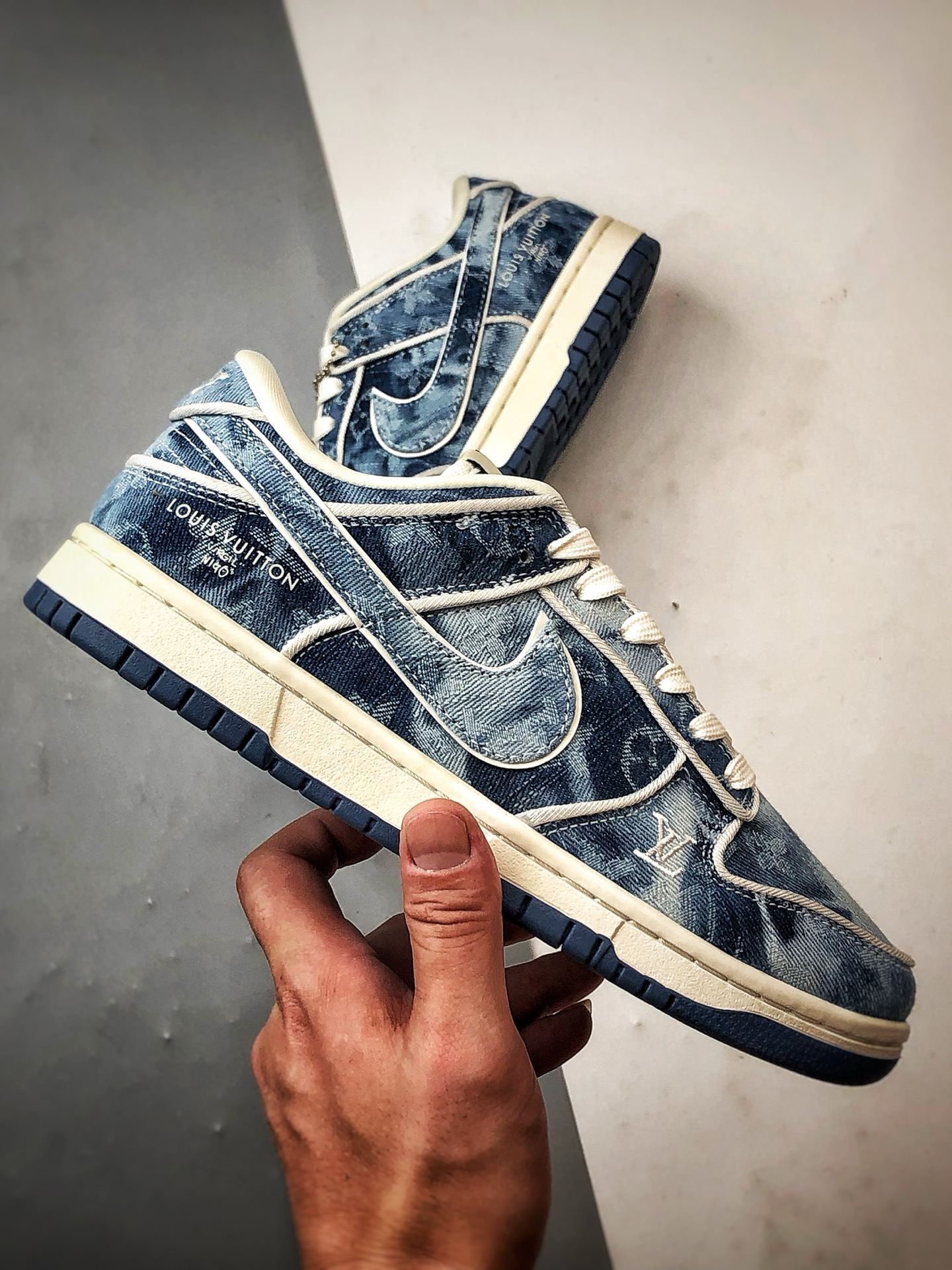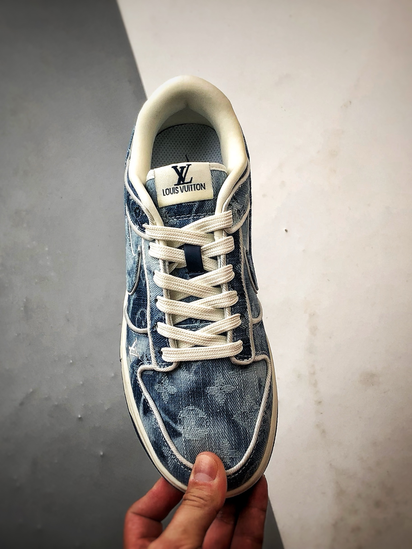 LV Washed Blue Denim Low-Top Casual Sports Sneakers