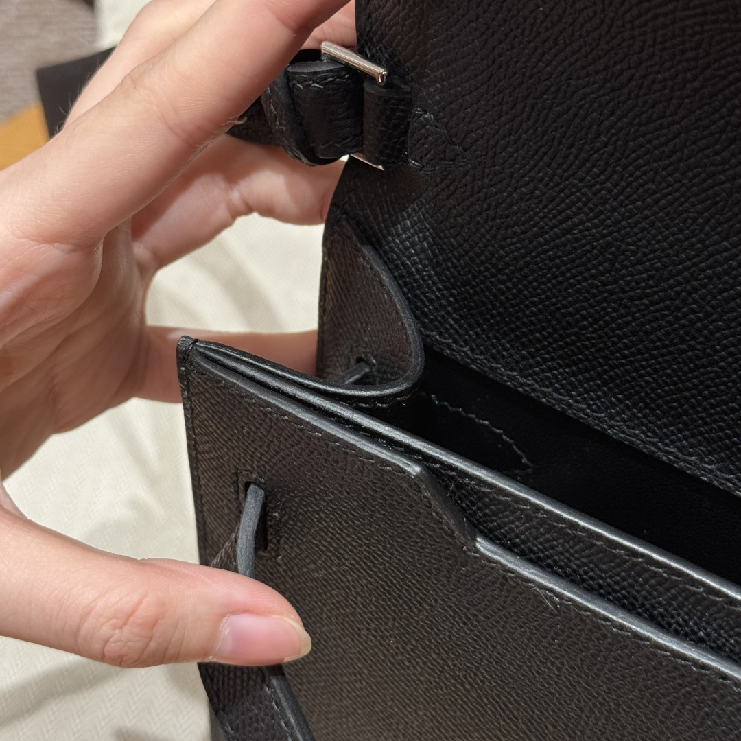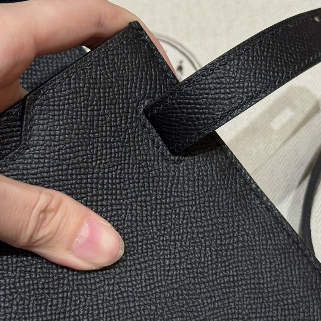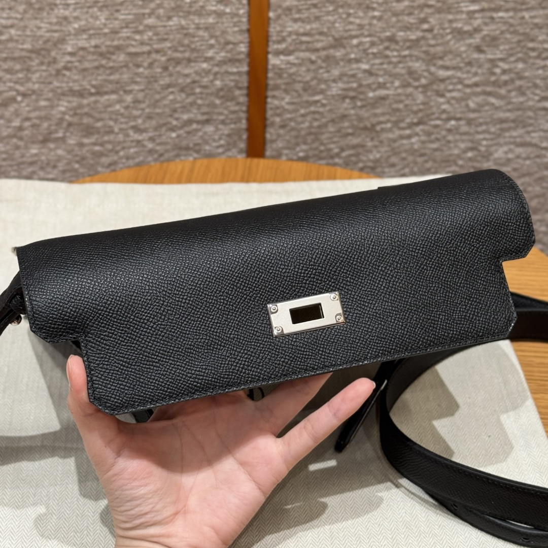 Men's handbag 25cm, black, French imported veal calfskin, silver clasp, high-end fully handcrafted exclusive customization.