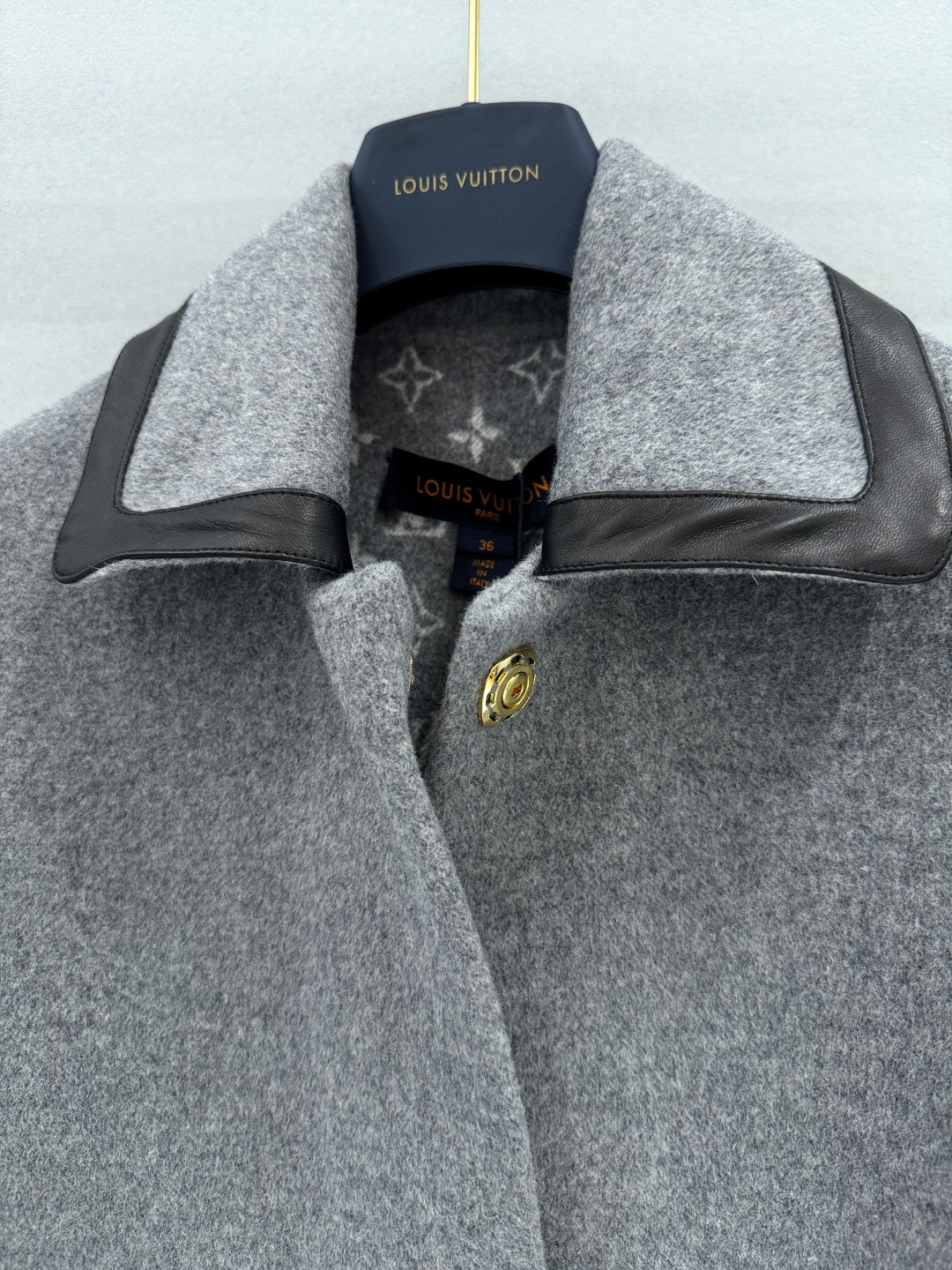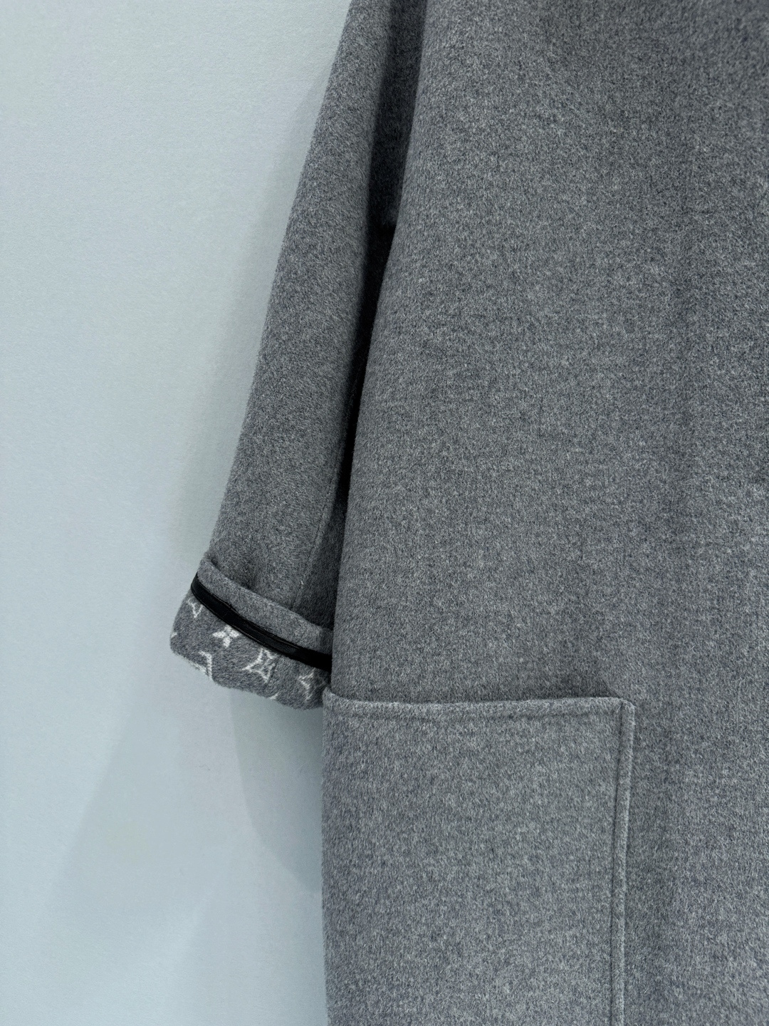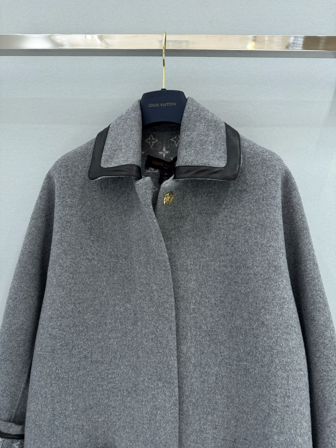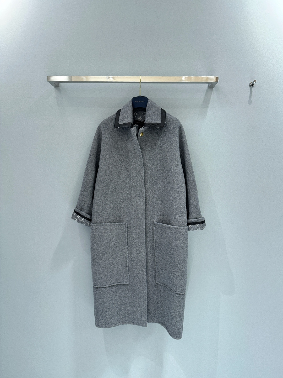 Louis Vuitton 25FW Autumn Winter New Style Patchwork Leather Lapel Double-Faced Wool Coat | Exclusive YB Development! High Version Production! This coat is tailored from a blend of cashmere and wool into a relaxed straight silhouette, featuring a covered snap front placket and large patch pockets. The classic Monogram pattern is hidden on the inside. In more formal occasions, the lazy wool coat brings a visually overflowing atmosphere. Sizes: S M L