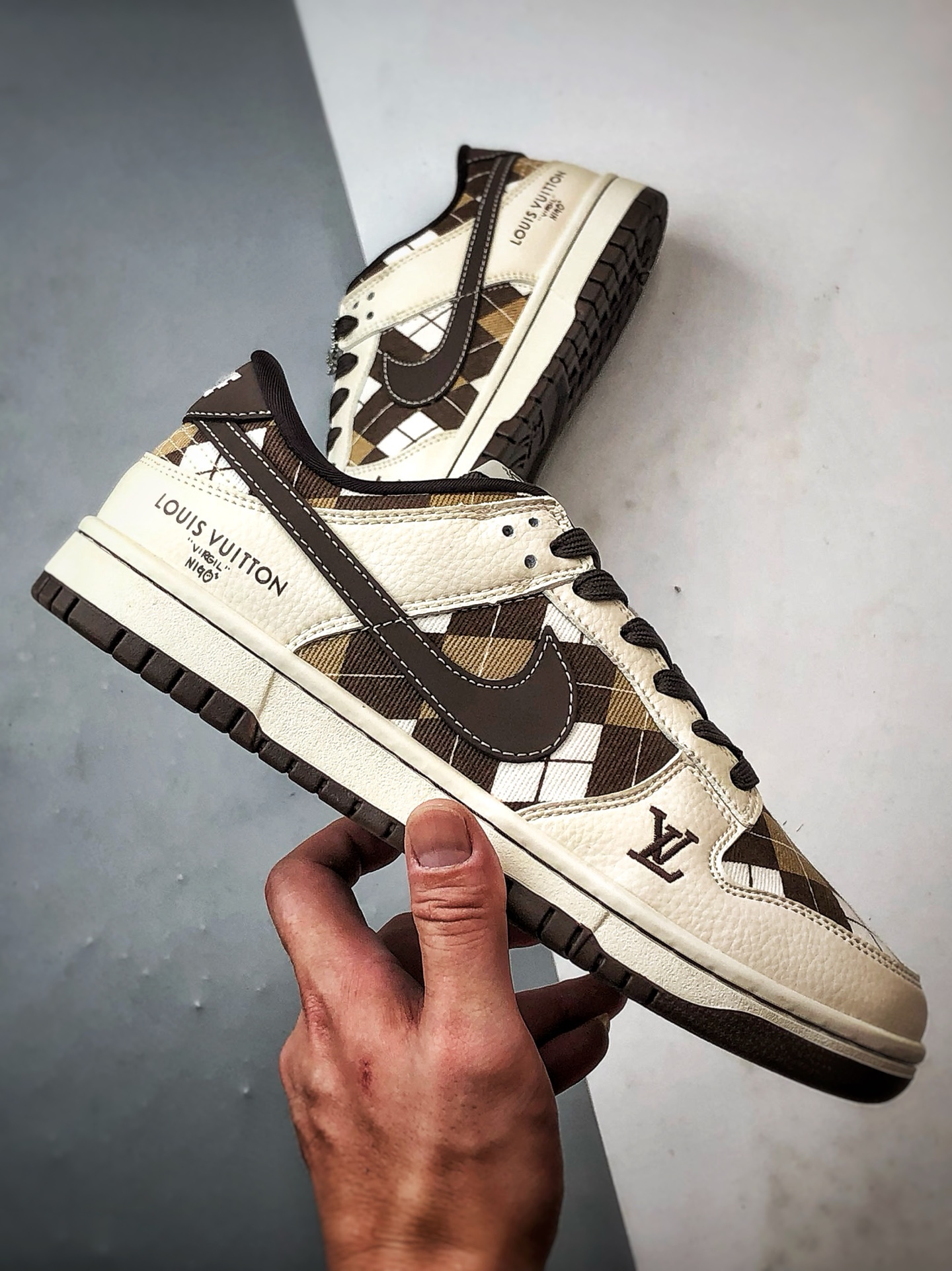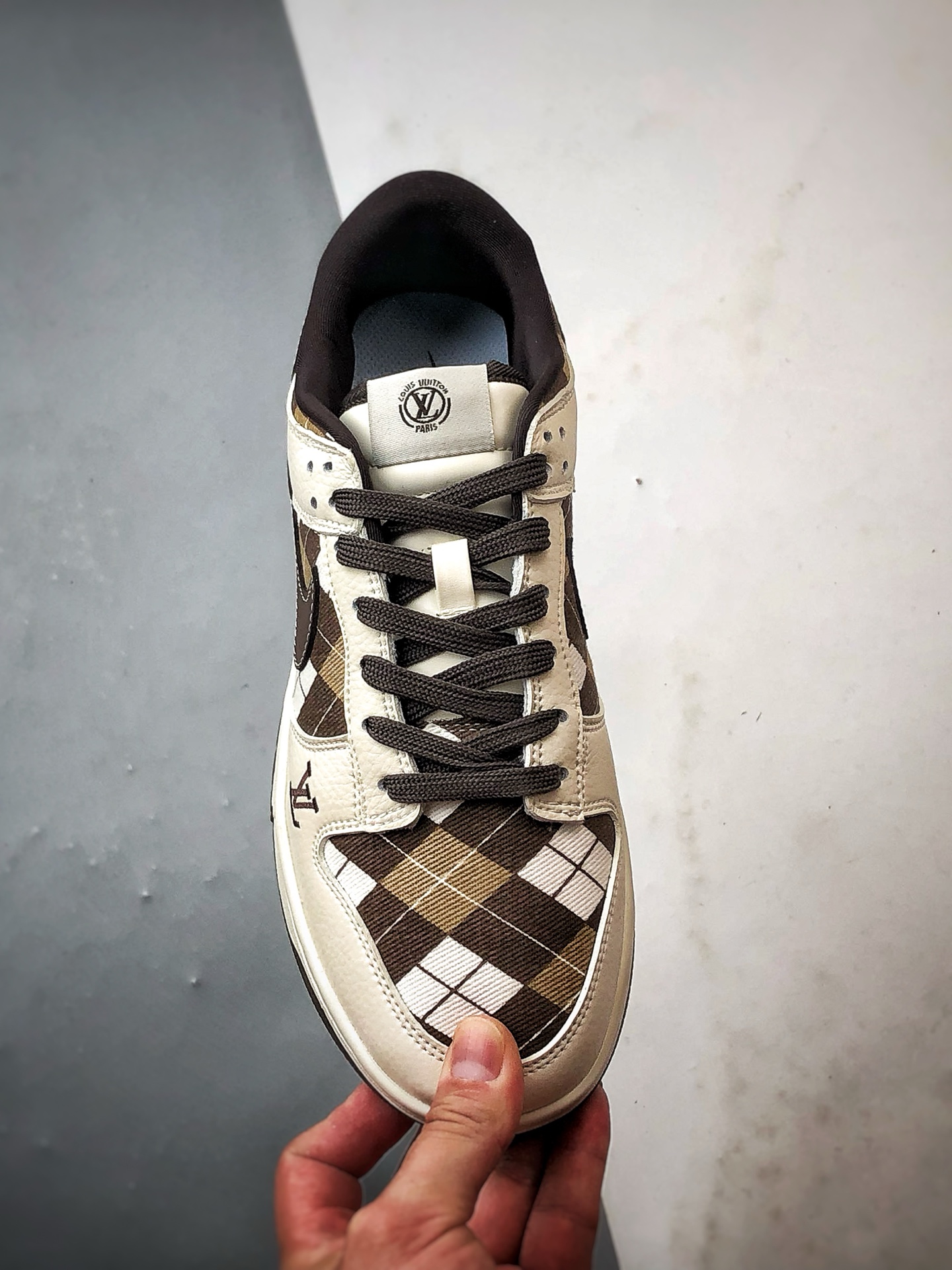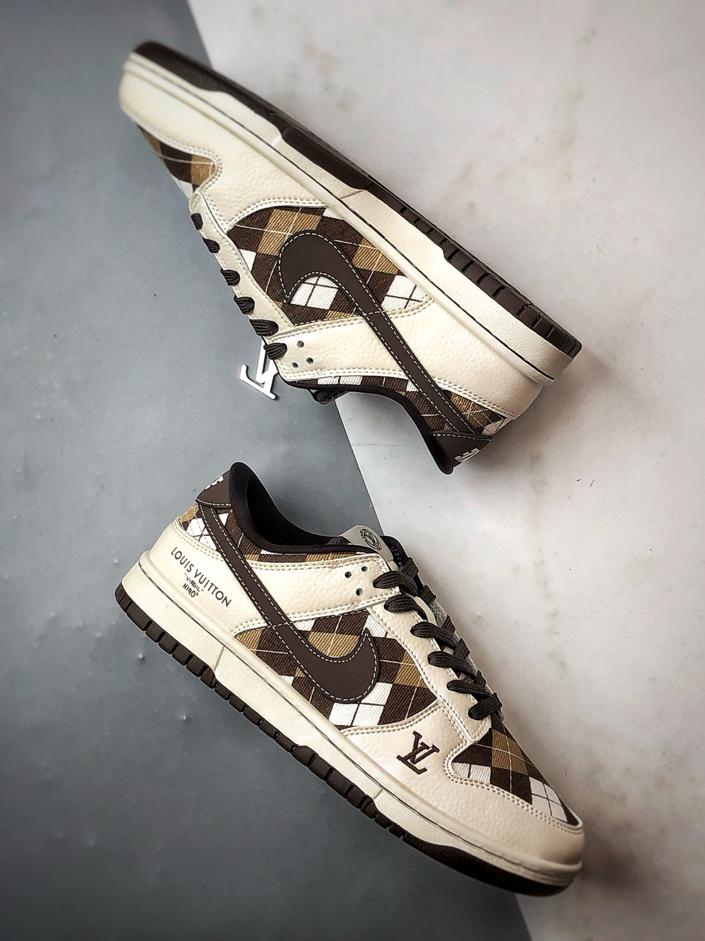LV Beige Brown Checkerboard Low-Top Casual Sports Sneakers
