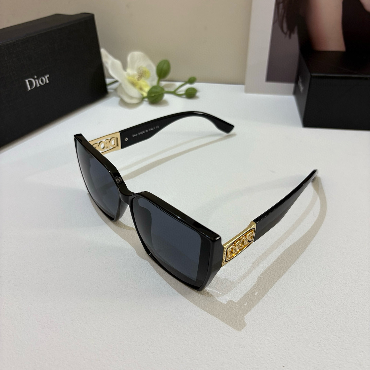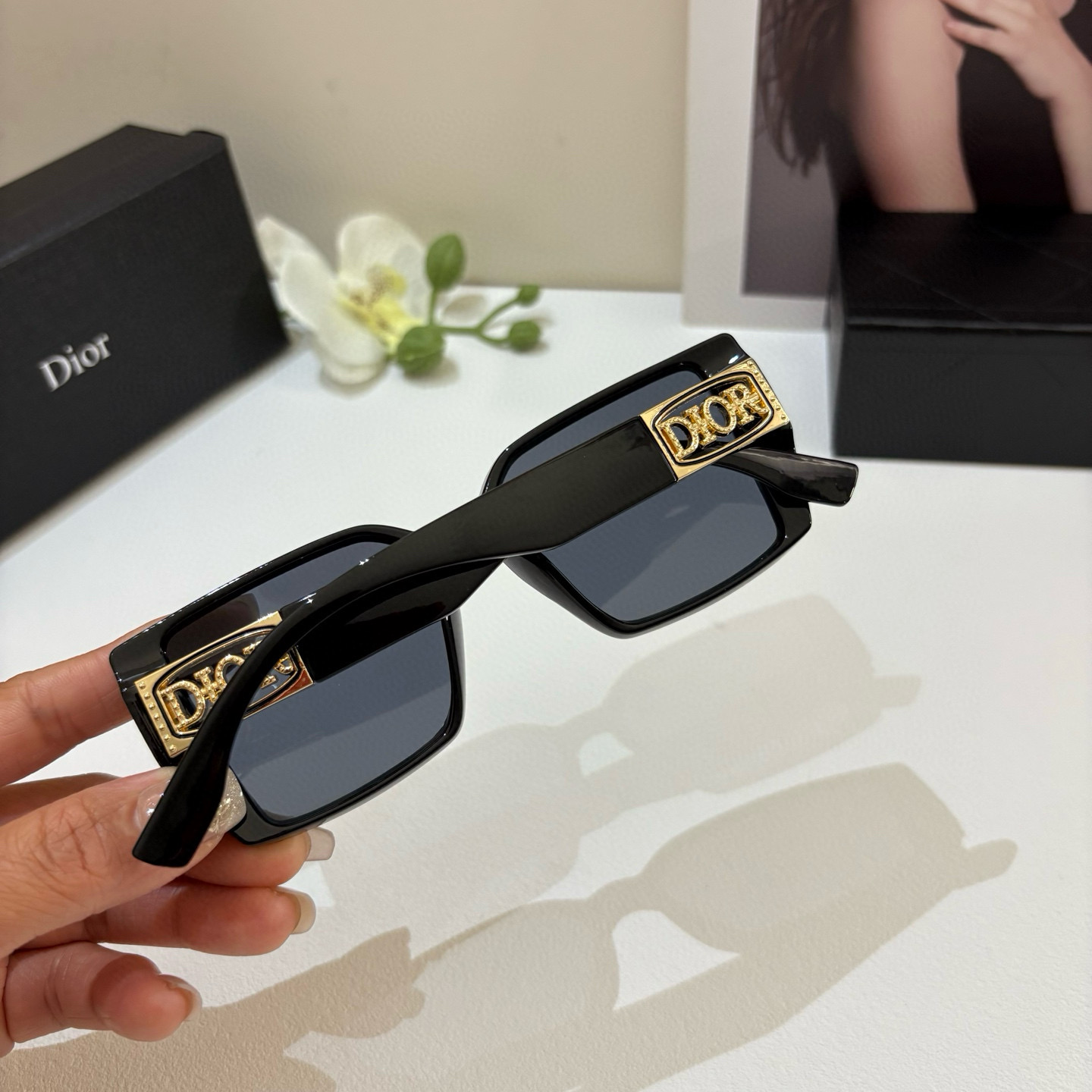 Dior's new square frame sunglasses, same style as seen on Xiaohongshu and Douyin, unisex sunglasses, Instagram style, popular fashion sunglasses.