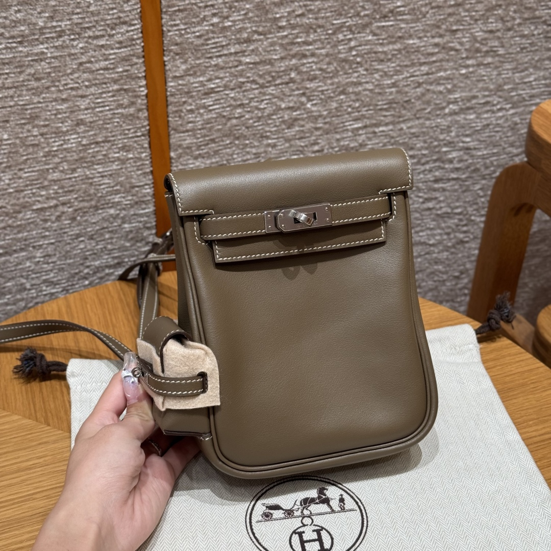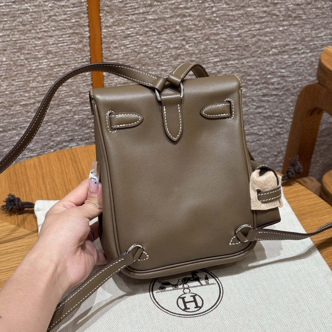 New Kelly backpack 18cm, elephant gray, plain grain leather, imported original French cowhide, silver clasp, high-end fully handcrafted exclusive custom.