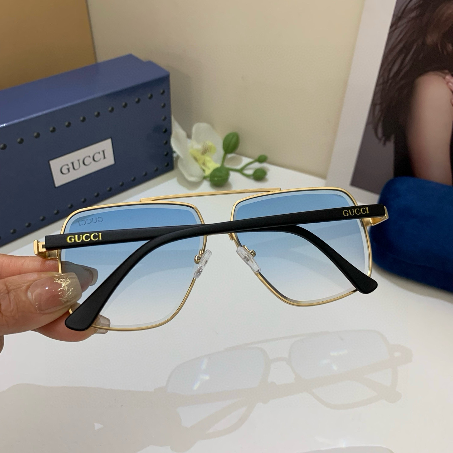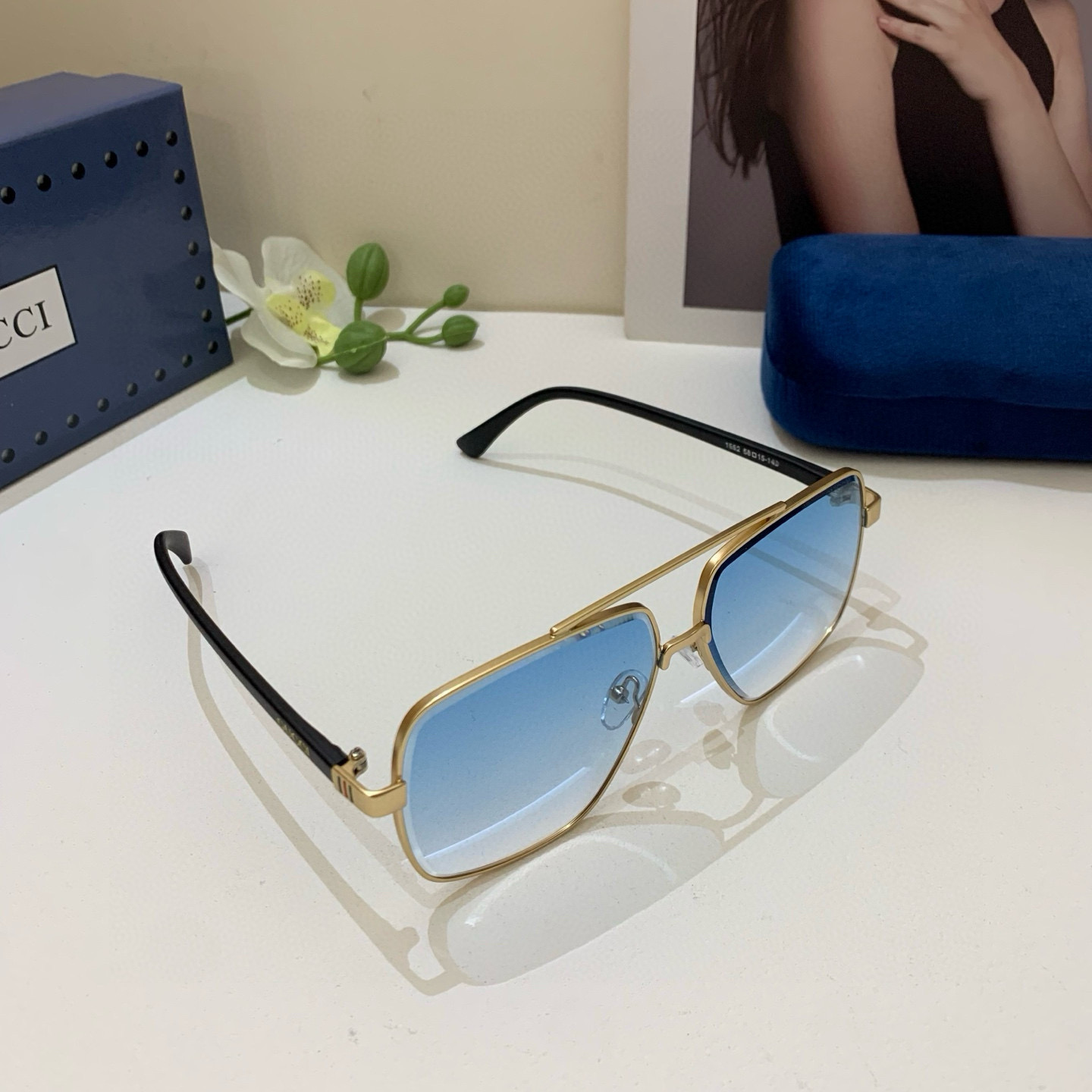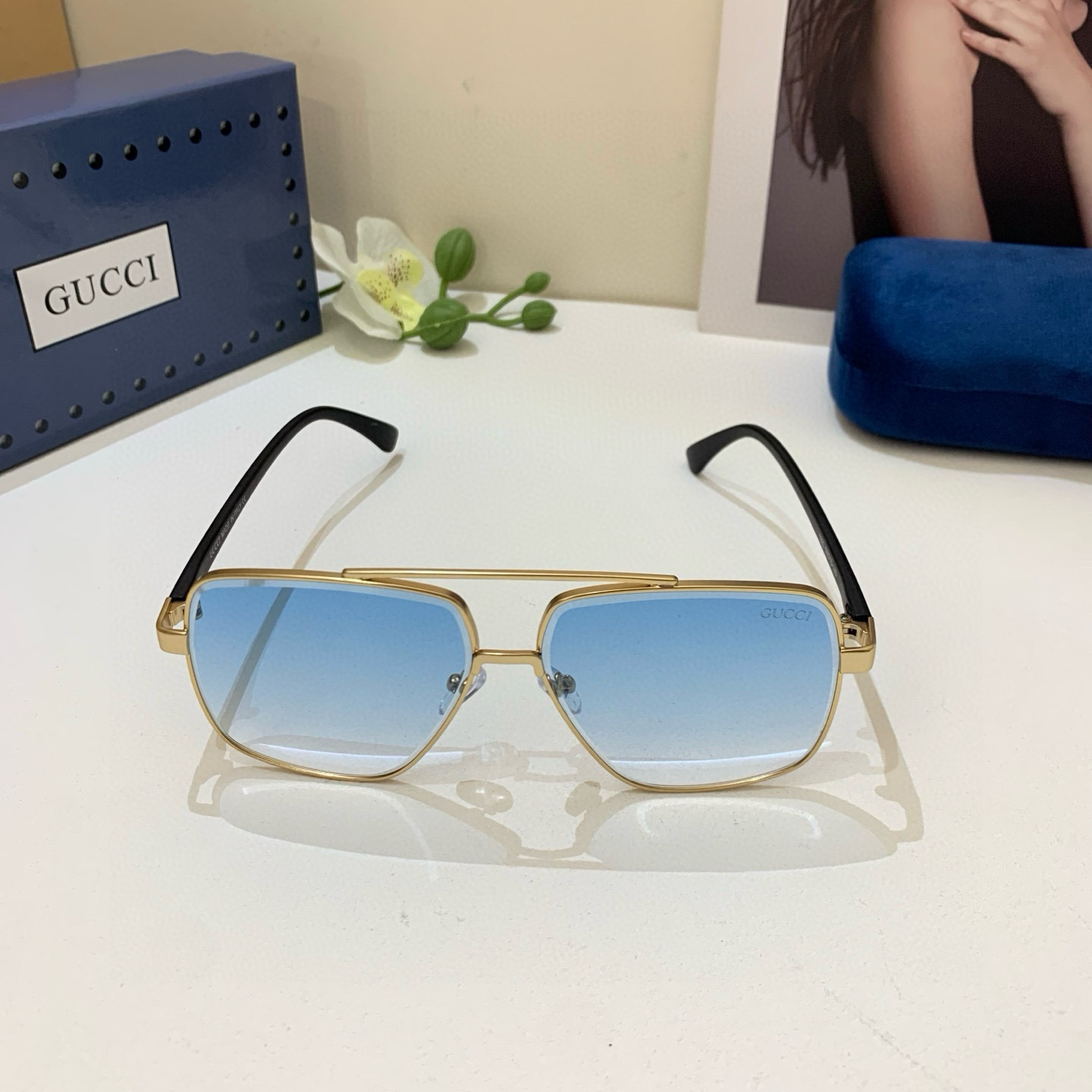 Gucci new square frame fashion sunglasses European and American street style网红 versatile sunglasses must-have travel sunglasses