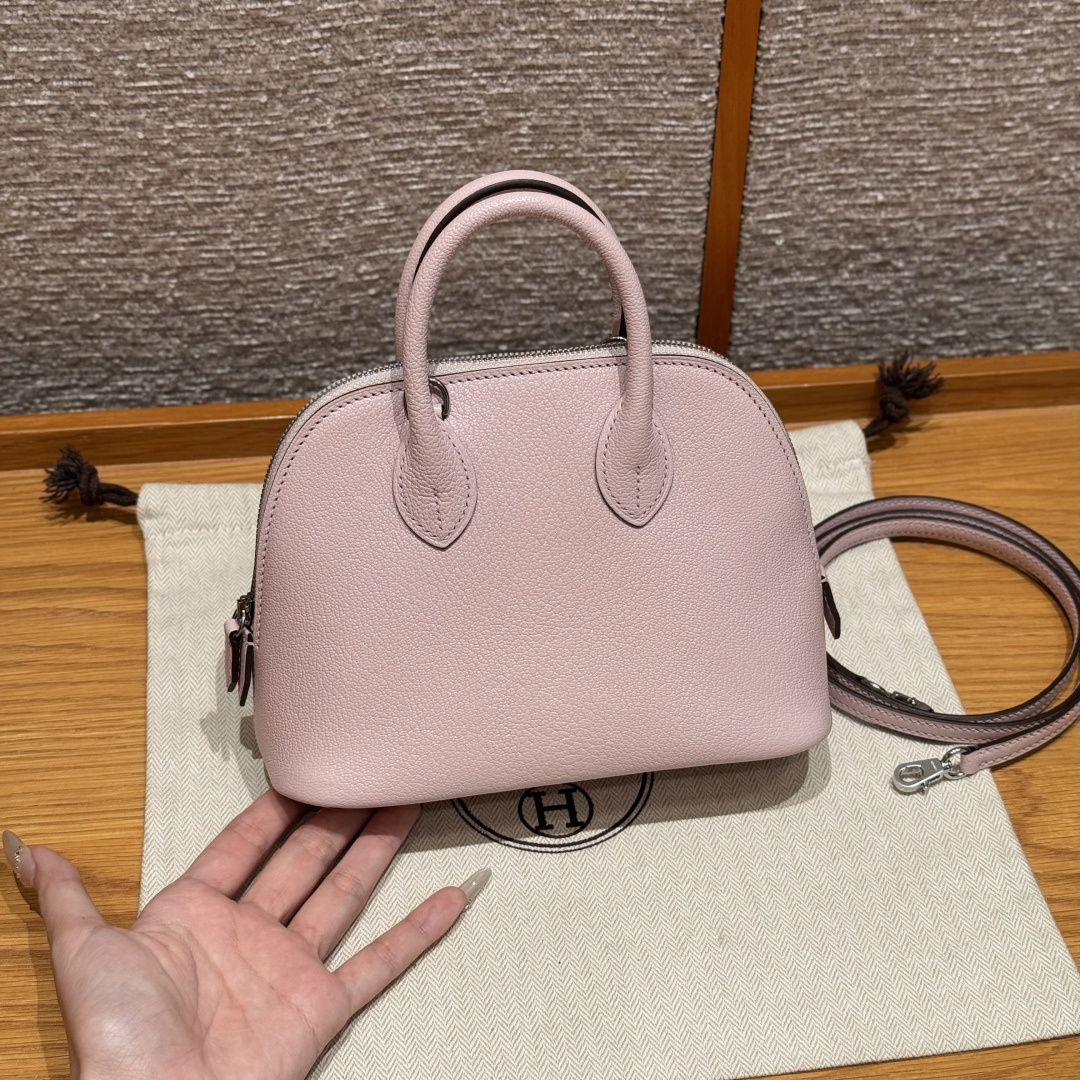 Mini Bolide, Love Pink, French imported goat leather, silver clasp, high-end fully handcrafted exclusive customization.