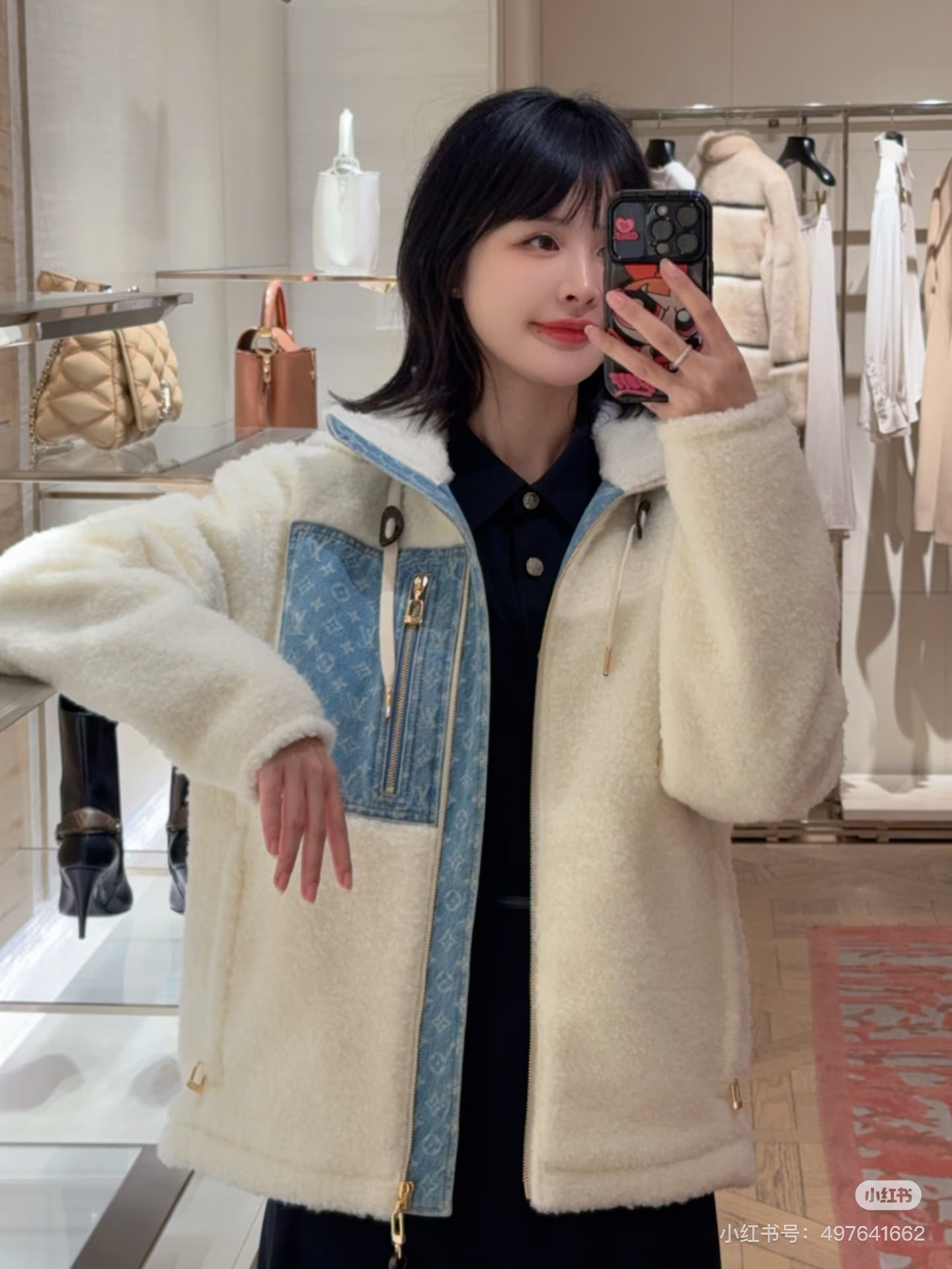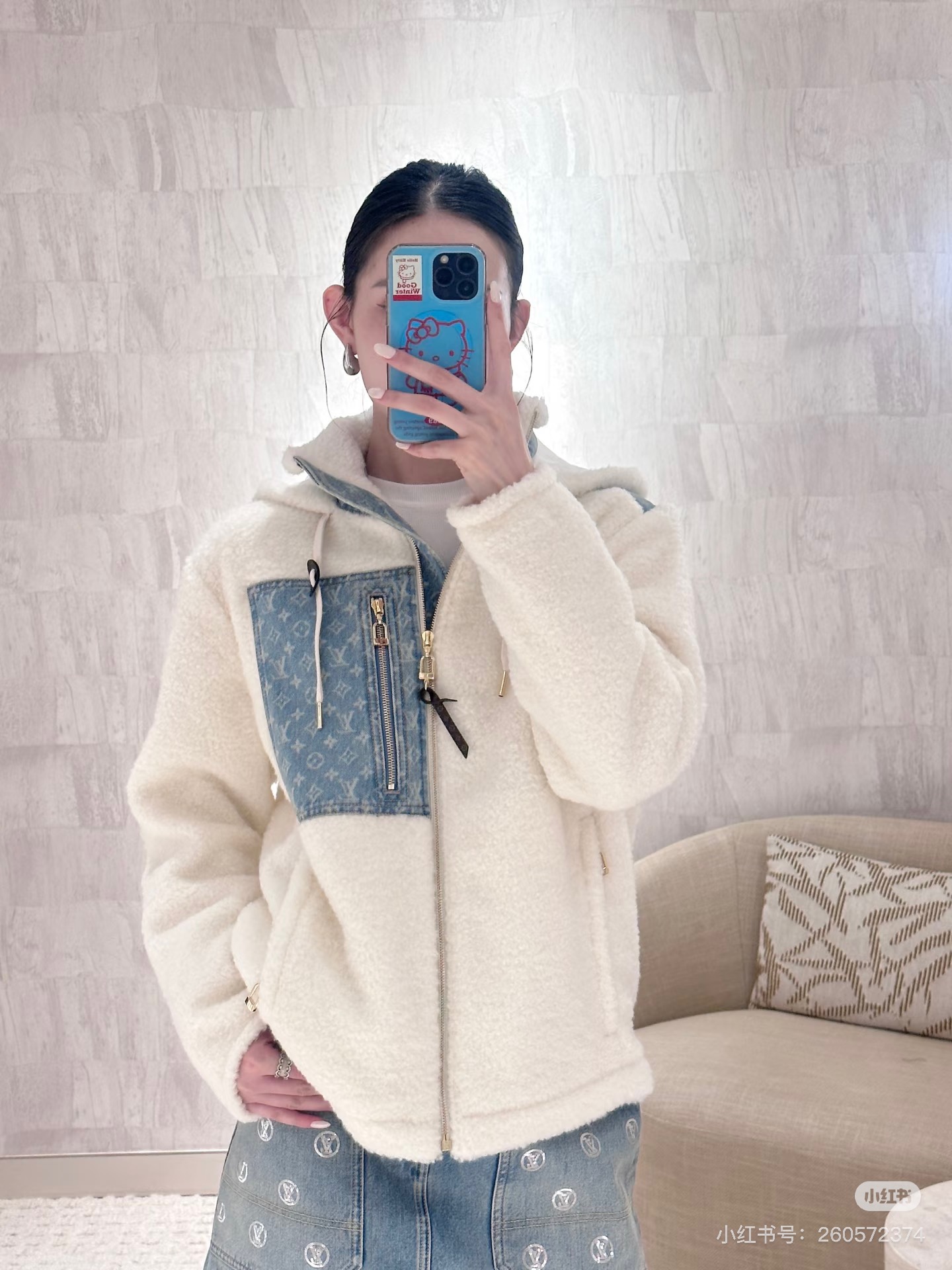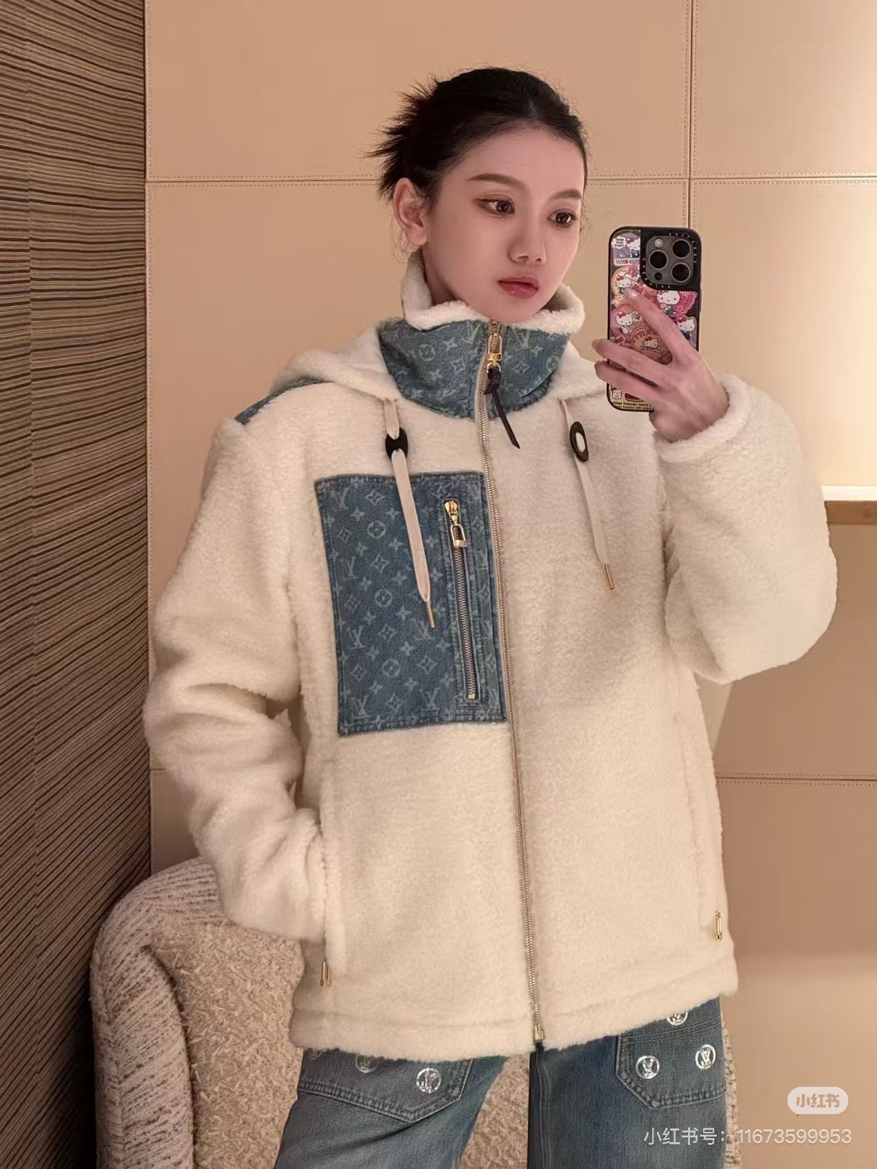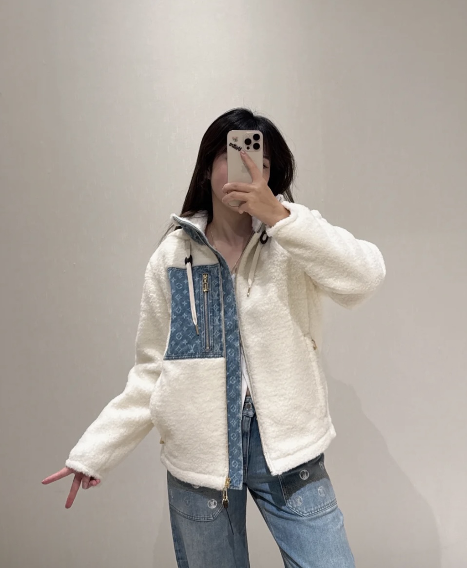 Latest lamb wool jacket blue and white color scheme is too beautiful