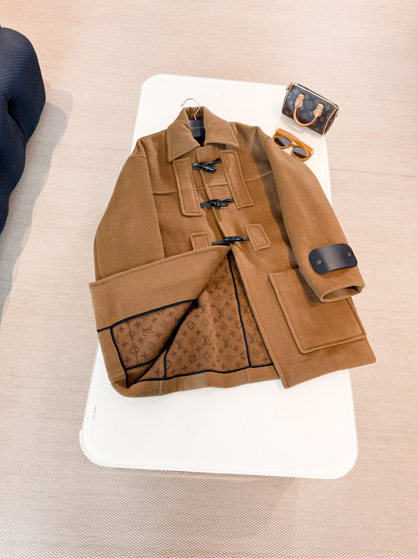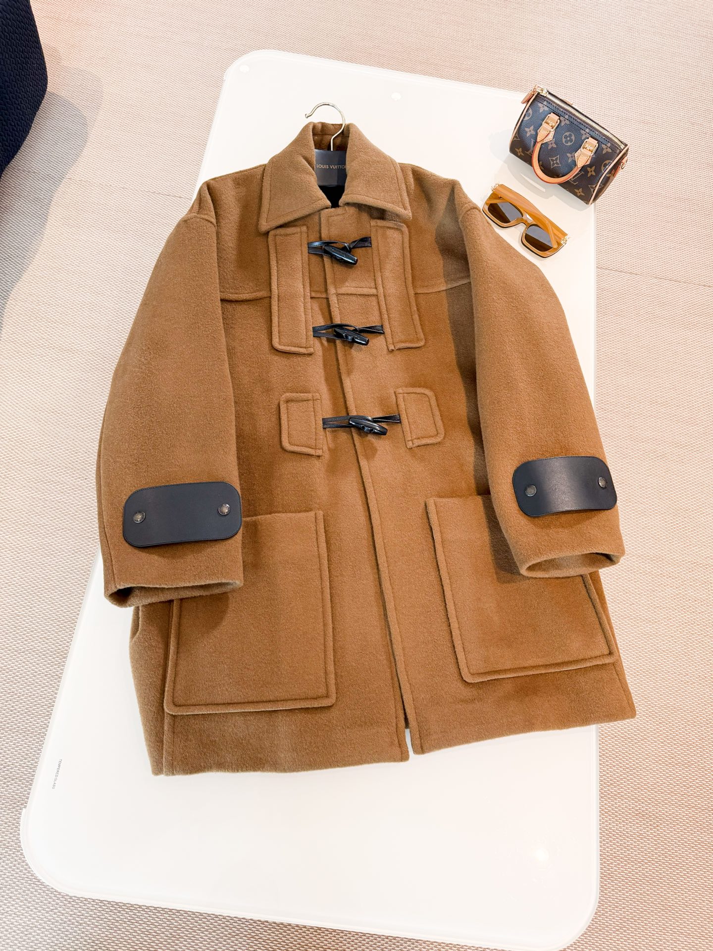 This tweed coat is elegantly crafted from double-sided cashmere. Large patch pockets emphasize the square and oversized cut, while the toggle closure recalls classic styles. The details add a unique brand touch.