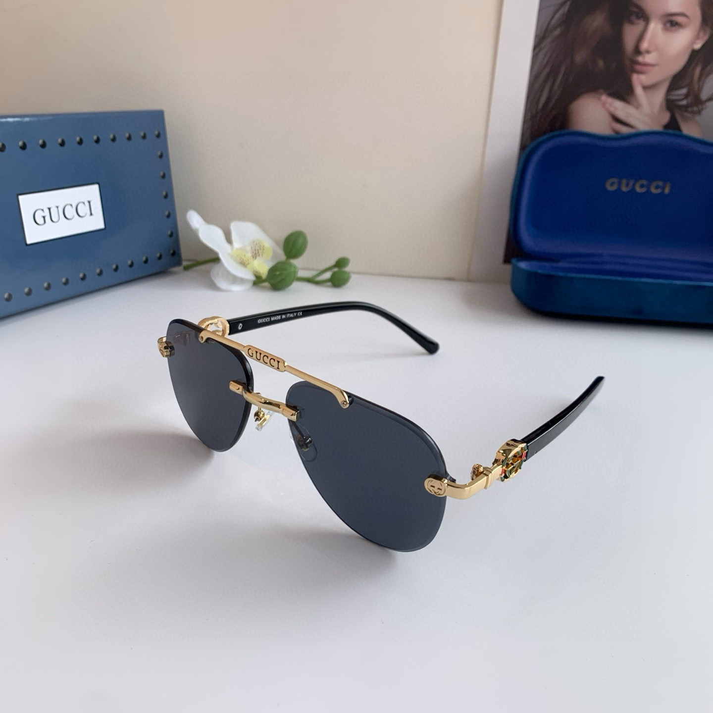 Gucci 2025 high-end metal unisex sunglasses aviator frame sunglasses shading UV protection sunglasses