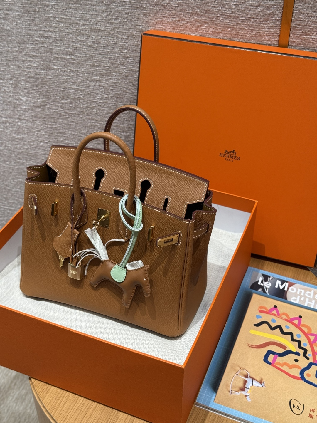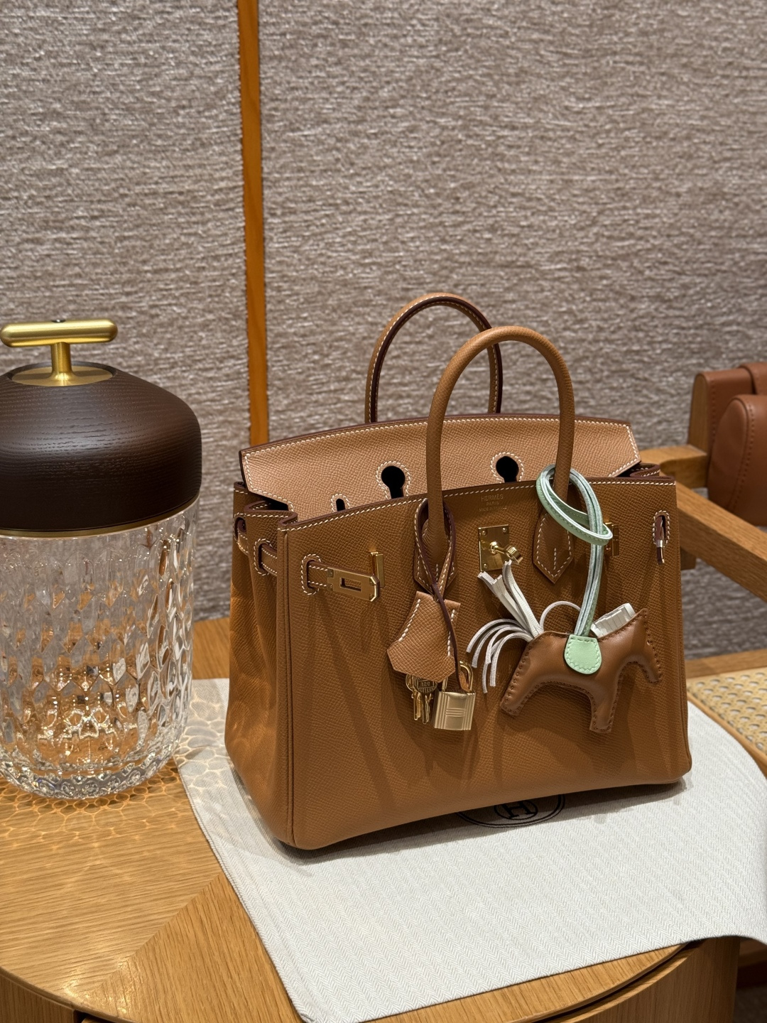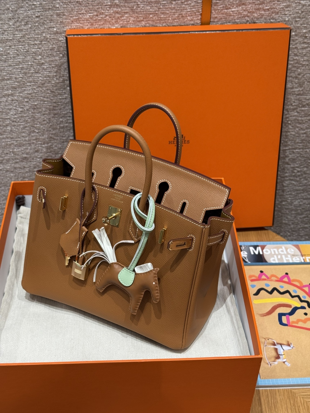 Birkin 25, Golden Brown, Palm-grained leather interior stitching, French imported original cowhide, gold clasp, premium fully handmade exclusive customization.