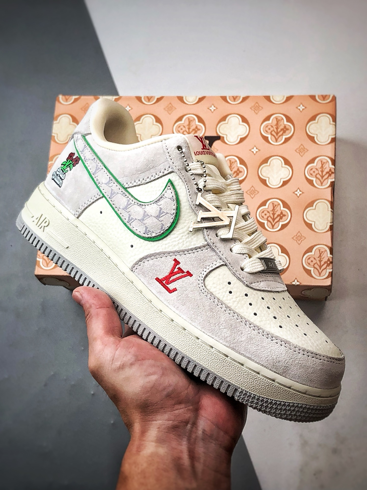 LV x Air Force 1 Low Beige Gray Suede Combination