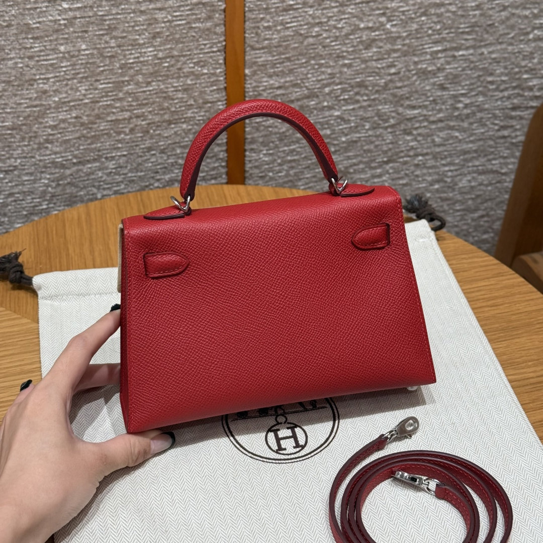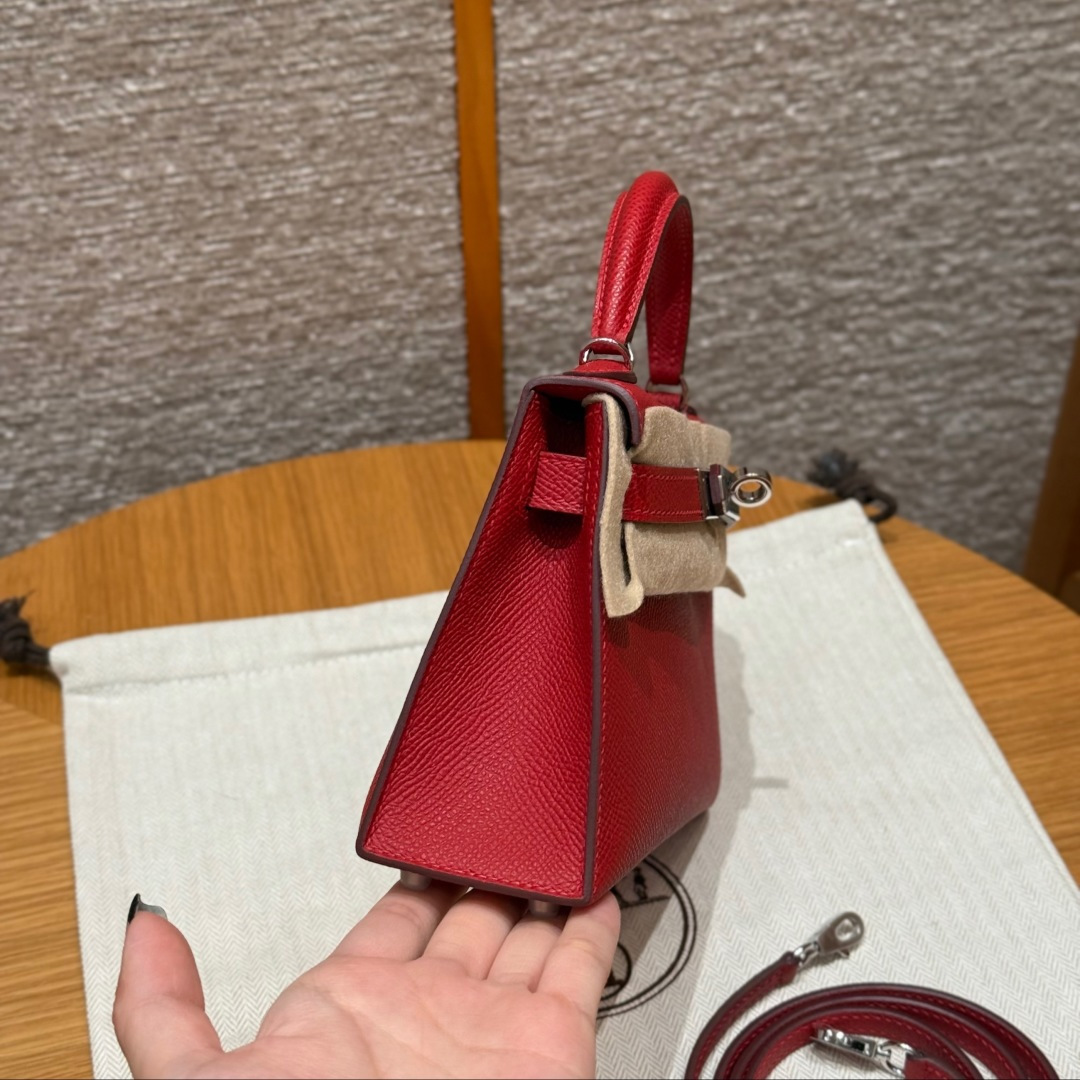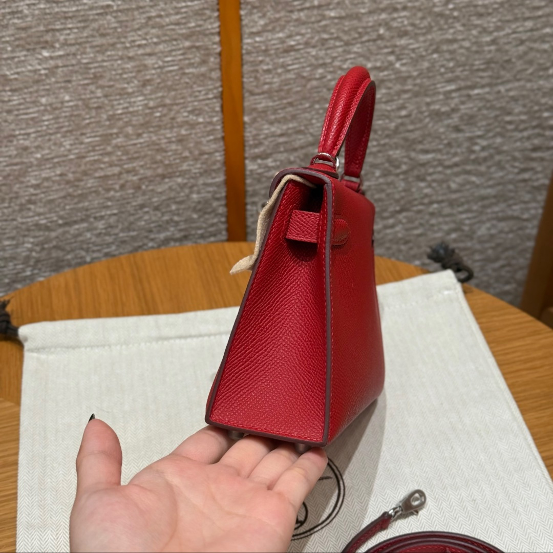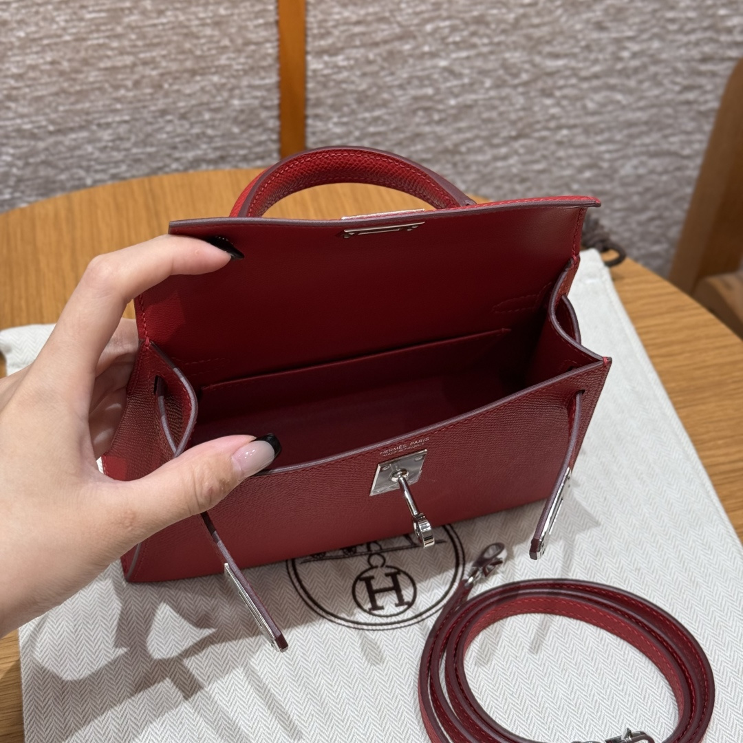 Mini Kelly II, chili red, imported cowhide from France, silver clasp, high-end fully handcrafted exclusive custom.