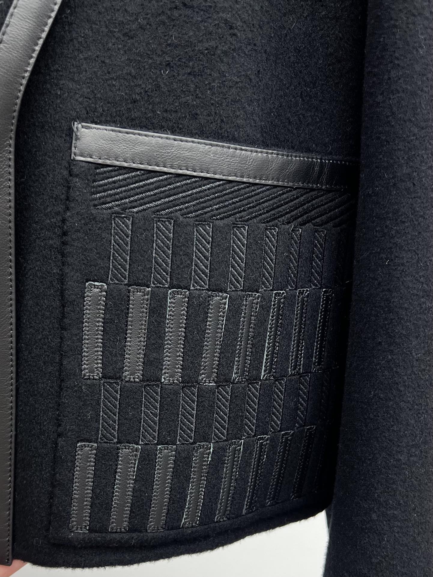 Lamb leather pocket embroidery inspired by "coaching deja vu"