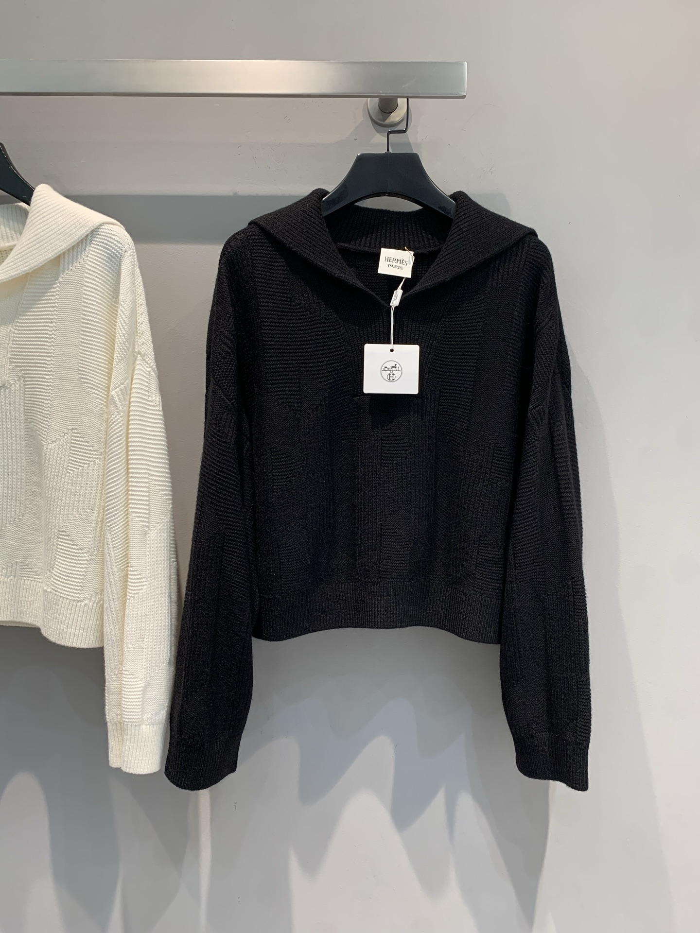 New release 🔥 Shipping out now 📢 Bulk goods real shot Herme* 2025 autumn-winter new fashionable versatile navy collar wool knitwear. Wool material is soft and skin-friendly, super comfortable to wear in autumn and winter! Lazy style design + large lapel hood, casual and slimming, easy to handle for commuting and daily wear. Looks great with jeans or skirts, full of Korean-French style~ The knit texture is delicate, the quality is high-end, a must-have practical item for your autumn-winter wardrobe! Sizes SML