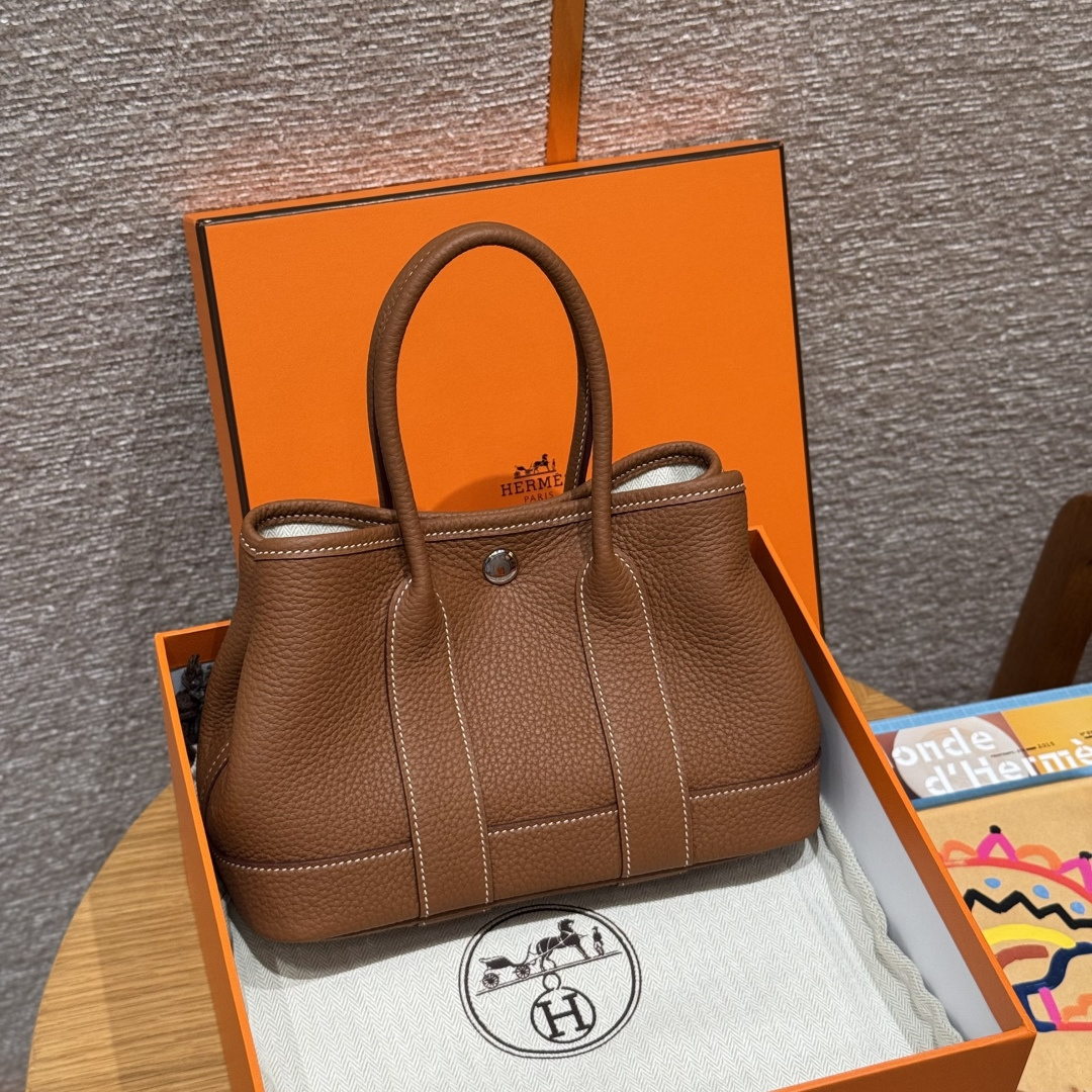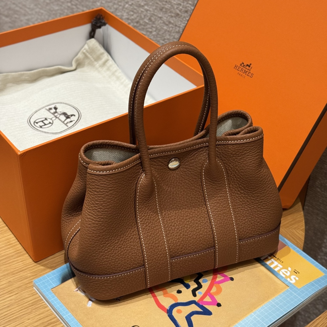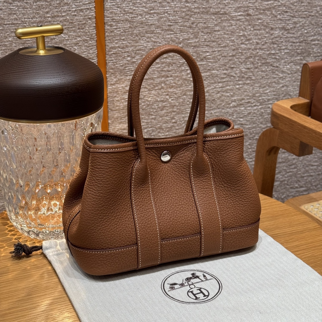 Garden bag 23cm, golden brown, ntogo, original French imported cowhide, silver clasp, fully hand-stitched high-end custom work.