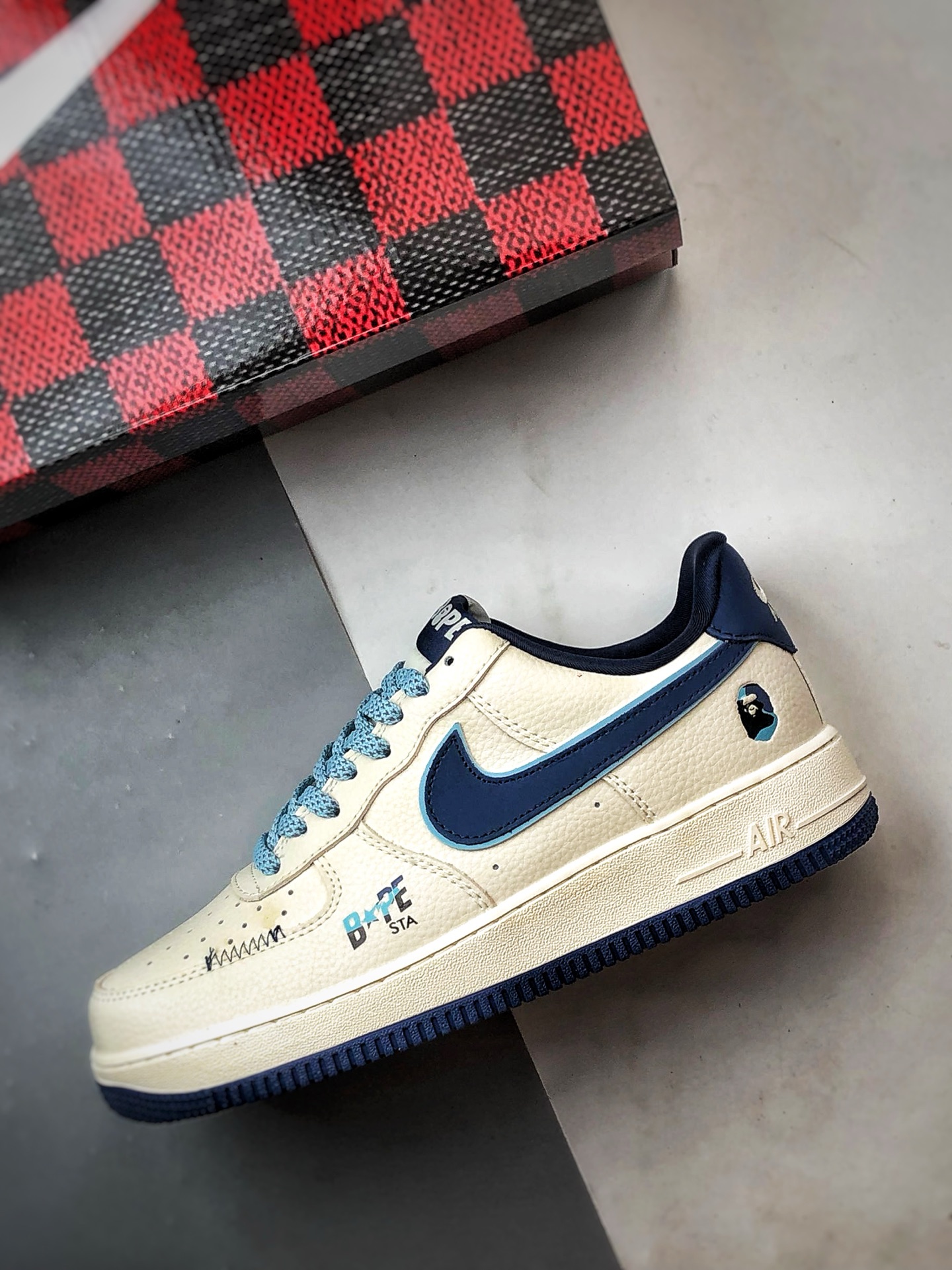 Bape x Air Force 1 Low Beige Blue