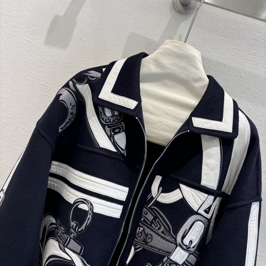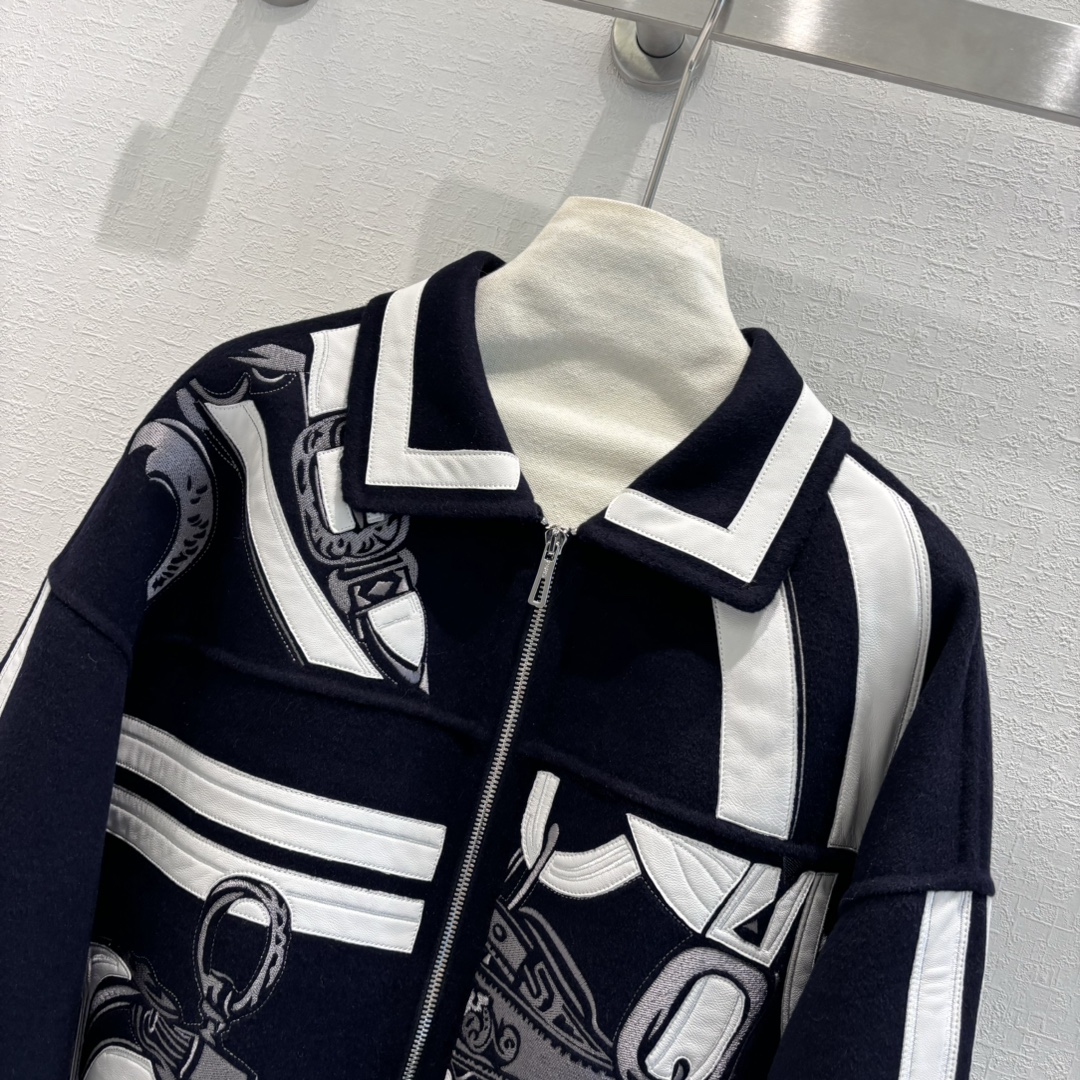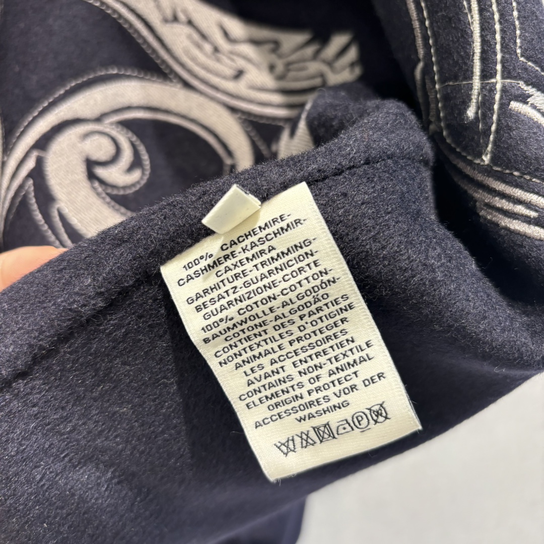 Navy Blue | H Autumn and Winter New Product Pure Handmade Heavy Craft Double-sided Cashmere Jacket! A must-have coat for the fair, rich, and beautiful! Original version purchased, replicated with mold-opening embroidery craftsmanship, custom original calfskin embroidery and leather patchwork for an unbeatable texture 😍 Elegant dropped shoulder sleeve design,帅气优雅气质温柔! (handsome, elegant, gentle temperament!) Original imported hardware accessories, imported cashmere fabric with a crisp and stylish texture, a figure-flattering and versatile silhouette that is both slimming and elongating! Perfect workmanship and quality are evident in the details!
