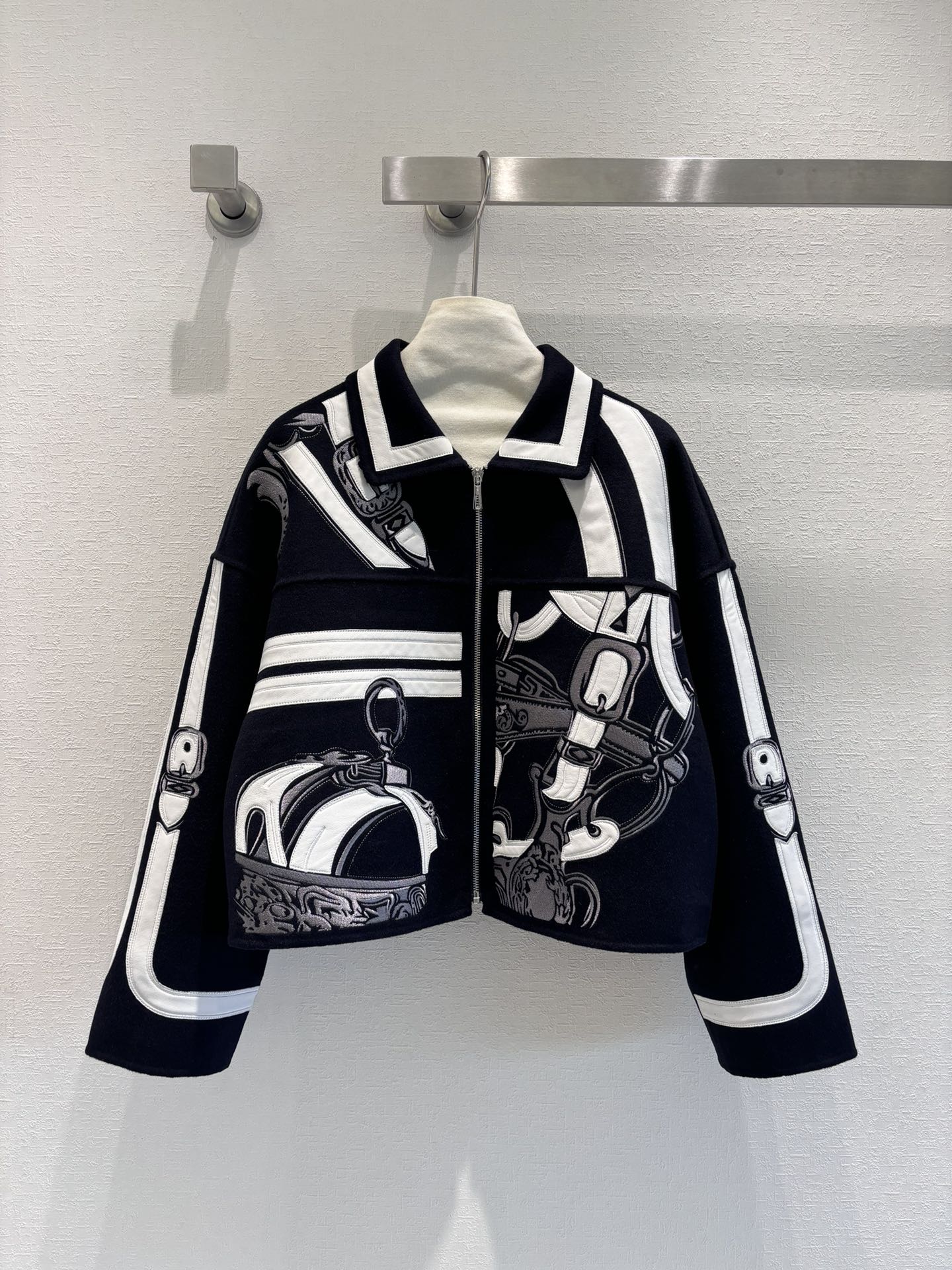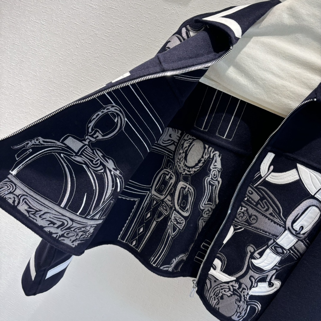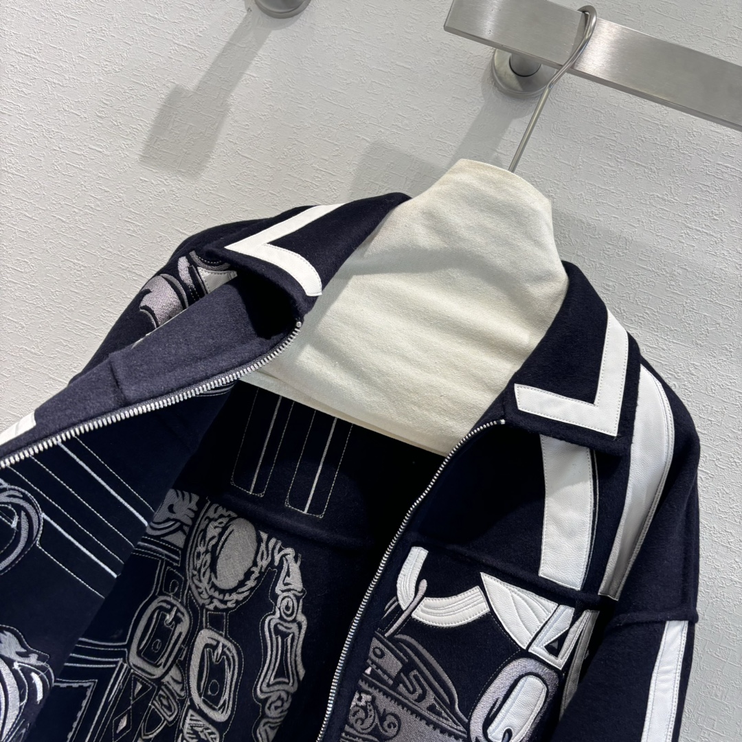 Navy Blue | H Autumn and Winter New Product Pure Handmade Heavy Craft Double-sided Cashmere Jacket! A must-have coat for the fair, rich, and beautiful! Original version purchased, replicated with mold-opening embroidery craftsmanship, custom original calfskin embroidery and leather patchwork for an unbeatable texture 😍 Elegant dropped shoulder sleeve design,帅气优雅气质温柔! (handsome, elegant, gentle temperament!) Original imported hardware accessories, imported cashmere fabric with a crisp and stylish texture, a figure-flattering and versatile silhouette that is both slimming and elongating! Perfect workmanship and quality are evident in the details!